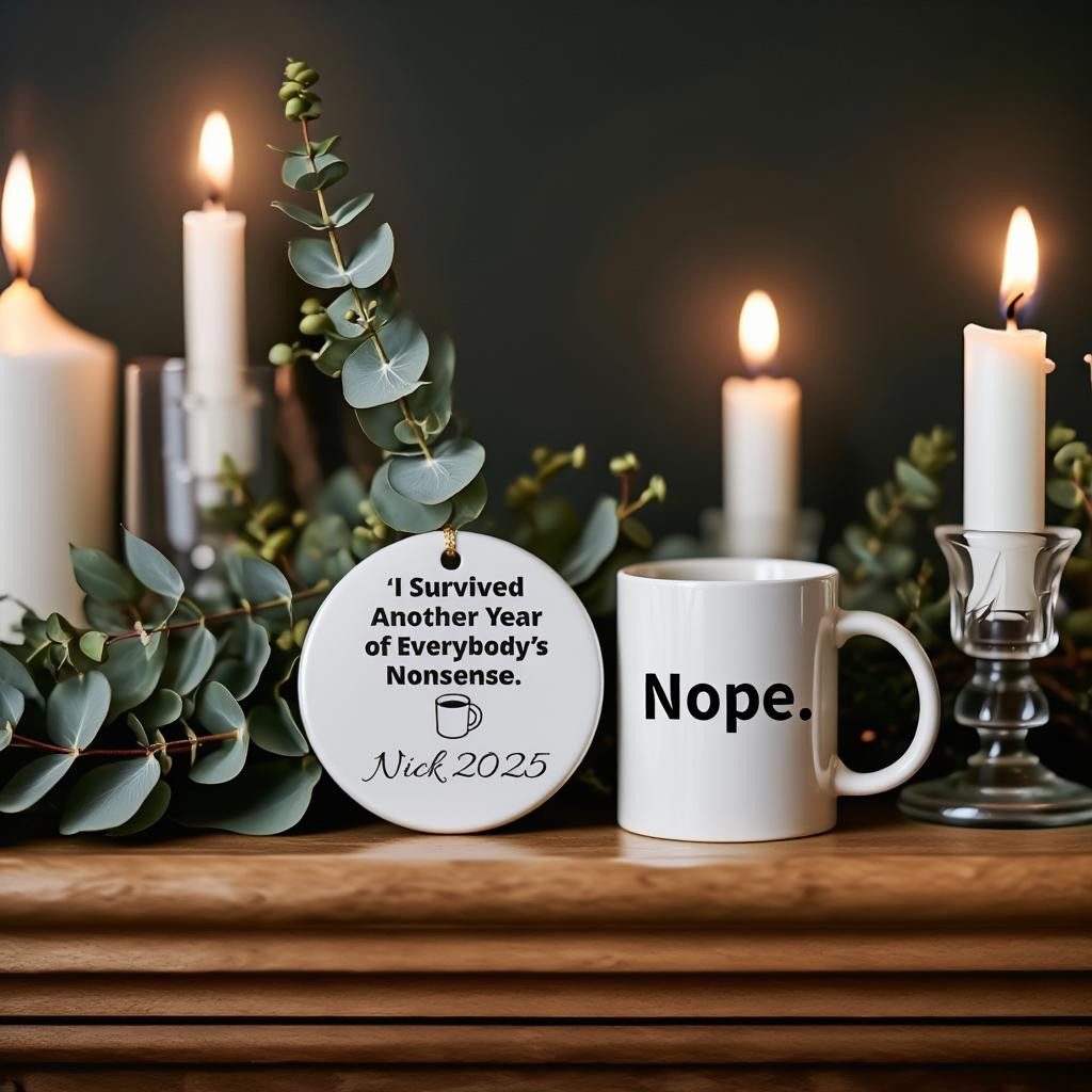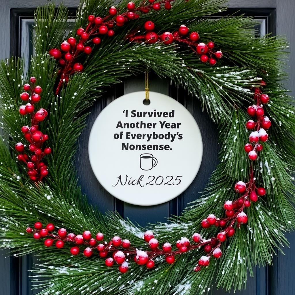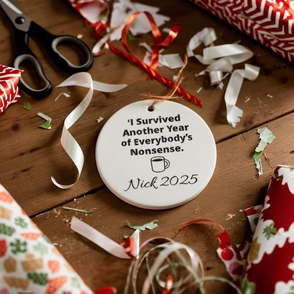 I Survived Another Year of Everybody's Nonsense Ornament | Ceramic Round Holiday Decoration