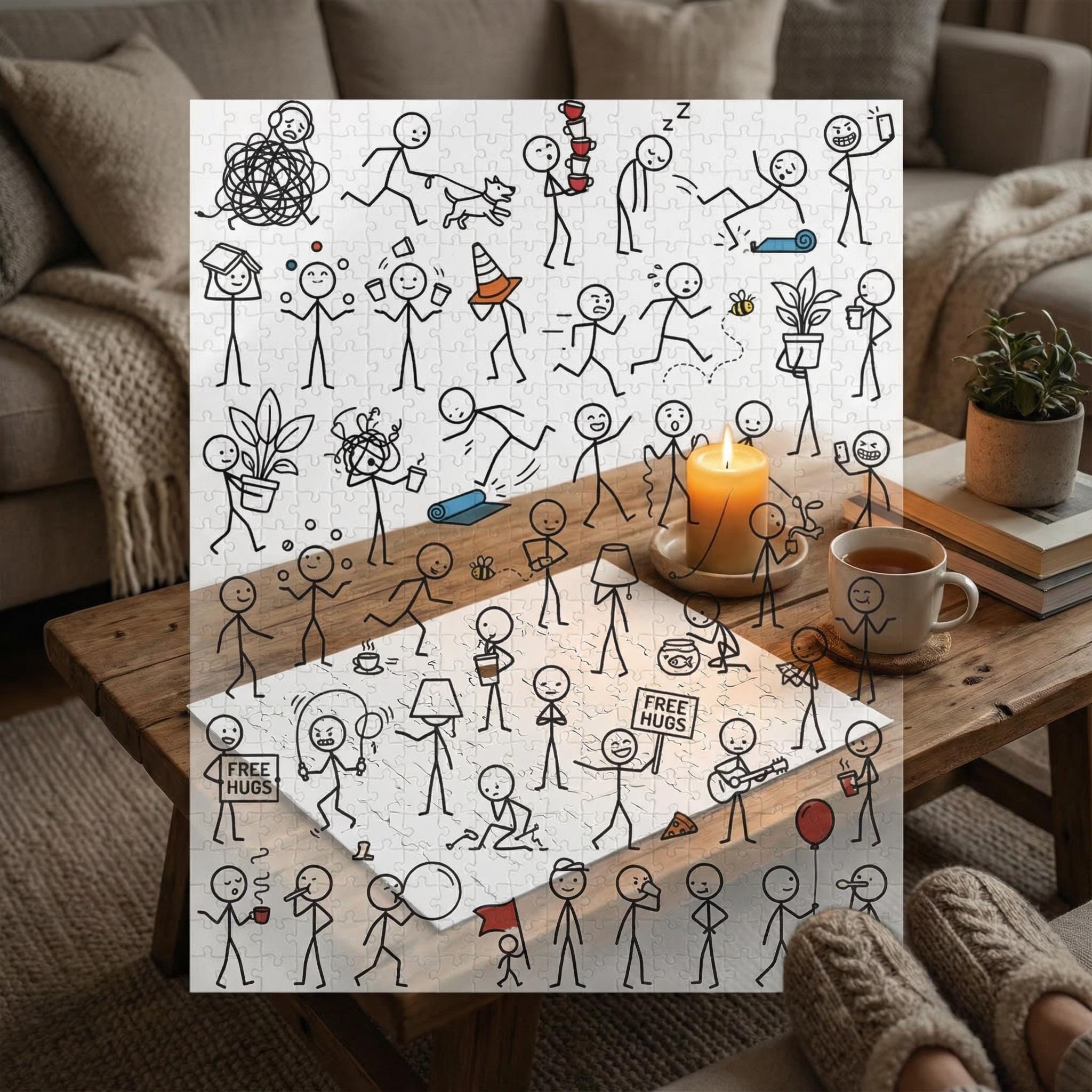 This puzzle artwork was created using a blend of my humor, hand-drawn concepts, and AI illustration tools to achieve a crisp, detailed, hilarious final design.