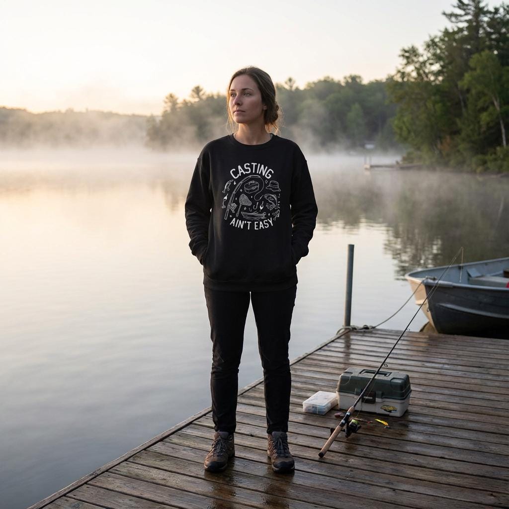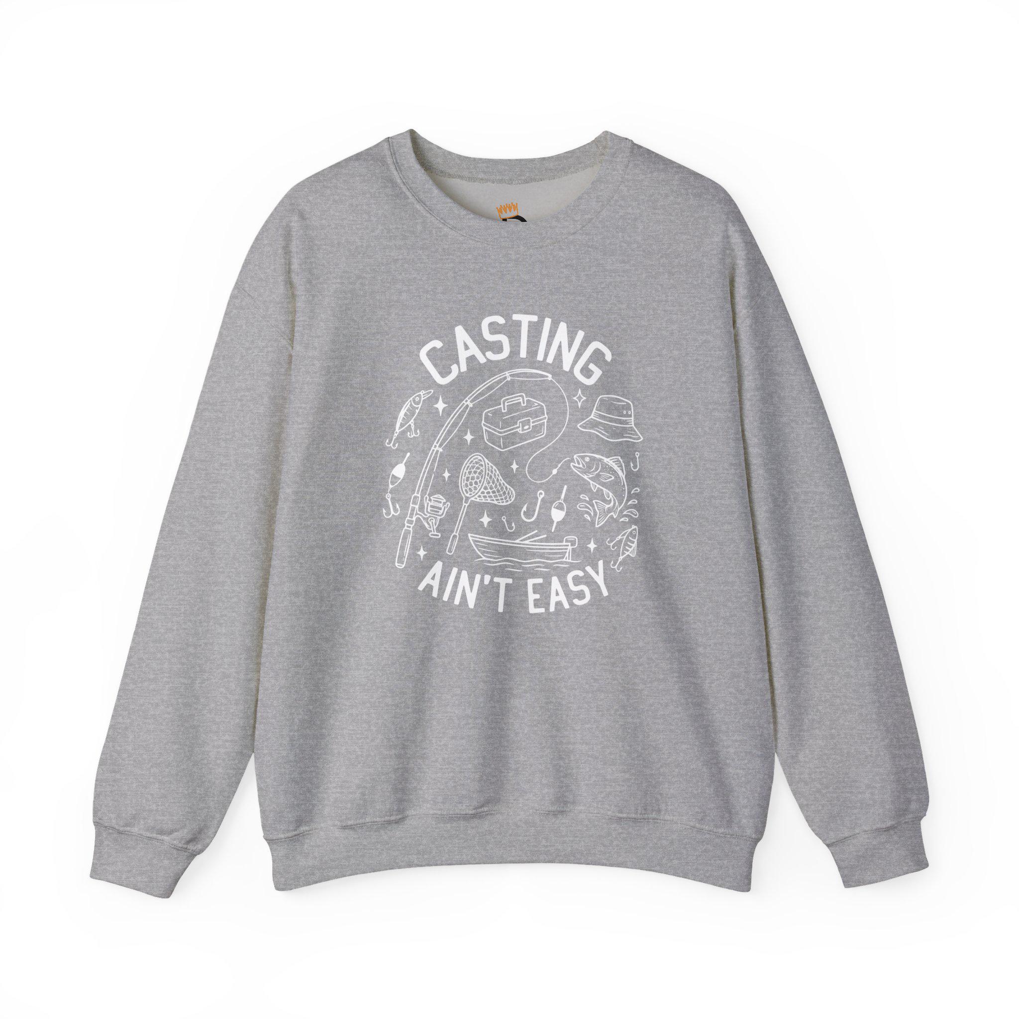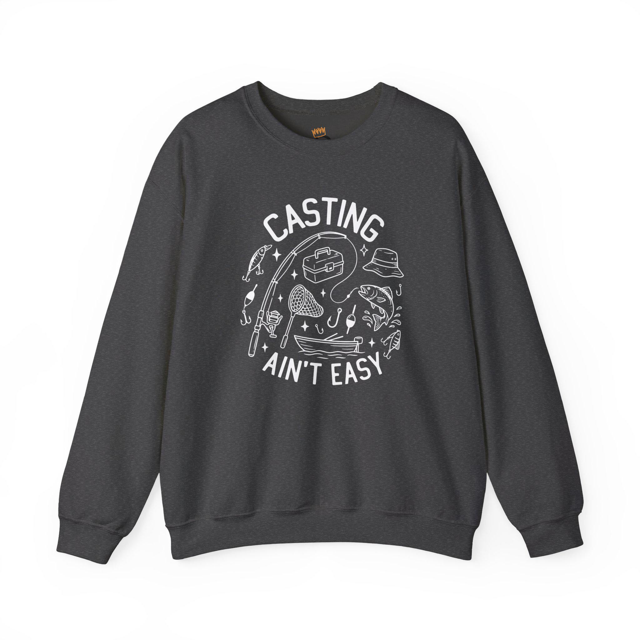Casting Ain’t Easy Sweatshirt – Funny Fishing Crewneck, Angler Humor Pullover, Outdoorsy Gift for Fishermen