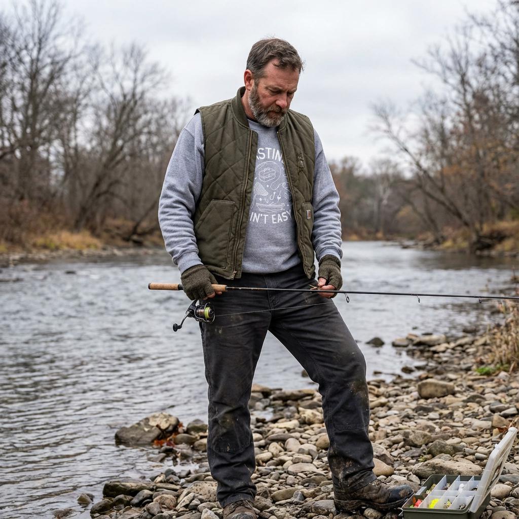 The “Casting Ain’t Easy” sweatshirt is made for anglers who know the frustration, patience, and quiet skill that fishing actually takes. Featuring a detailed hand-drawn fishing graphic, this crewneck delivers understated humor without yelling about it.