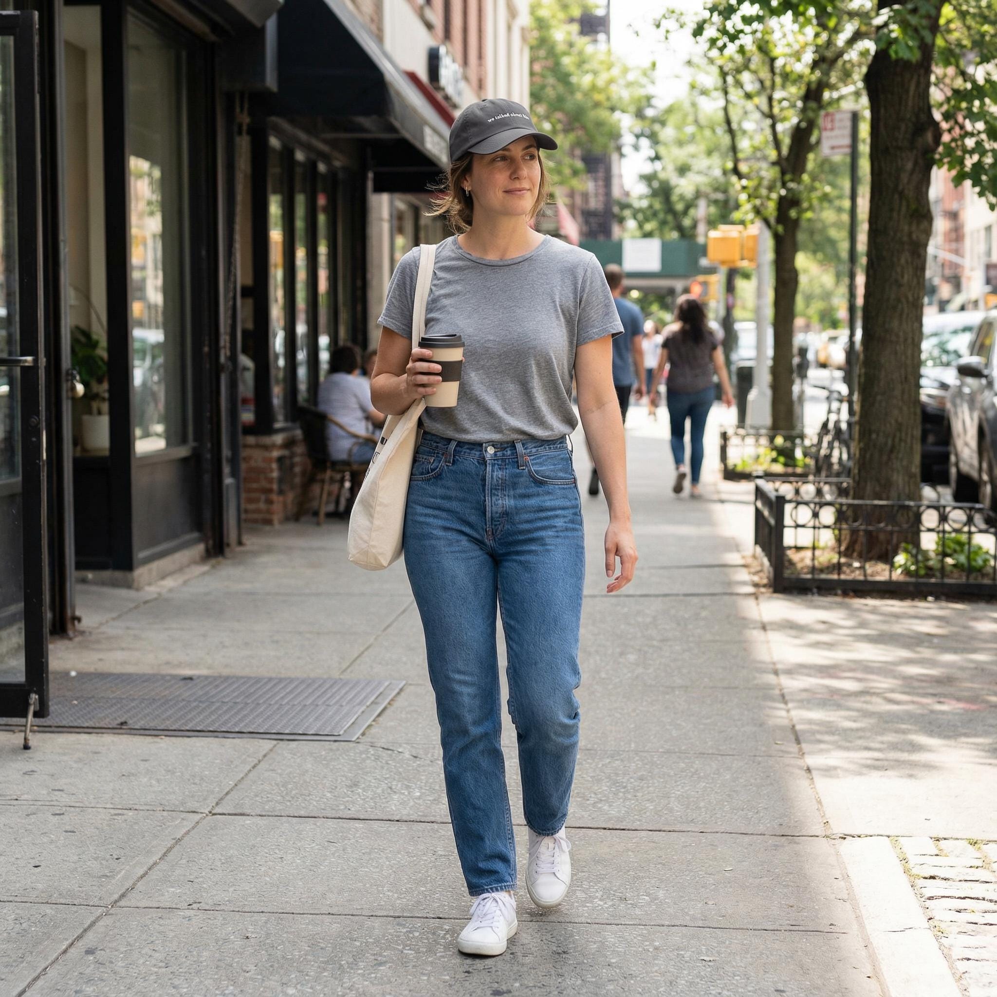 Looks good with jeans, tees, sweatshirts, messy buns, and days when you’ve already said enough.