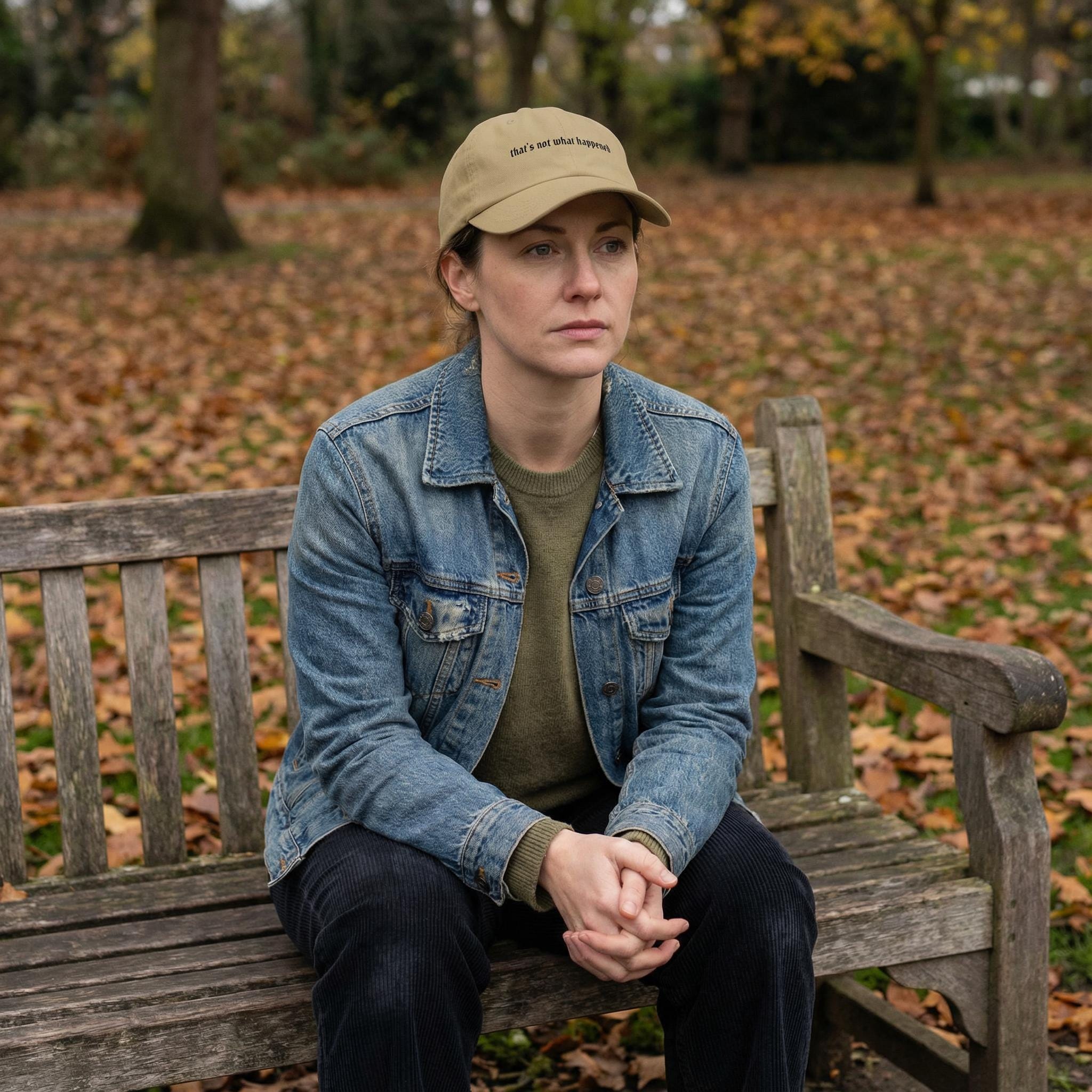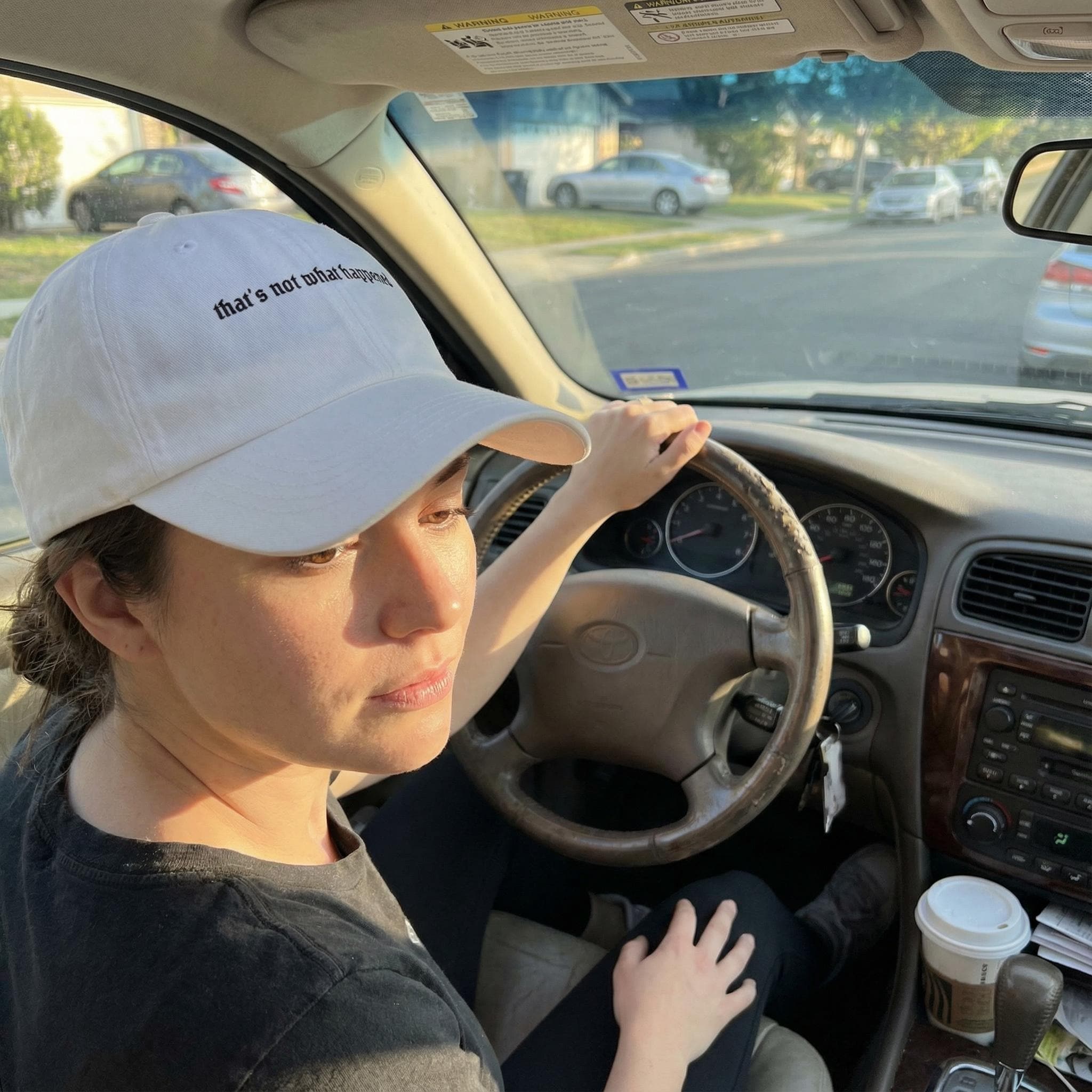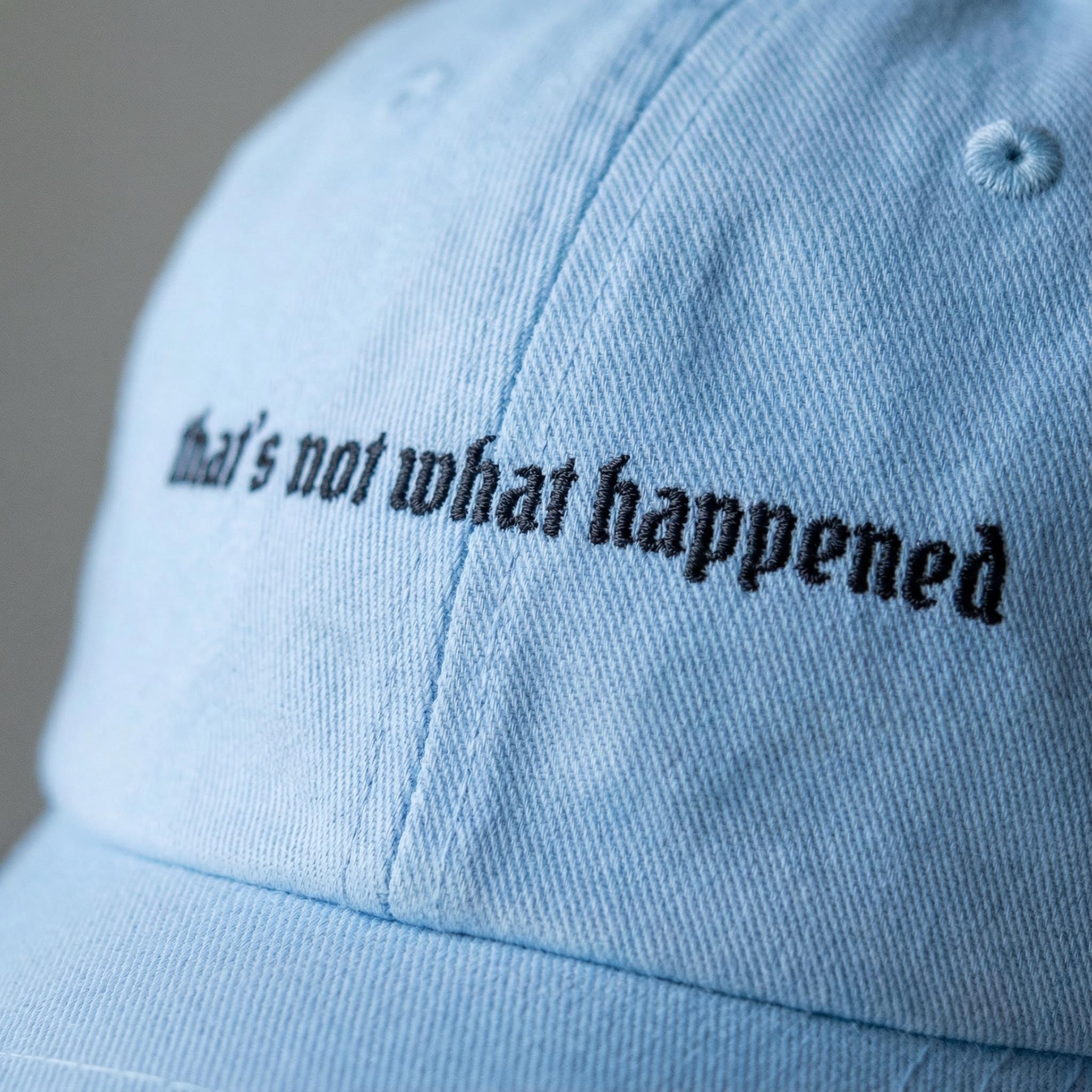 Dry humor hat, minimalist embroidered dad cap "that’s not what happened"