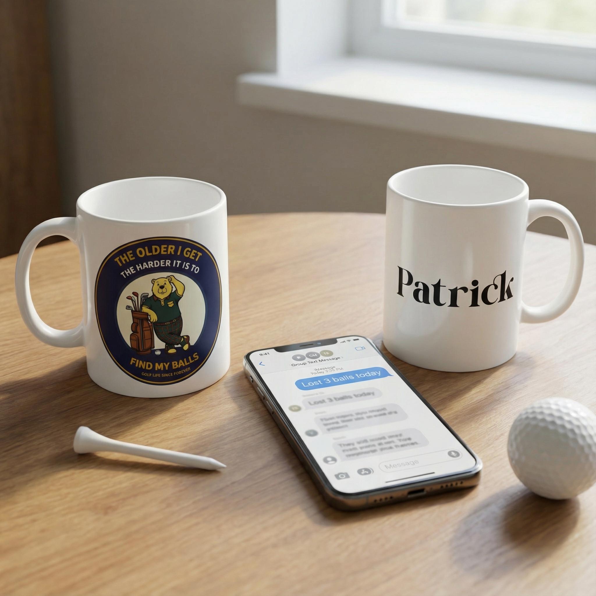 This personalized golf mug is made for golfers who know the struggle — losing balls, losing patience, and still coming back for another round. Featuring a humorous golf design and custom name personalization, it’s the perfect everyday mug for mornings, office desks, or post-round recovery.