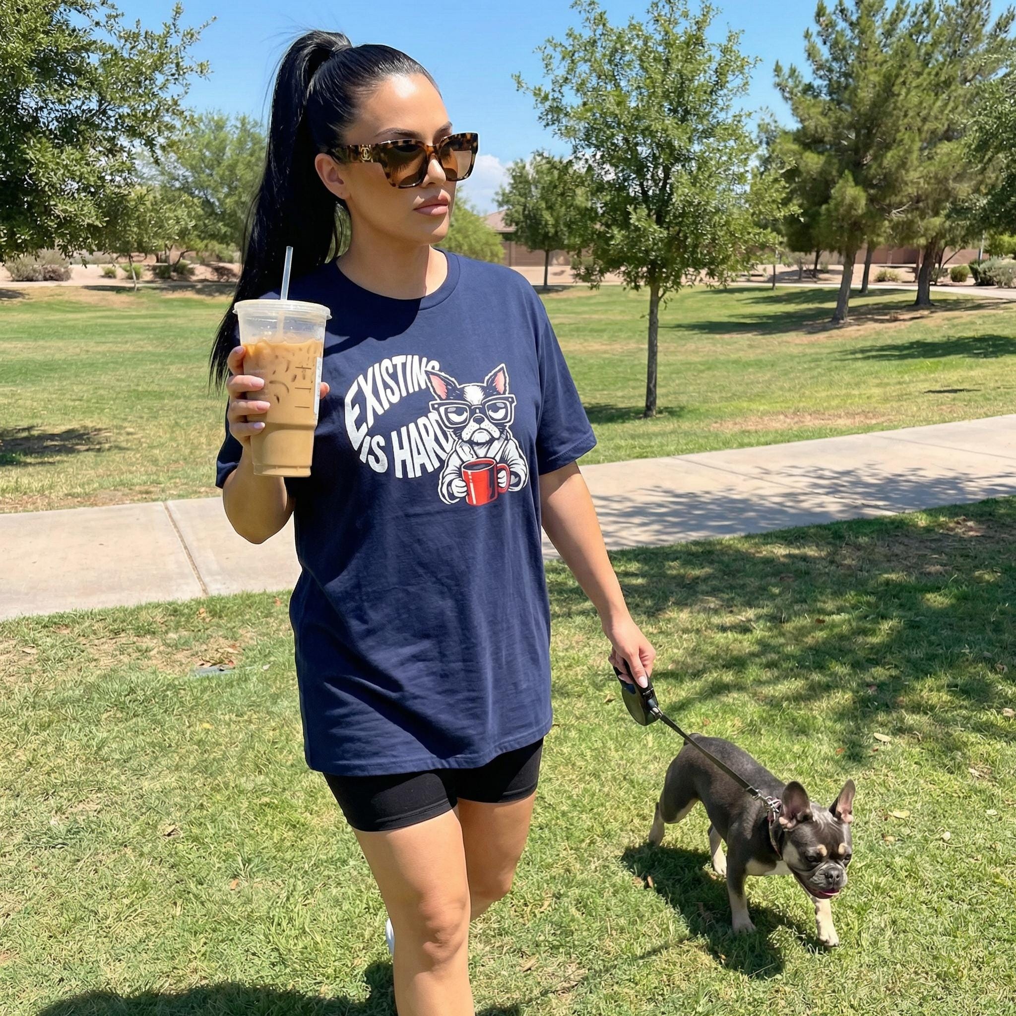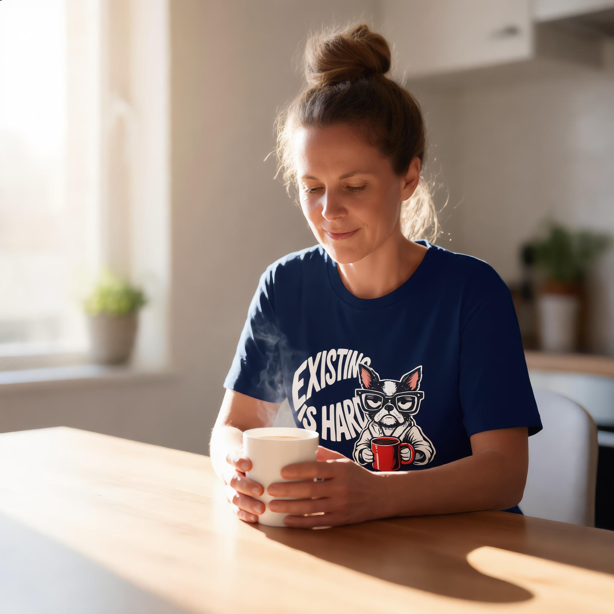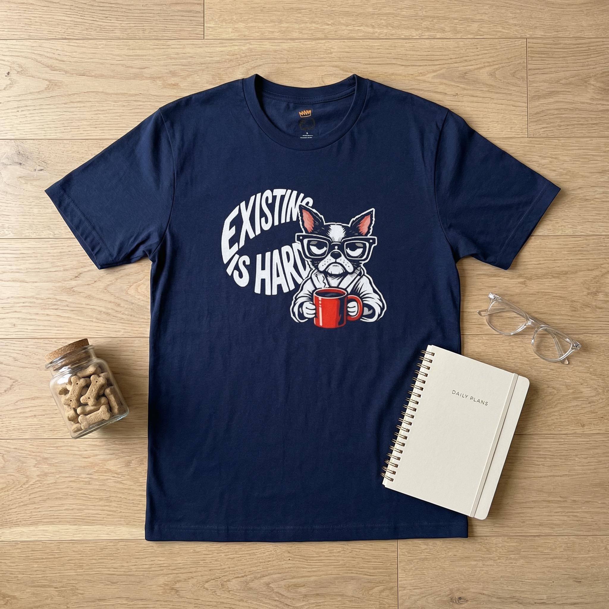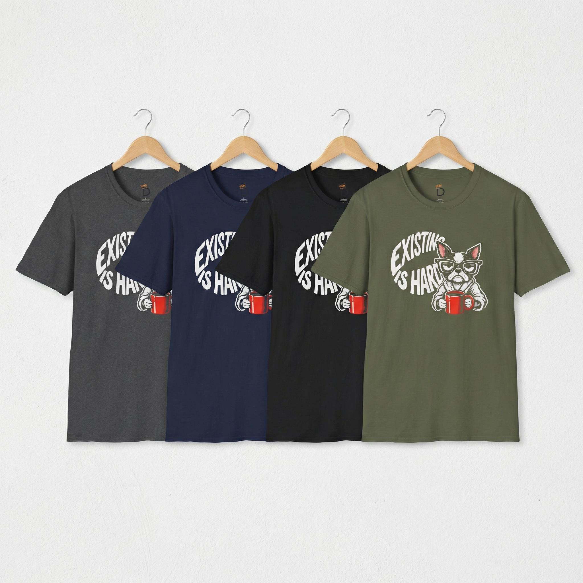 Finally, a shirt that understands your morning energy. Our "Existing Is Hard" tee features a relatable, coffee-clutching pup who is just as over it as you are. Whether you're a dog lover, a caffeine addict, or just someone navigating the daily grind with a side of sass, this soft-style graphic tee is your new go-to.