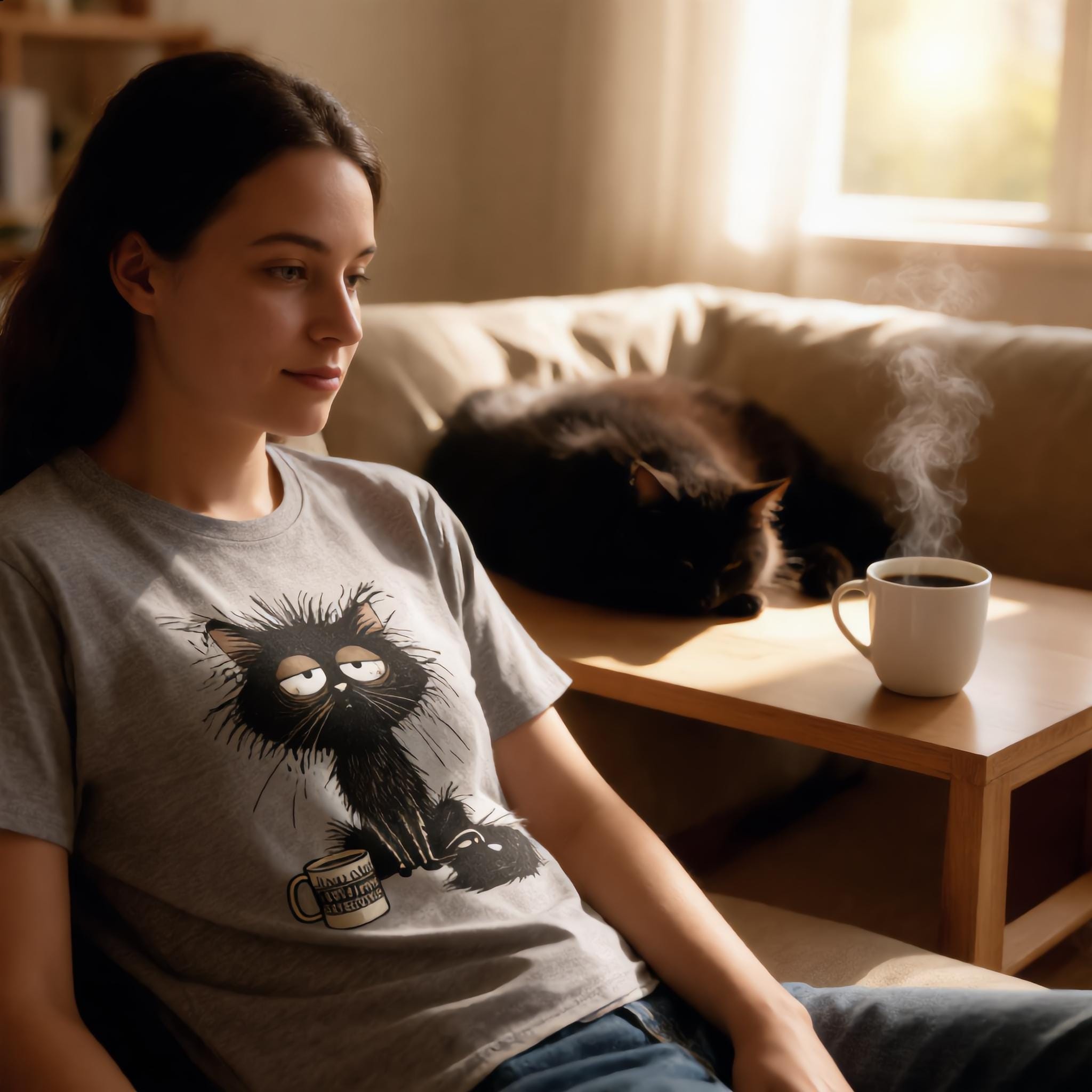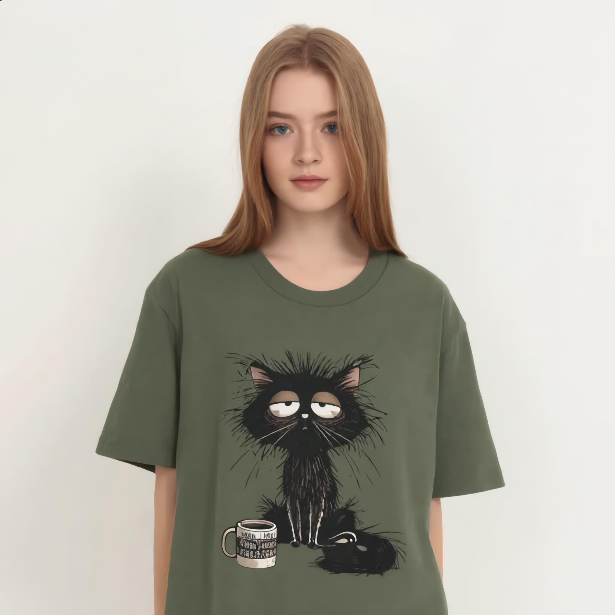 This funny cat graphic tee features an exhausted, over-it cat paired with a coffee mug that says exactly what we’re all thinking. Soft, lightweight, and easy to wear, it’s perfect for cat lovers, coffee addicts, and anyone running on fumes but still showing up.