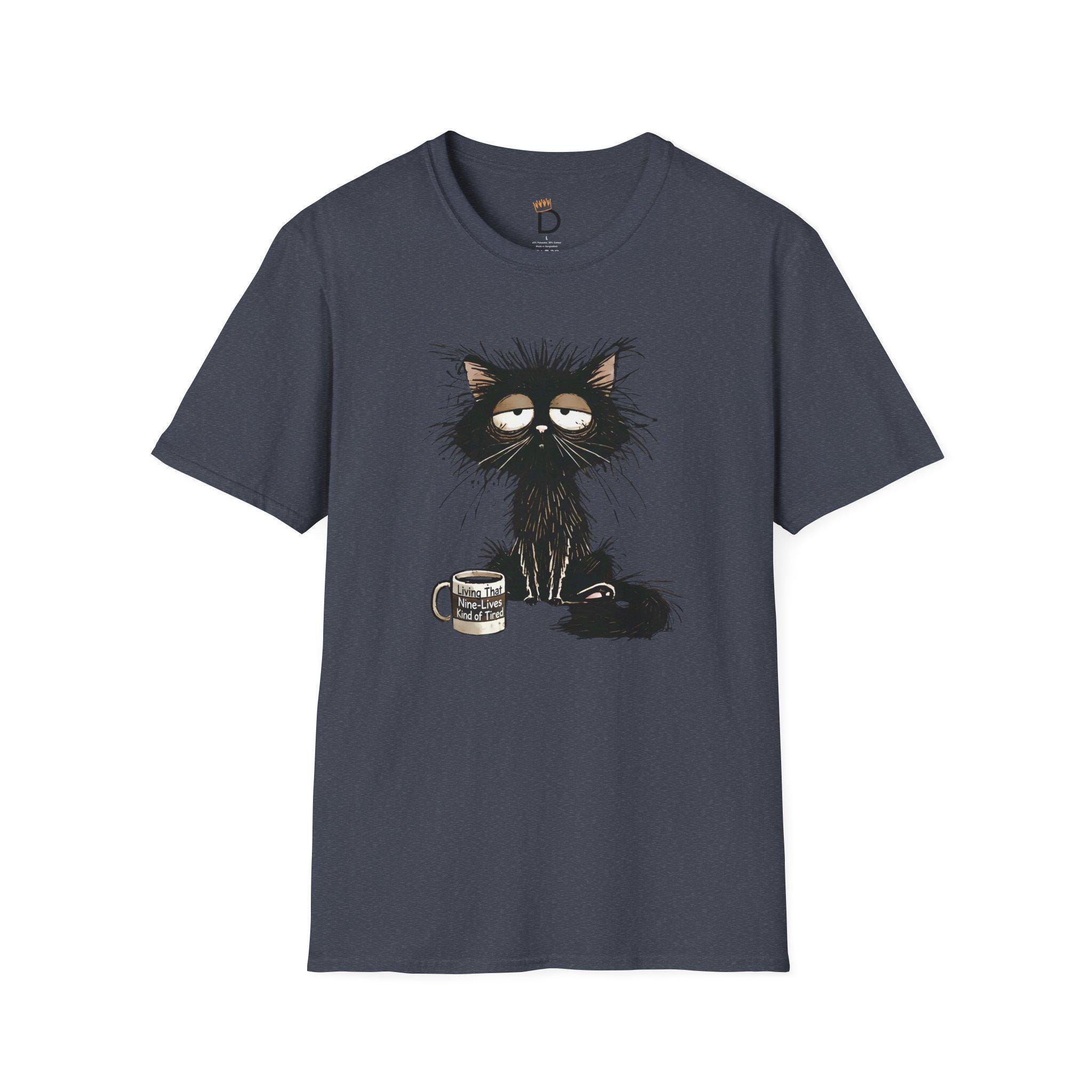 Black cat tee, funny goth nine lives coffee lover t-shirt