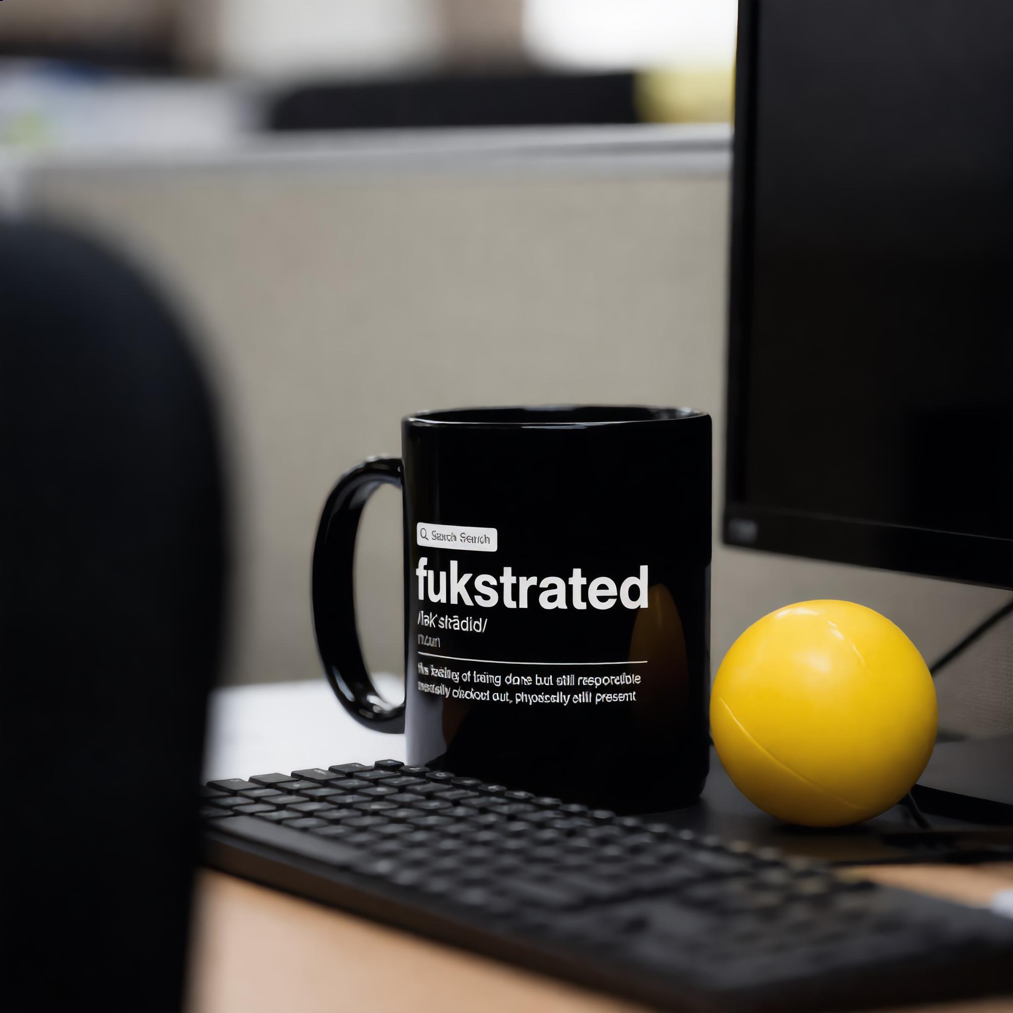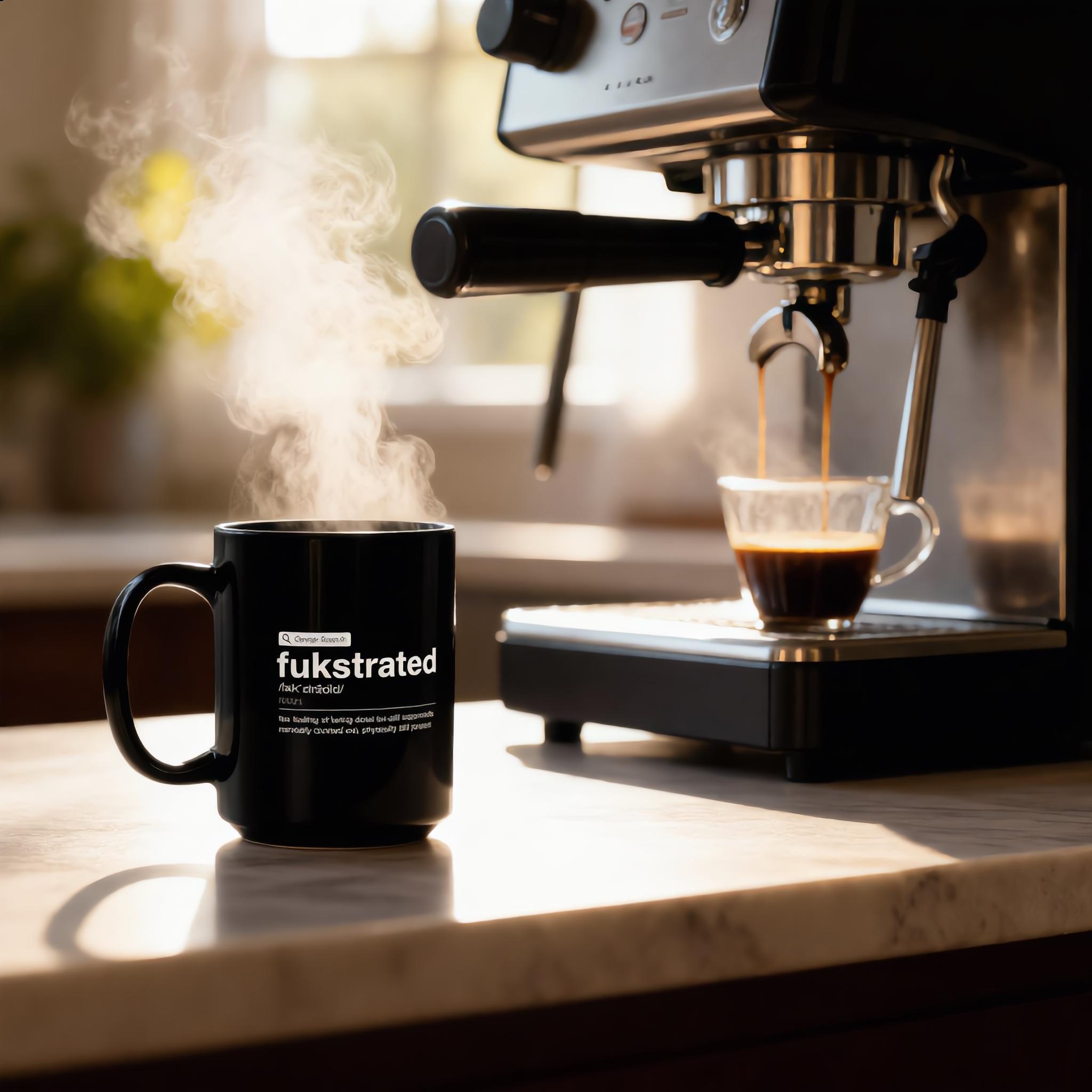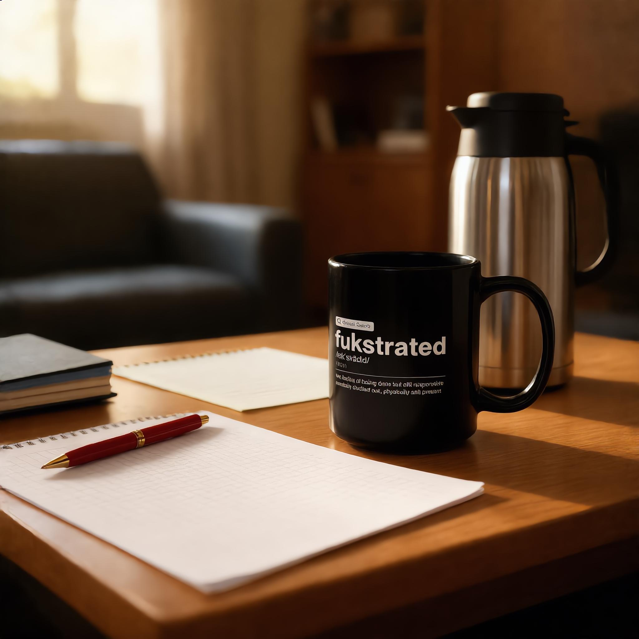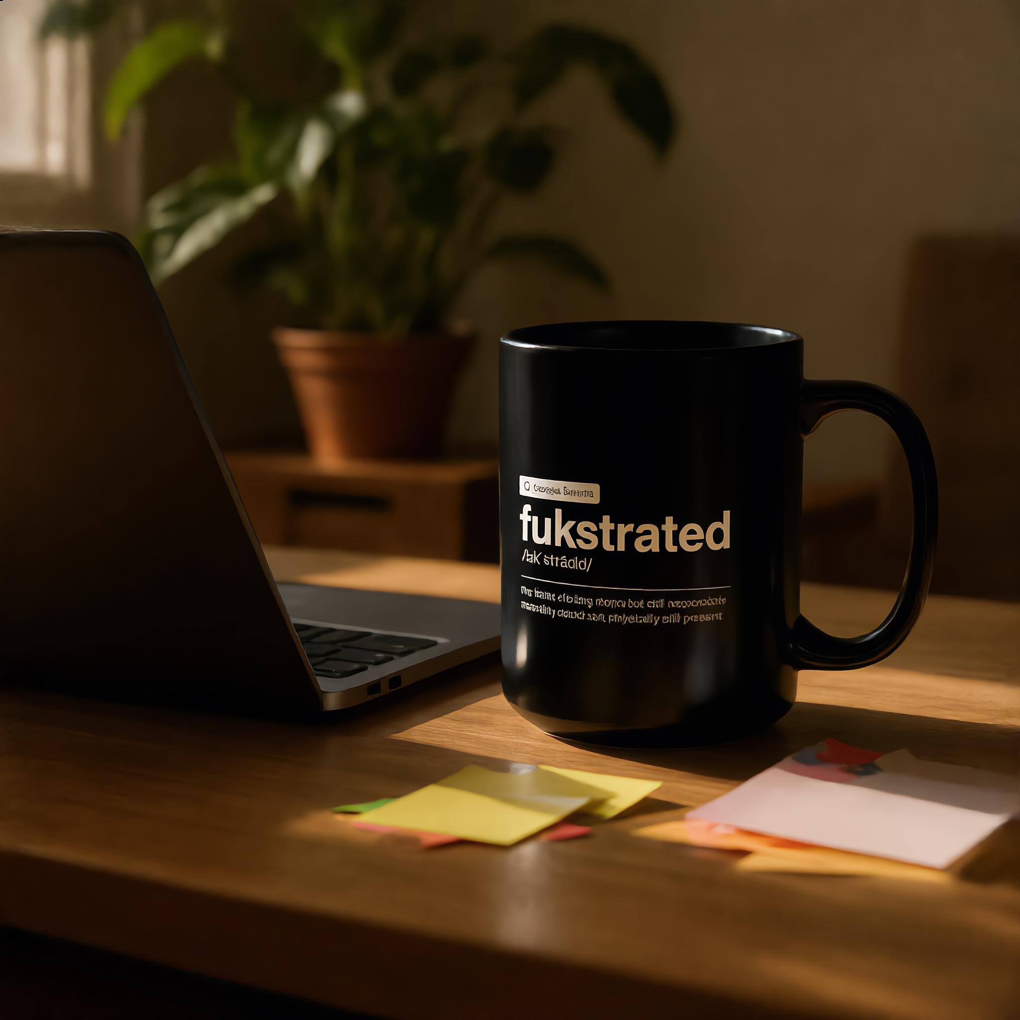 Meet the “Fukstrated” Definition Mug—a minimalist, fake Google-style word design for the mentally clocked out but physically still present. Clean, sarcastic, and painfully relatable, this glossy black ceramic mug turns coffee breaks into quiet protest.