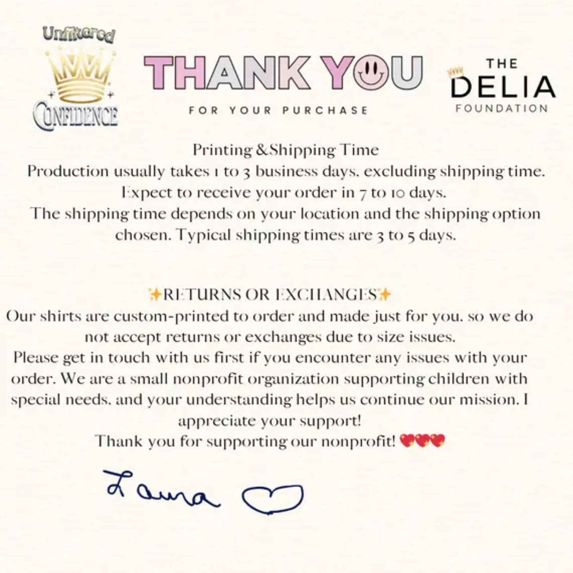 Mission Driven: 100% of net profits support The Delia Foundation, helping children with disabilities and those in crisis.