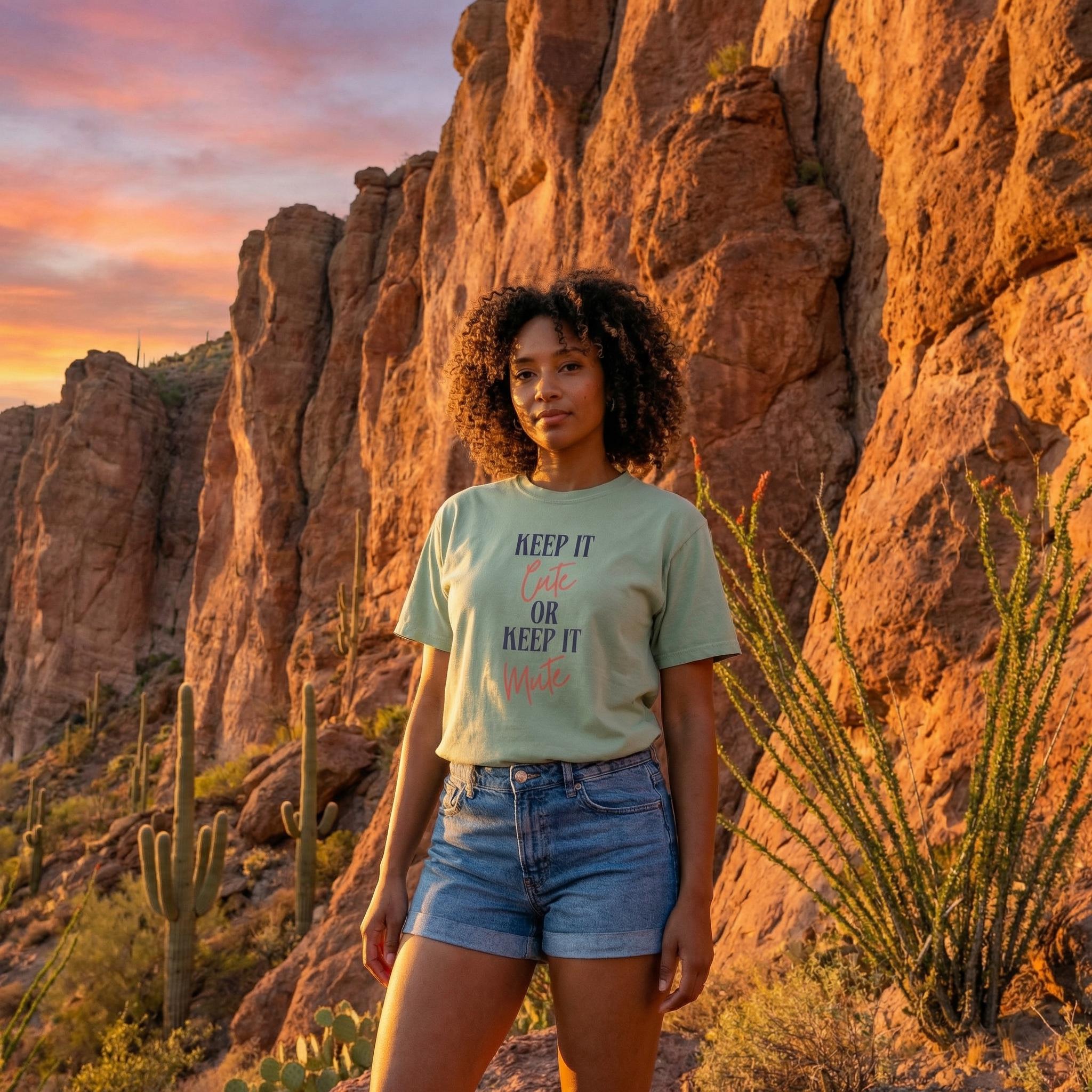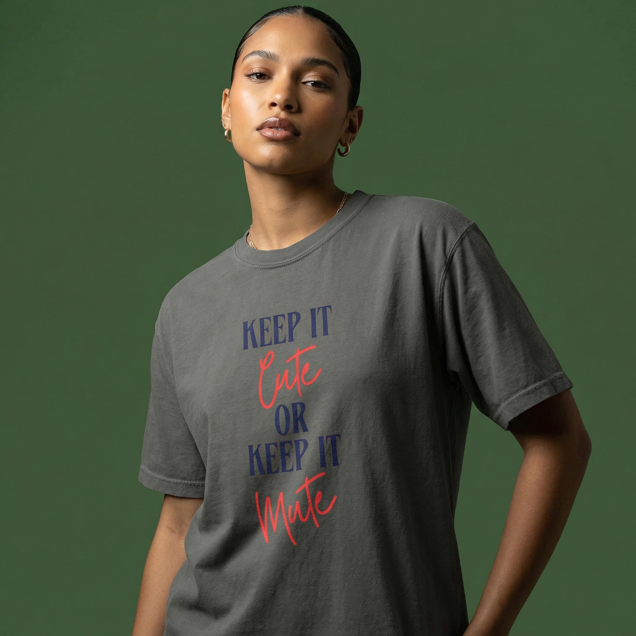Consider this your official boundary-setting uniform. Our "Keep It Cute OR Keep It Mute" tee features bold, high-contrast typography designed for those who value peace as much as they value style. Whether you’re heading to brunch or just keeping the vibes curated, this shirt does the talking so you don't have to.