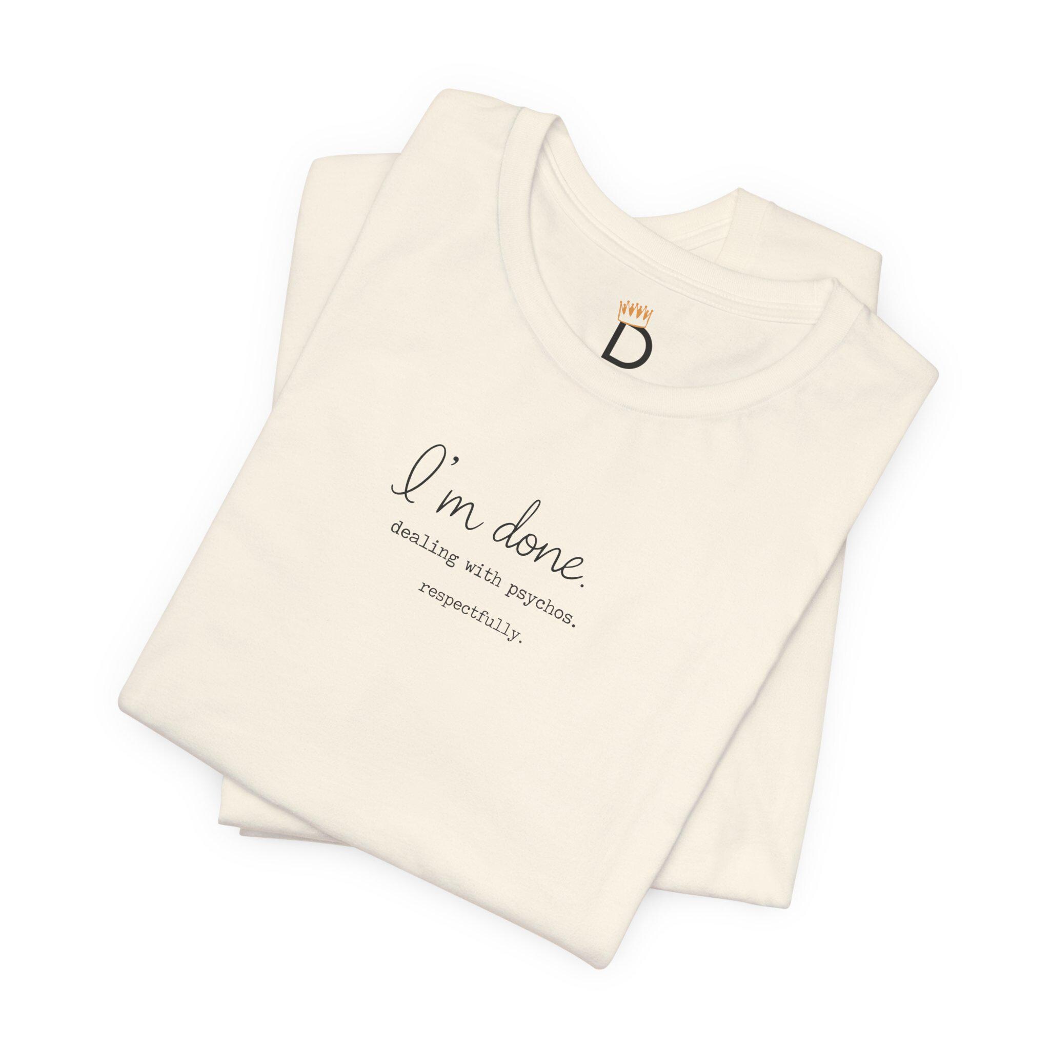I'm Done Dealing with Psychos Respectfully Minimalist Sarcastic Tee