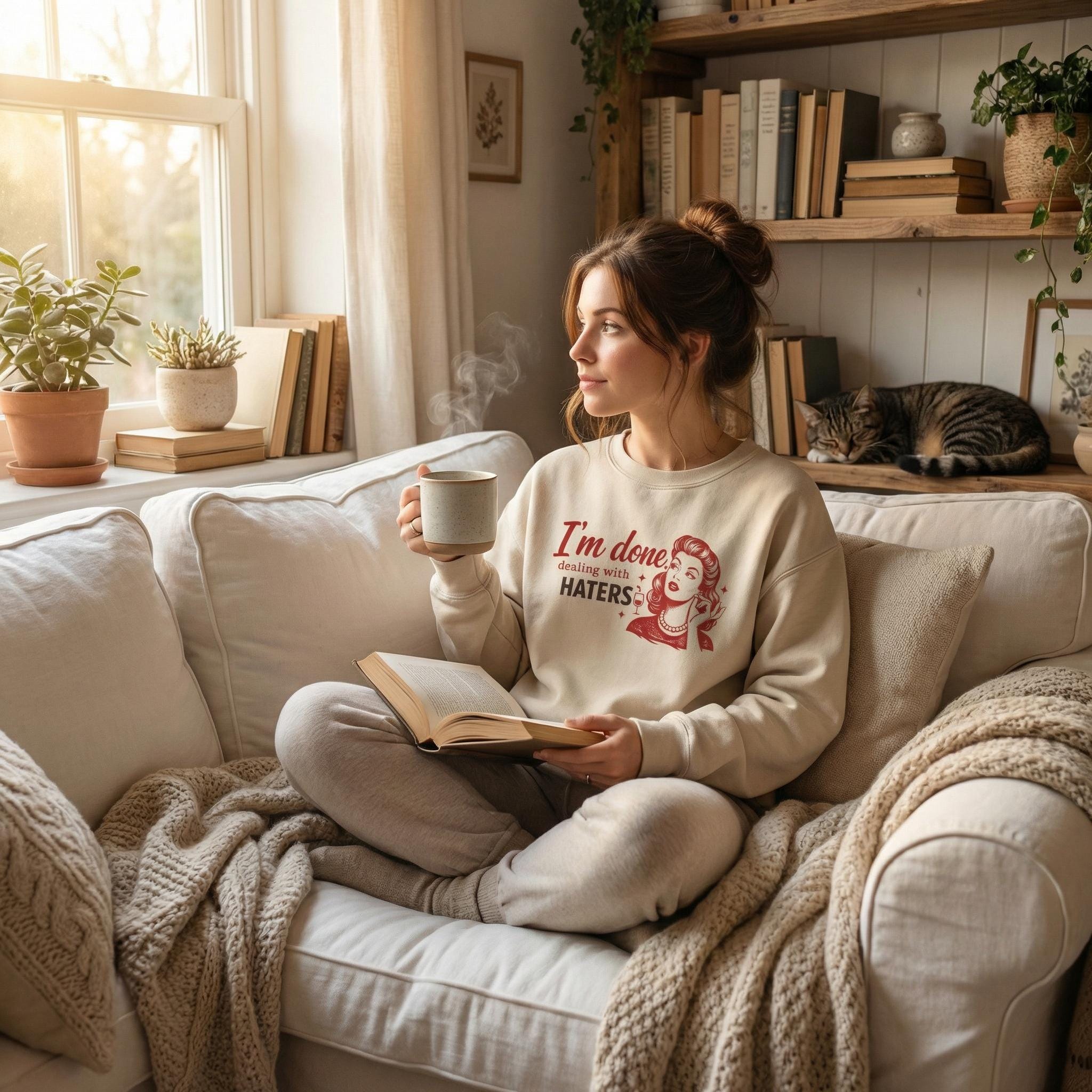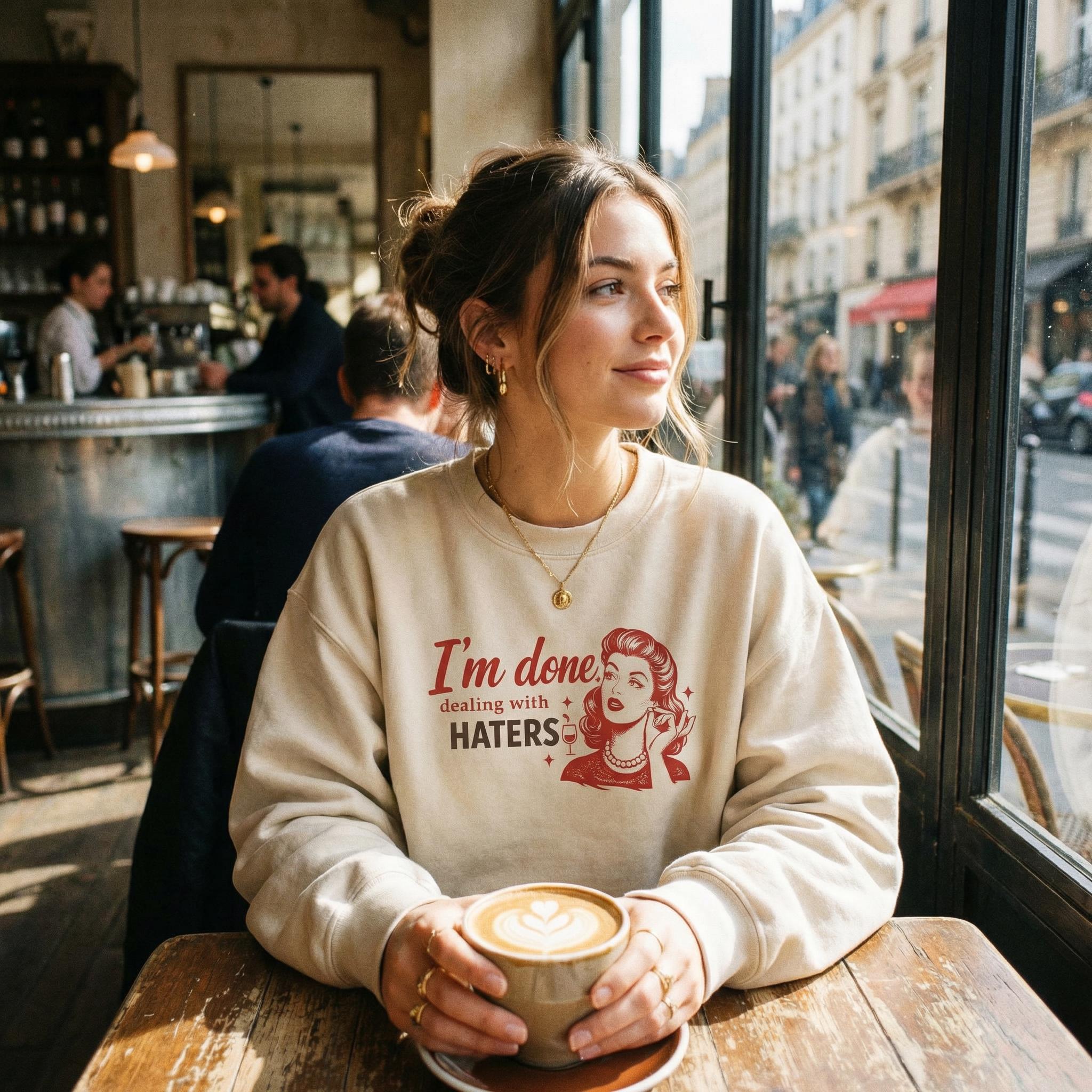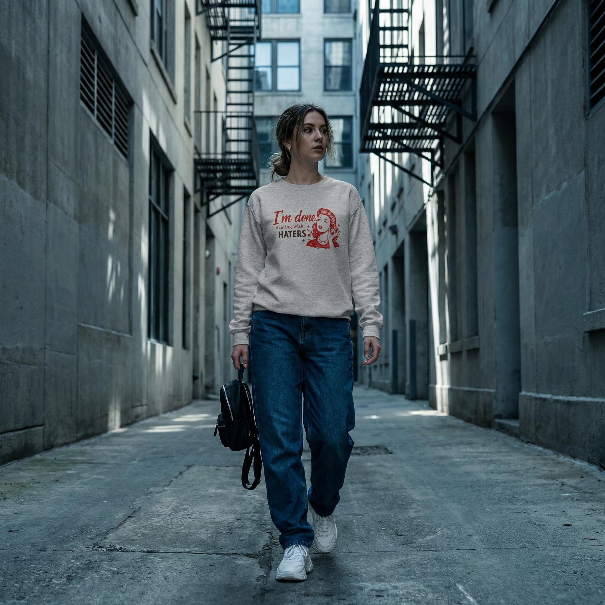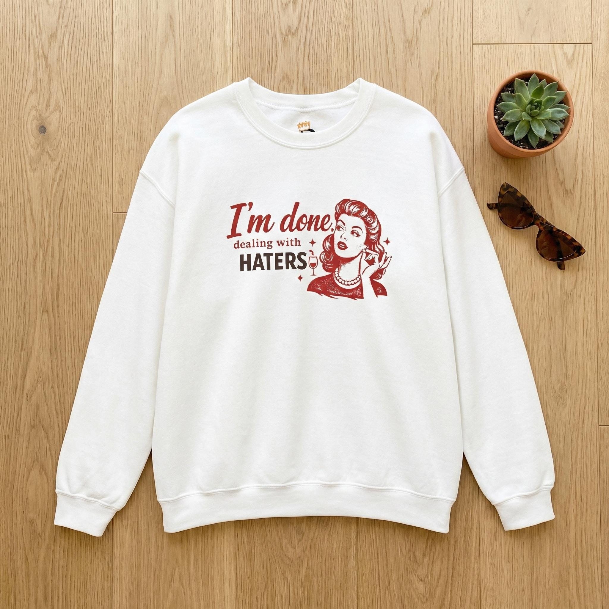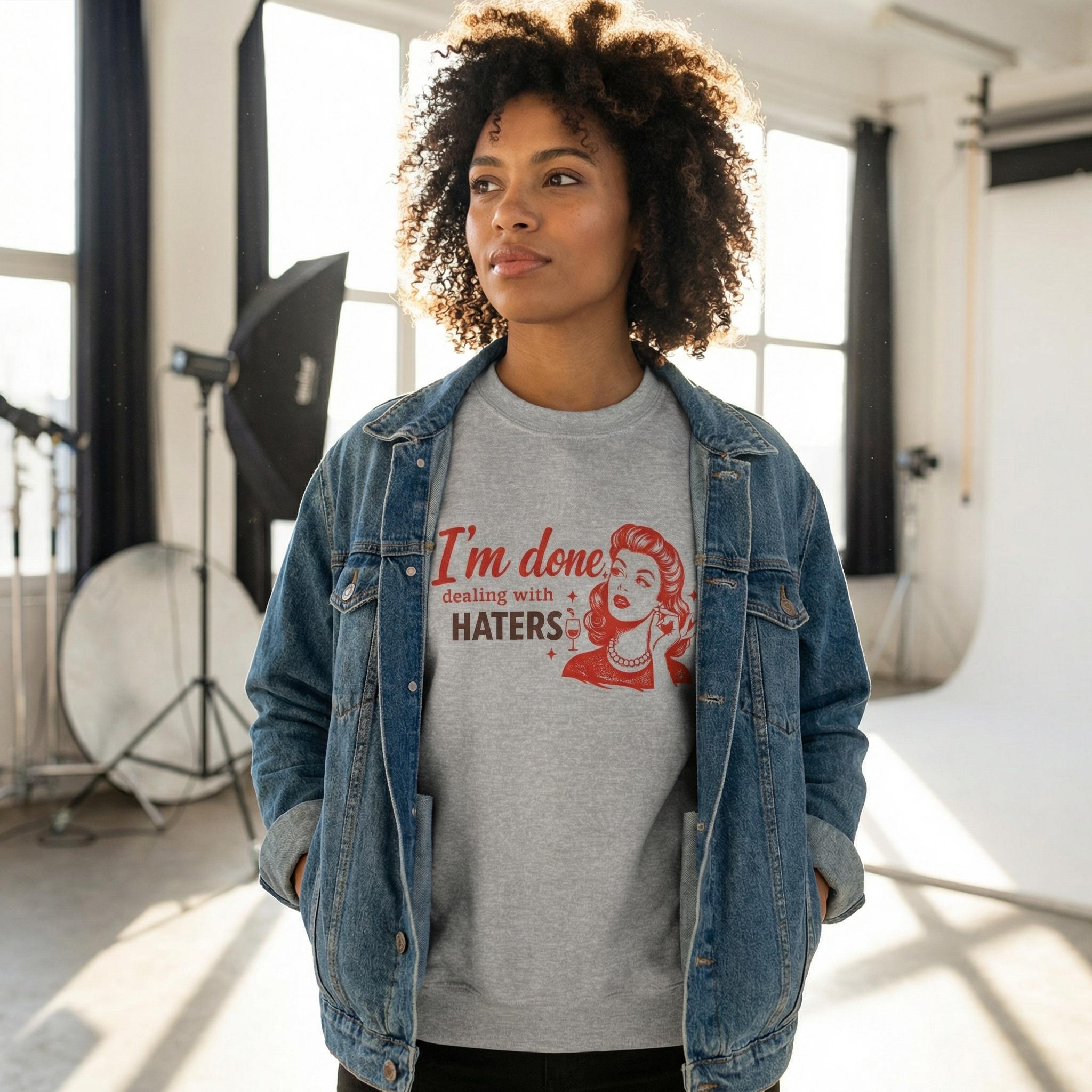 I'm Done Dealing With Haters Sassy Retro Sweatshirt Cozy Oversized Crewneck