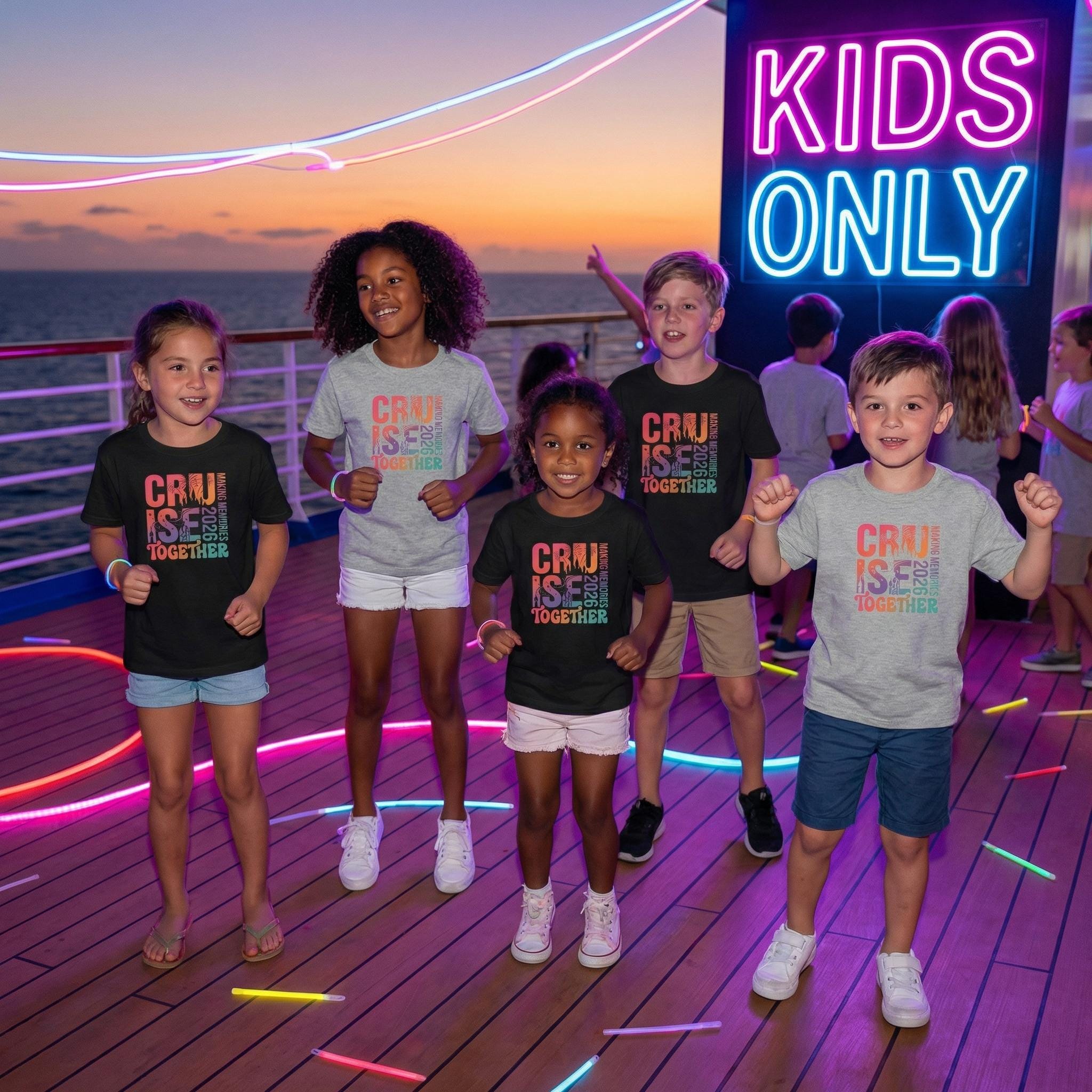 Outfit the youngest members of your travel crew in style. Our "Cruise Squad 2026" youth tee is designed for the kid who’s ready to conquer the splash pad, meet their favorite characters, and make core memories that last a lifetime. With a vibrant magical gradient and a design made for squads, your kids will be easy to spot and hard to beat in the "best-dressed family" category.