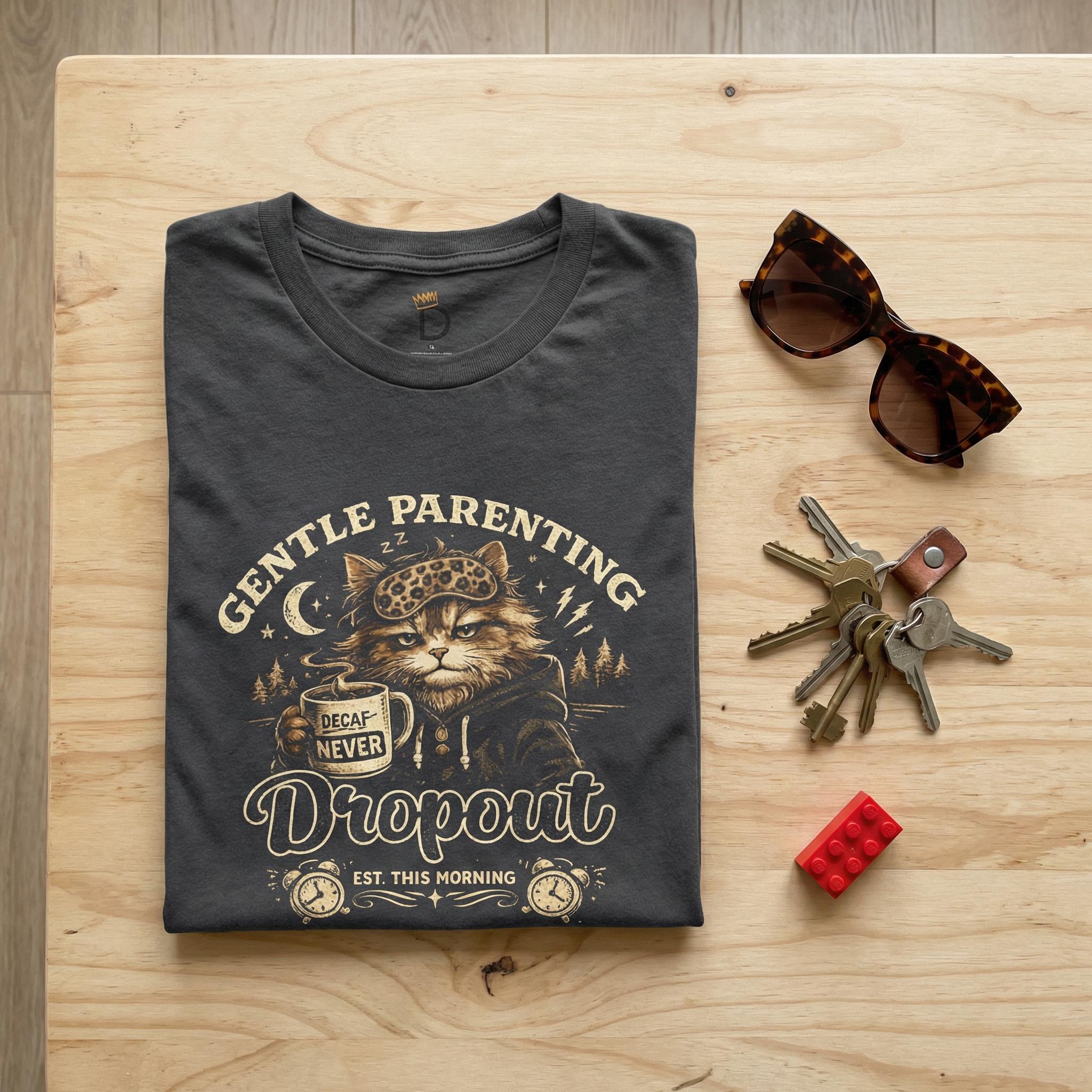 We all started the day with a whisper and a prayer, but by 8:00 AM, the vibe shifted. Our "Gentle Parenting Dropout" tee—featuring the world’s grumpiest, most relatable coffee-chugging cat—is for every mama who tried her best but officially resigned by breakfast. It’s witty, it’s honest, and it’s the perfect uniform for those "I just need a minute" moments.