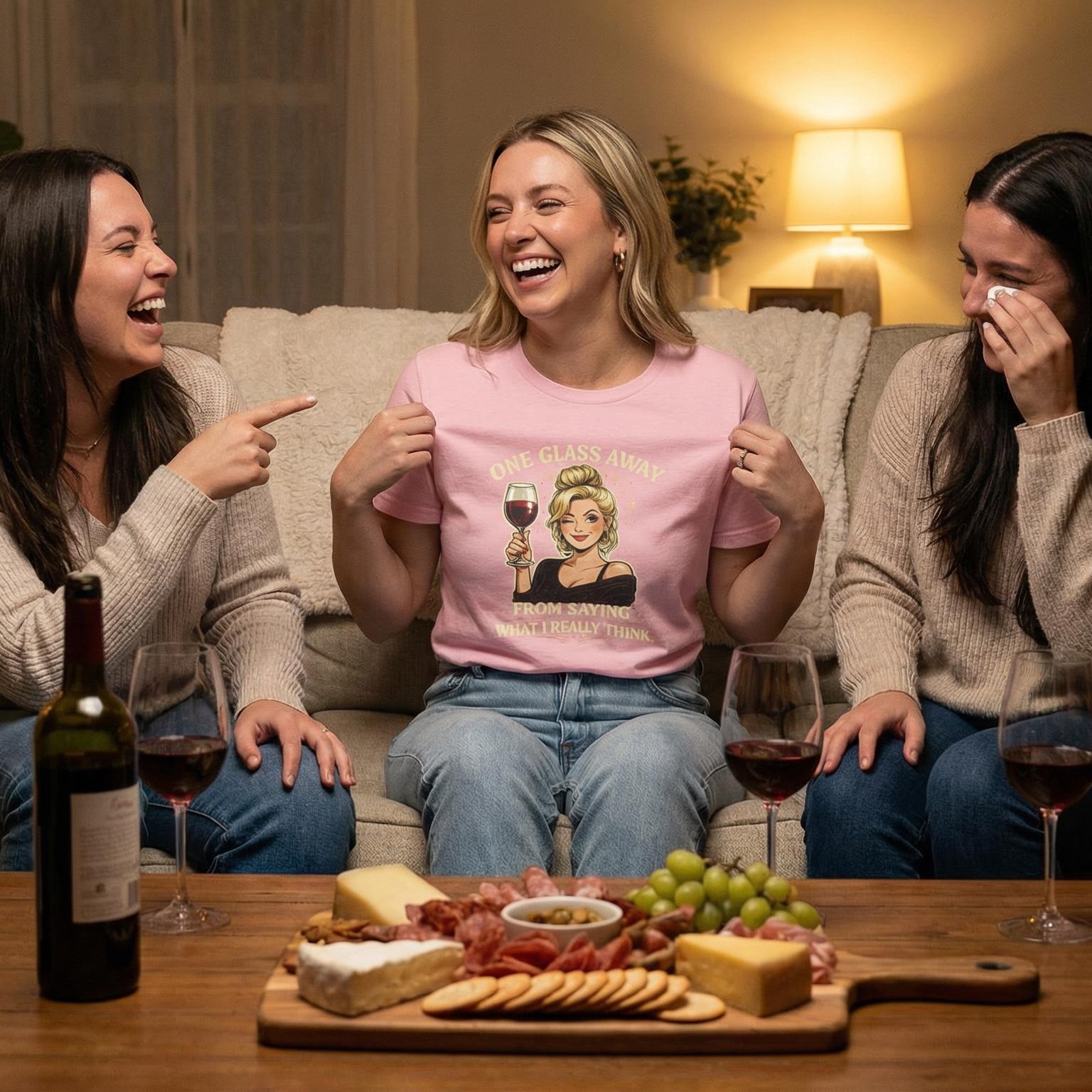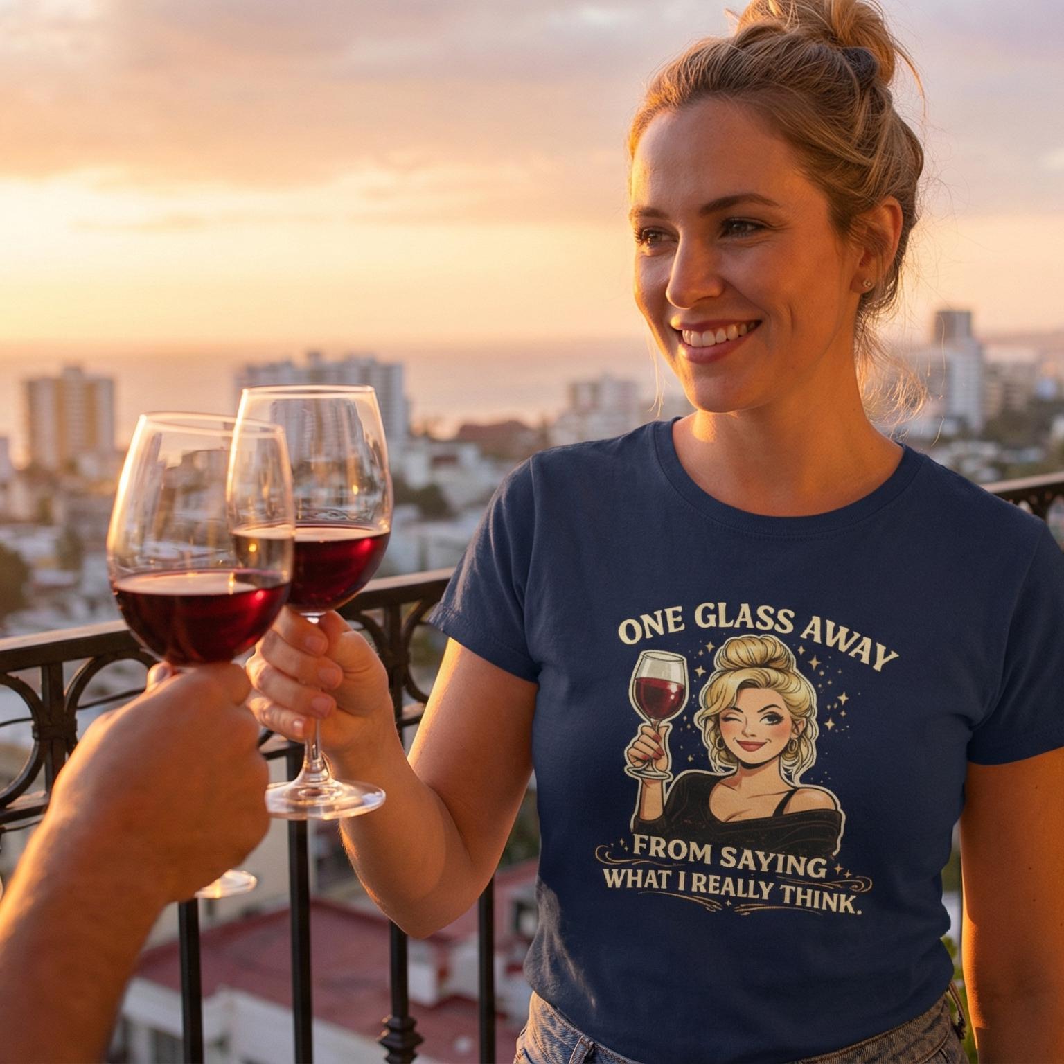 We’ve all been there—that sweet spot where the filter starts to fade and the real talk begins. Featuring a gorgeous winking vintage illustration, our "One Glass Away" tee is for the woman who is honest, confident, and perhaps just a little bit dangerous after a good Cabernet. It’s the perfect conversation starter for wine nights, book clubs, or whenever you're feeling "soulfully unbothered."