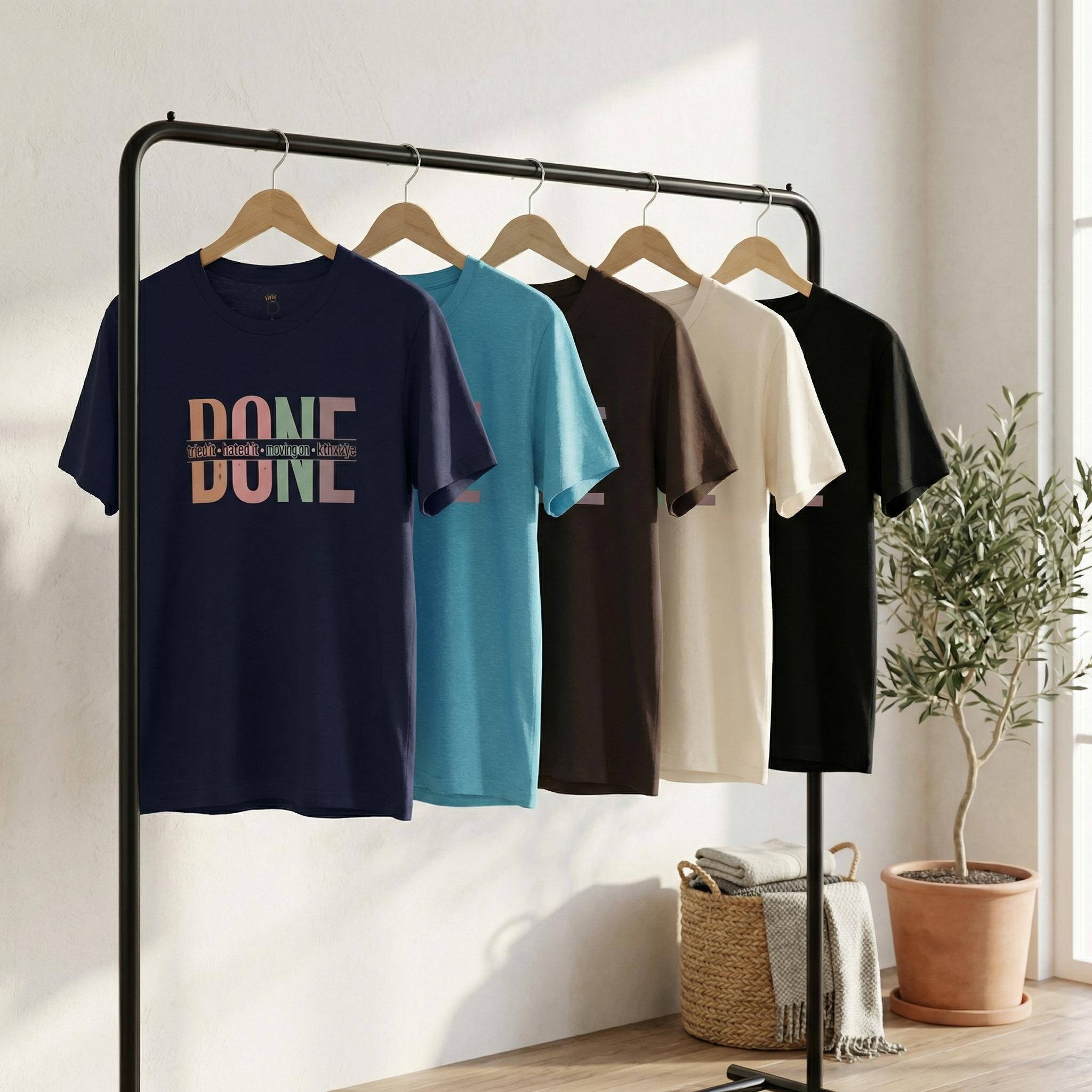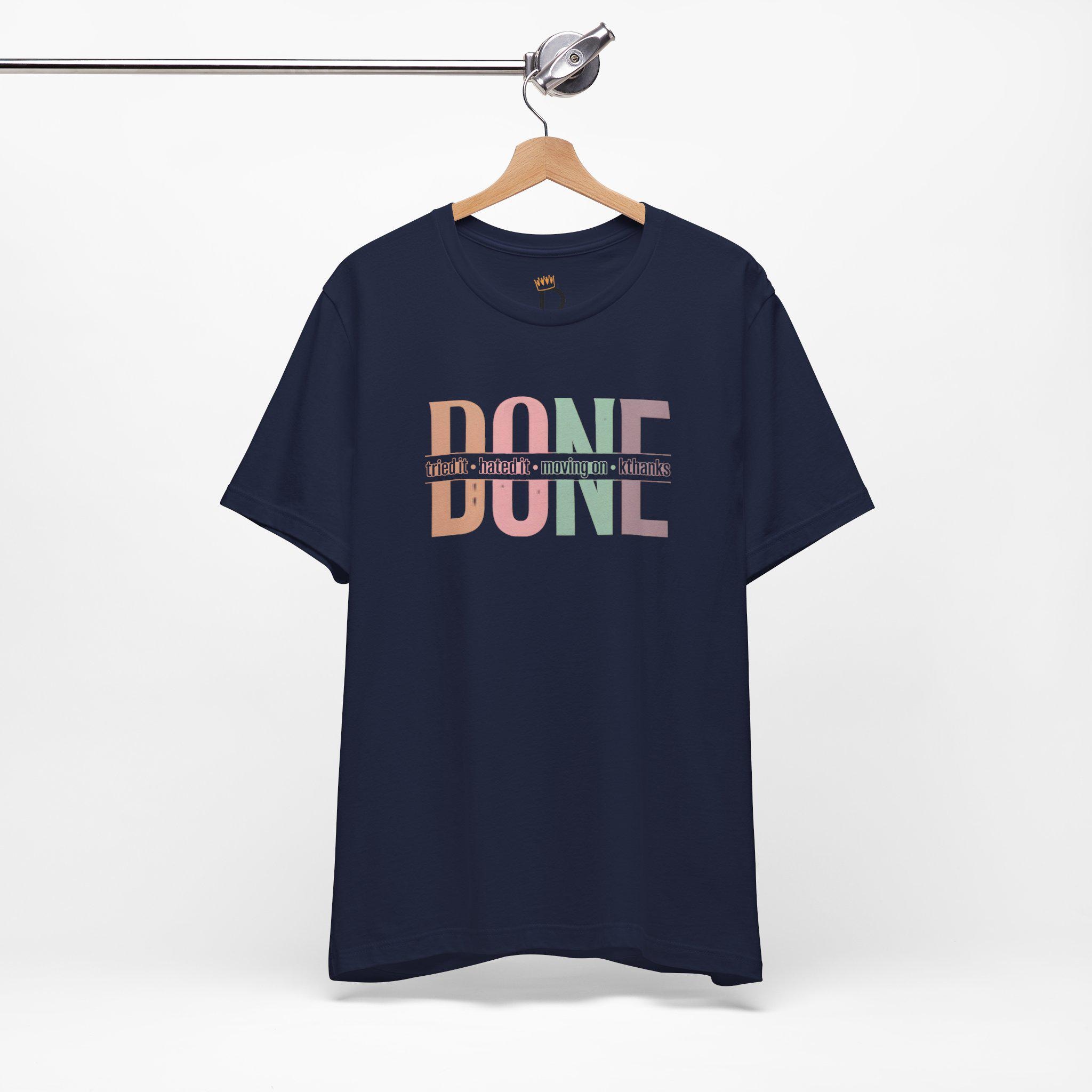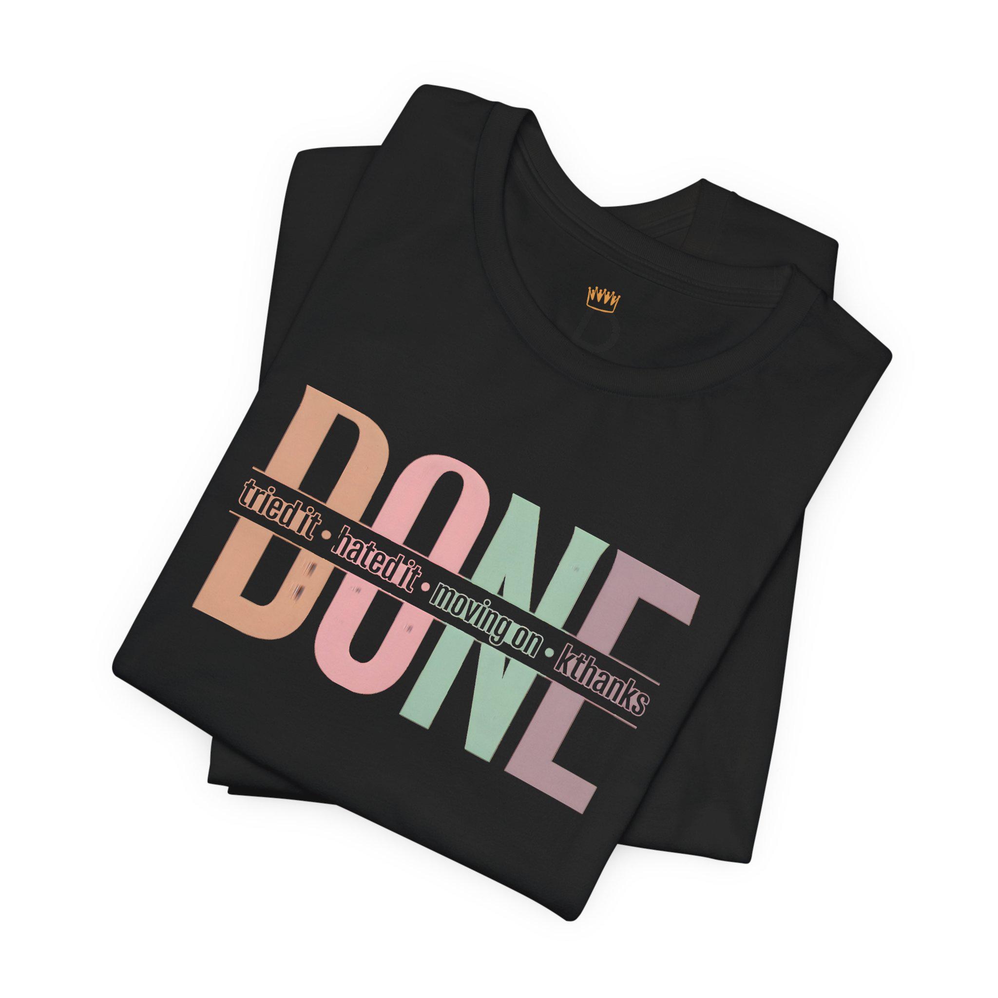 We’ve all been there—the project that wouldn't end, the hobby that wasn't for us, or the group chat that needed a "mute" button. Our "DONE" tee is your official badge of honor for choosing peace over persistence. Featuring a vibrant, multi-tonal retro layout, this shirt is for the woman who knows when to say "kthanks" and walk away with her confidence intact.