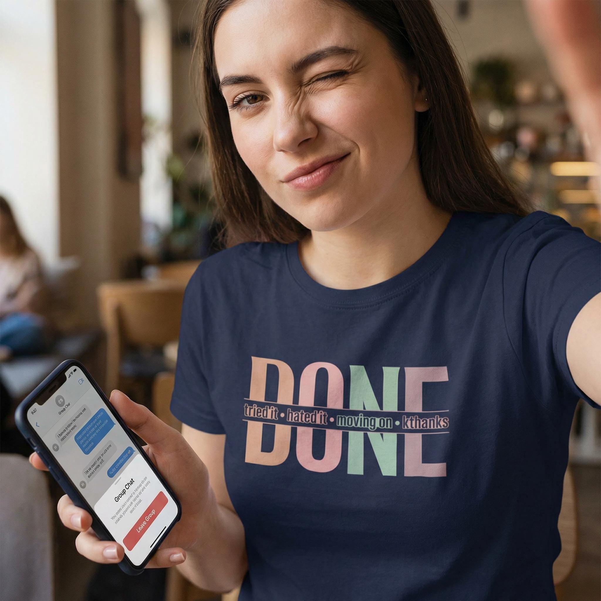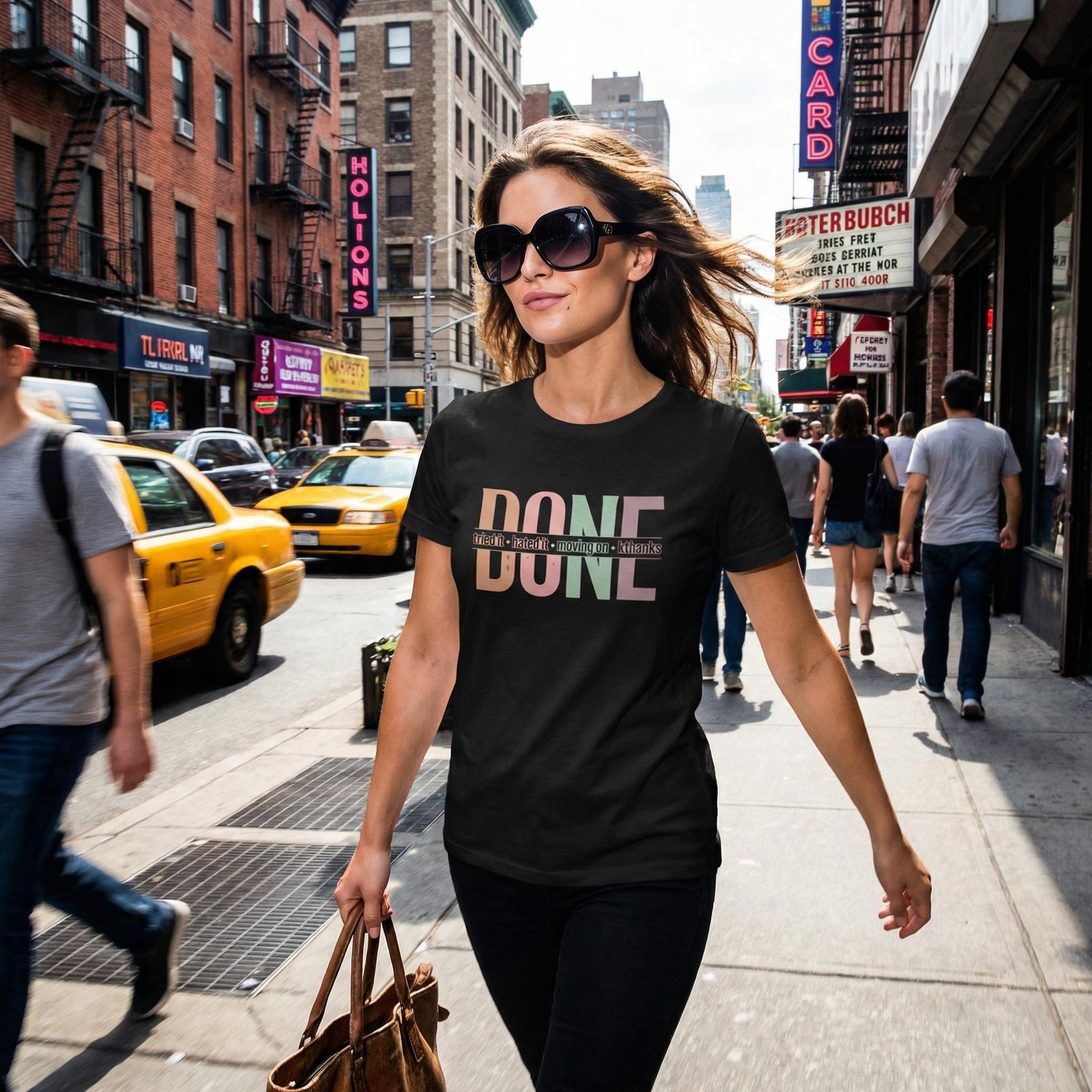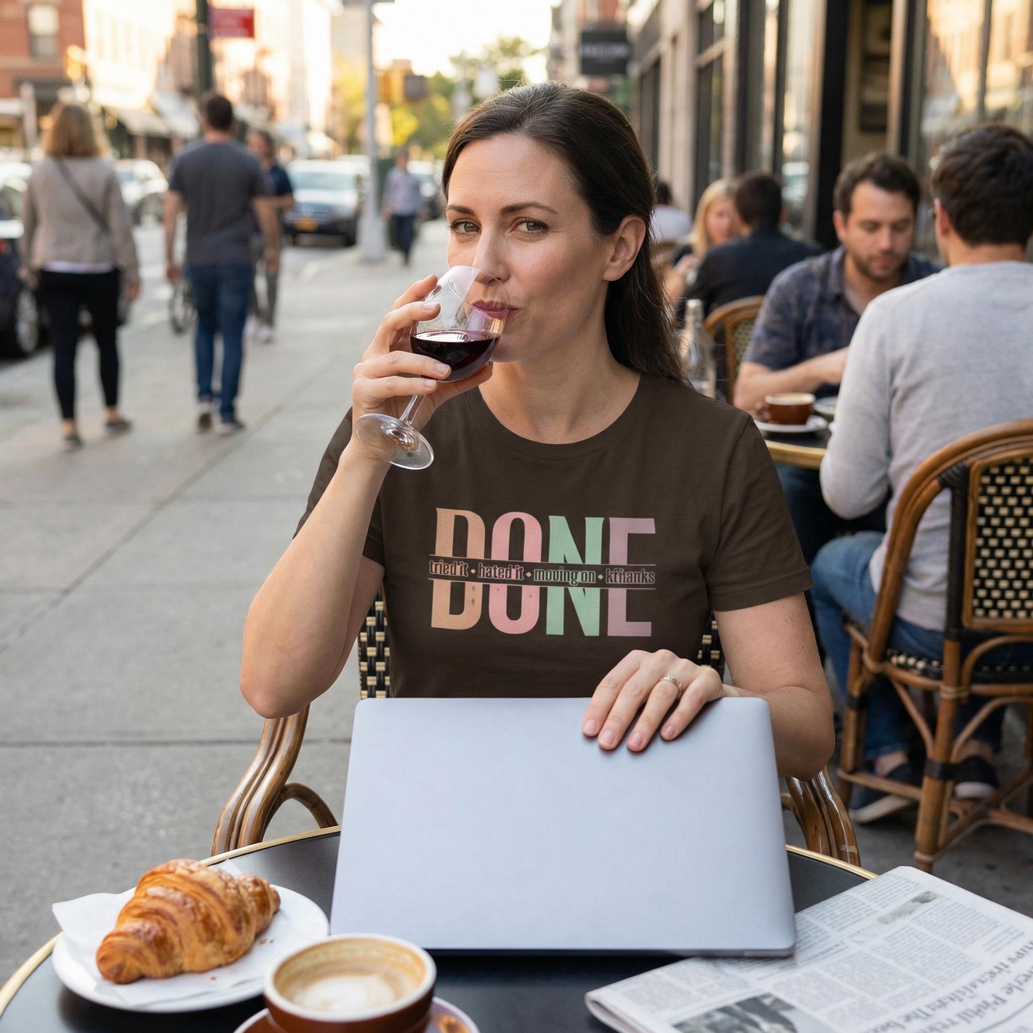 We’ve all been there—the project that wouldn't end, the hobby that wasn't for us, or the group chat that needed a "mute" button. Our "DONE" tee is your official badge of honor for choosing peace over persistence. Featuring a vibrant, multi-tonal retro layout, this shirt is for the woman who knows when to say "kthanks" and walk away with her confidence intact.