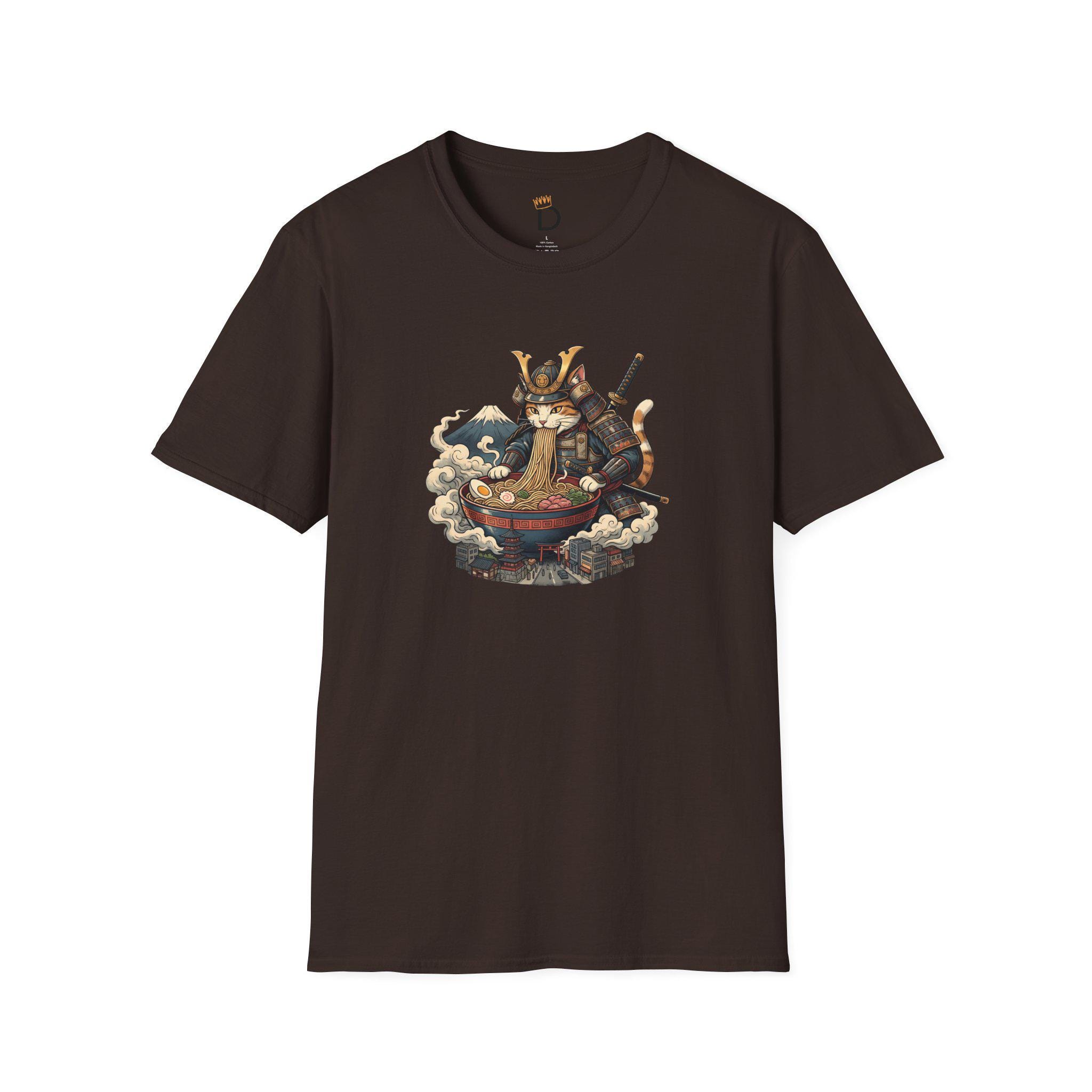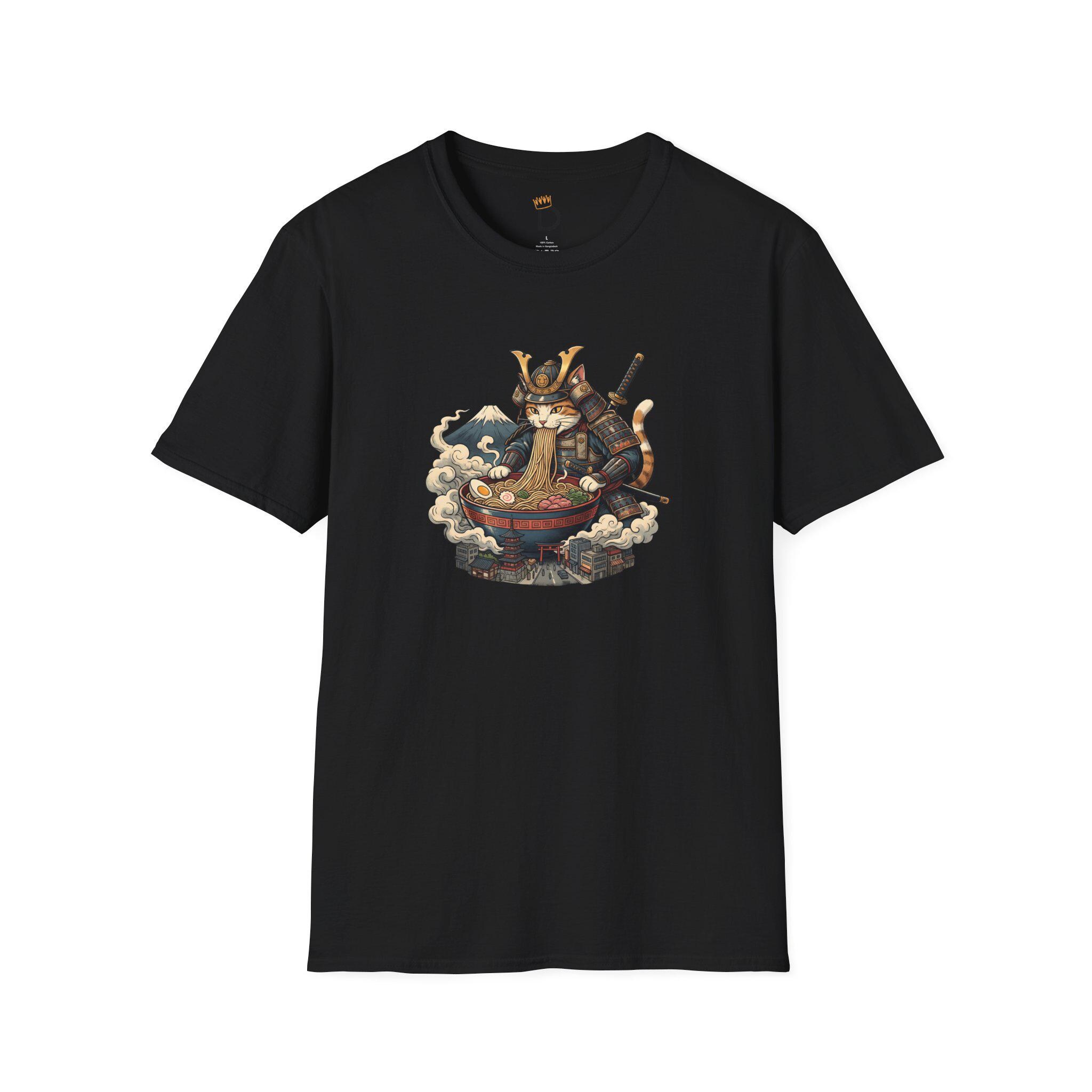 Samurai Cat Ramen T-Shirt: Japanese Ukiyo-e Graphic Tee