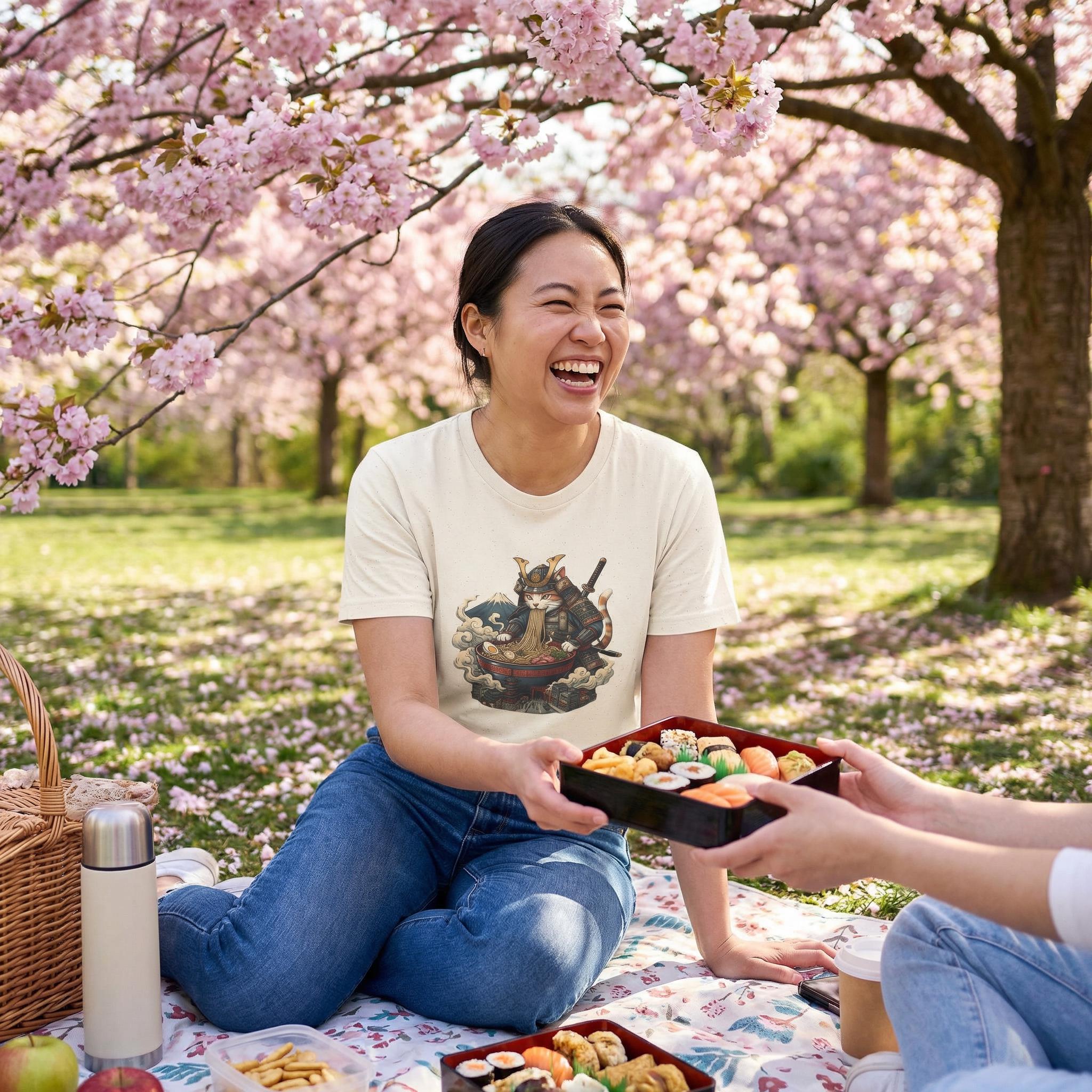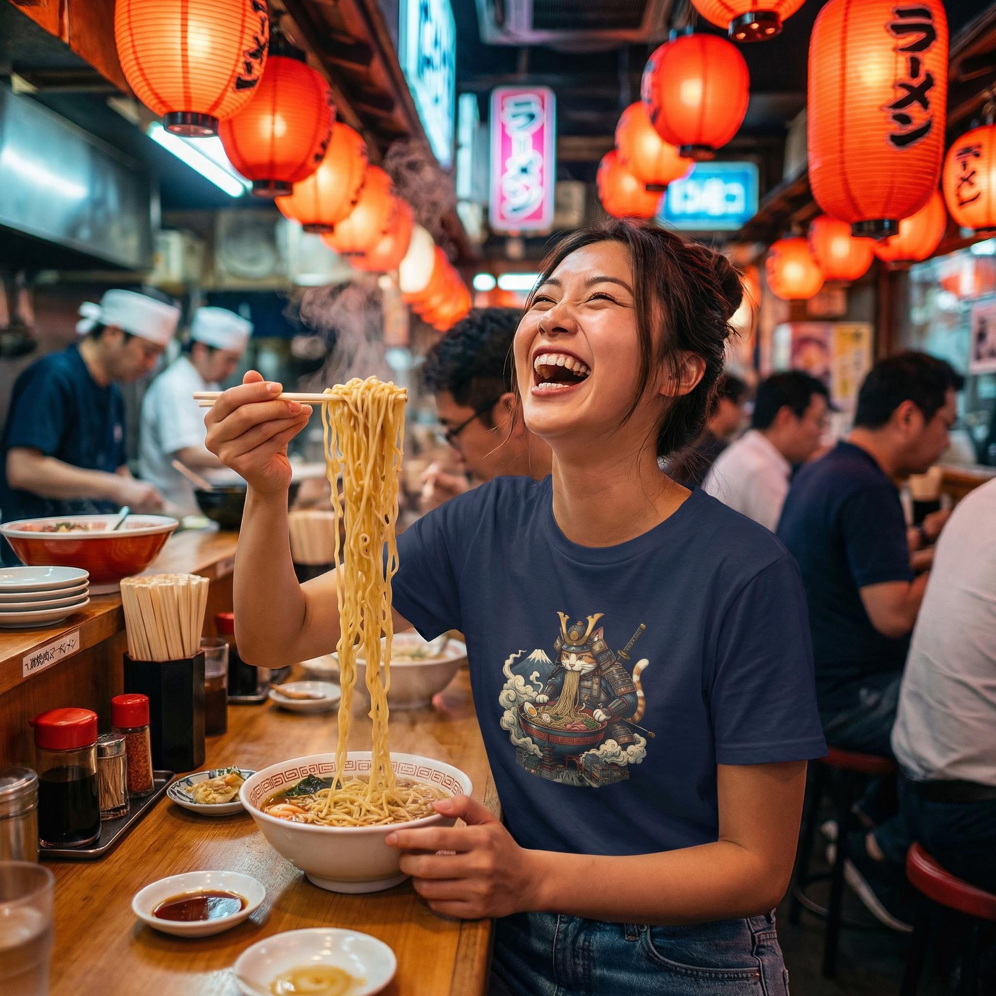 Master the art of the slurp with our Samurai Cat Ramen tee. This detailed, Ukiyo-e inspired design features a fierce (but hungry) feline warrior enjoying a legendary bowl of ramen in front of a majestic pagoda and Mt. Fuji. It’s the perfect blend of traditional Japanese art and modern "main character" energy. Whether you're heading to a ramen bar, a comic con, or just chilling at home, this shirt is your official uniform for flavor and style.