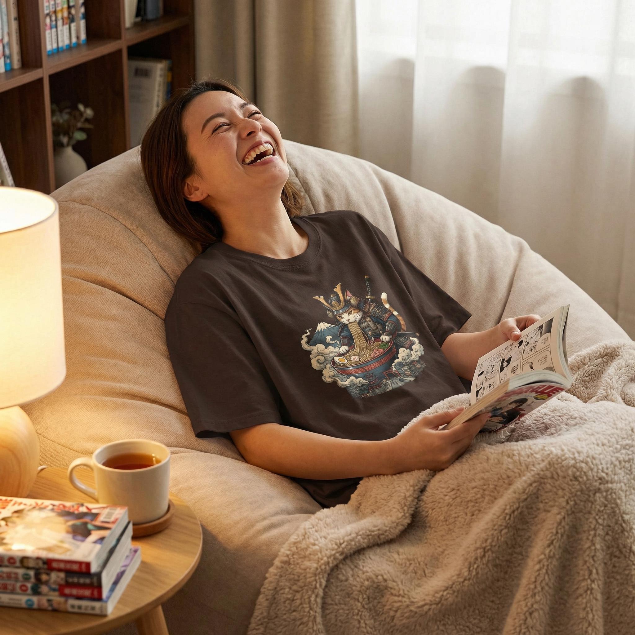 High-End Print: The high stitch density creates a smooth surface that makes the intricate colors of the samurai and ramen pop.
