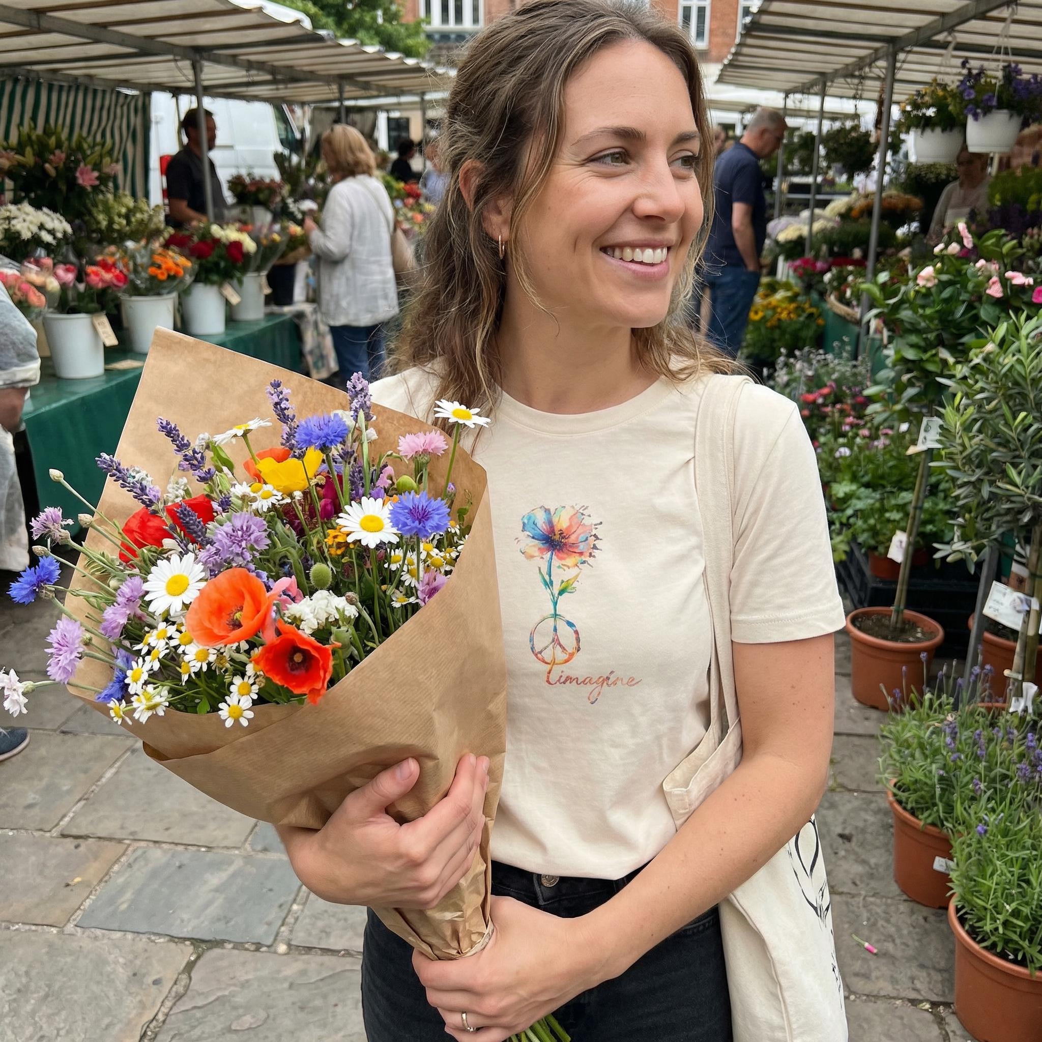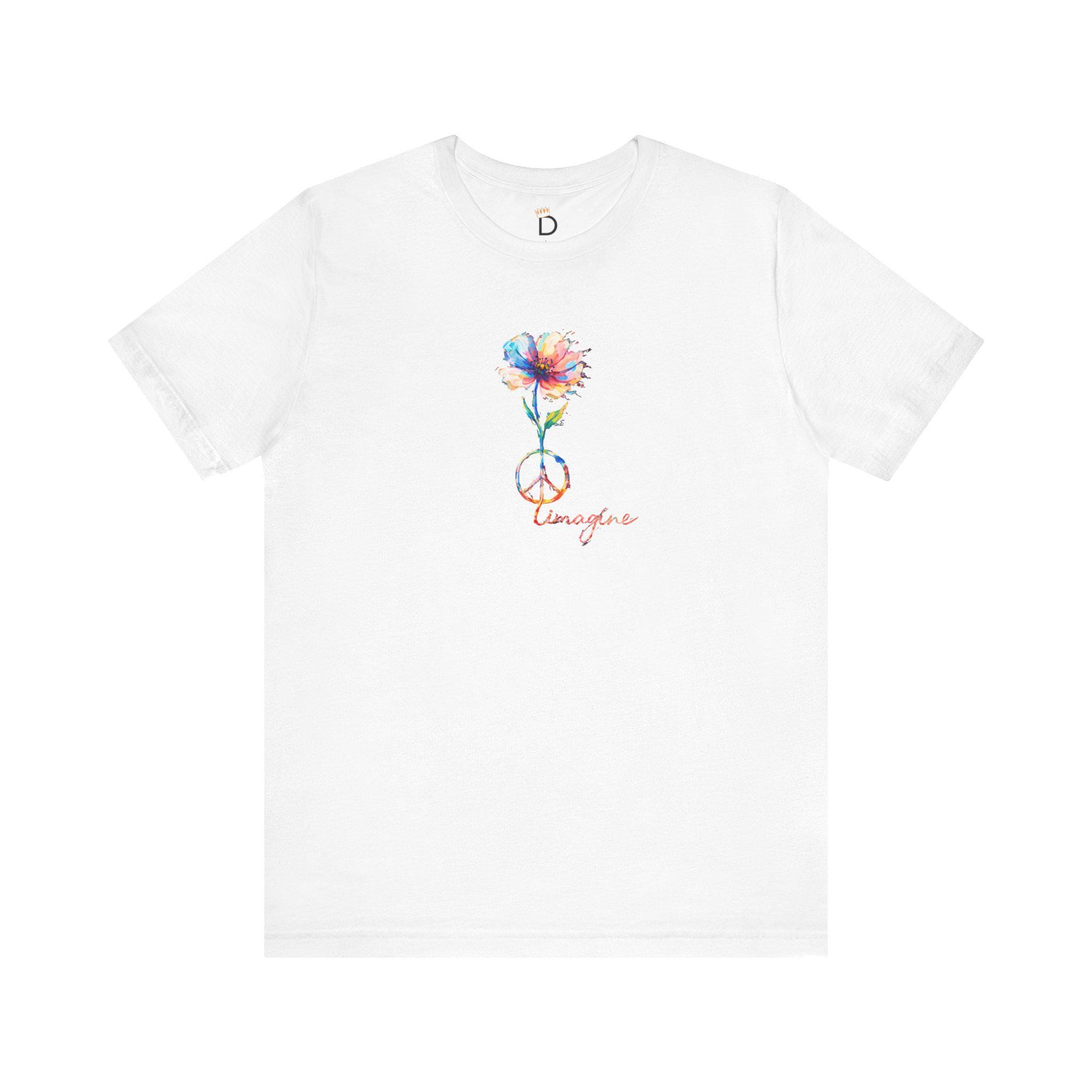 Watercolor Peace Sign T-Shirt, Imagine Floral Hippie Top