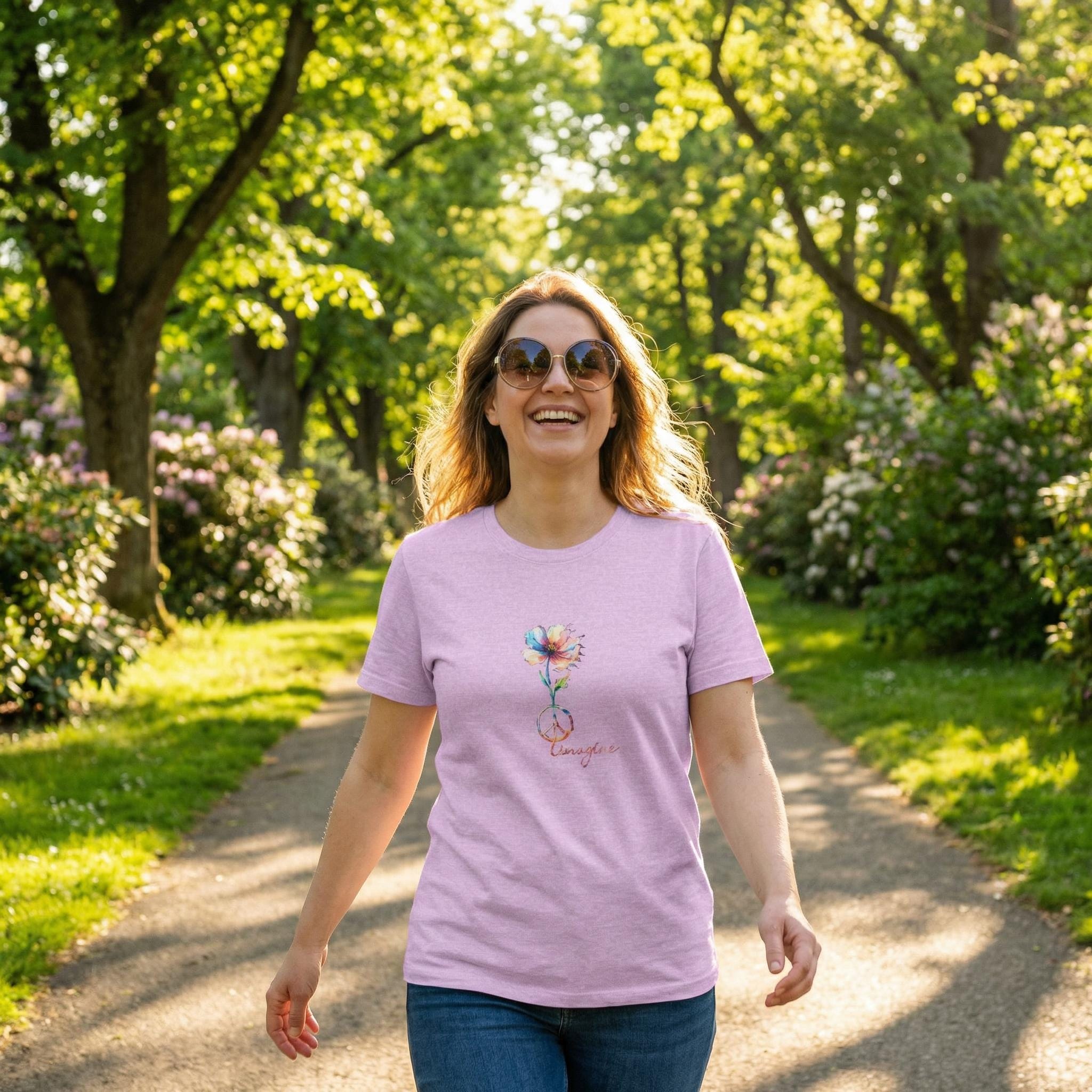 Turn up the volume on kindness and harmony. Our "Imagine Peace" tee features a stunning, colorful watercolor wildflower blooming from a classic peace sign—a visual reminder of the beauty we can grow when we choose peace. Whether you're a dreamer, a modern-day hippie, or simply someone who believes in spreading light, this shirt is your official uniform for a "soulfully unbothered" life.
