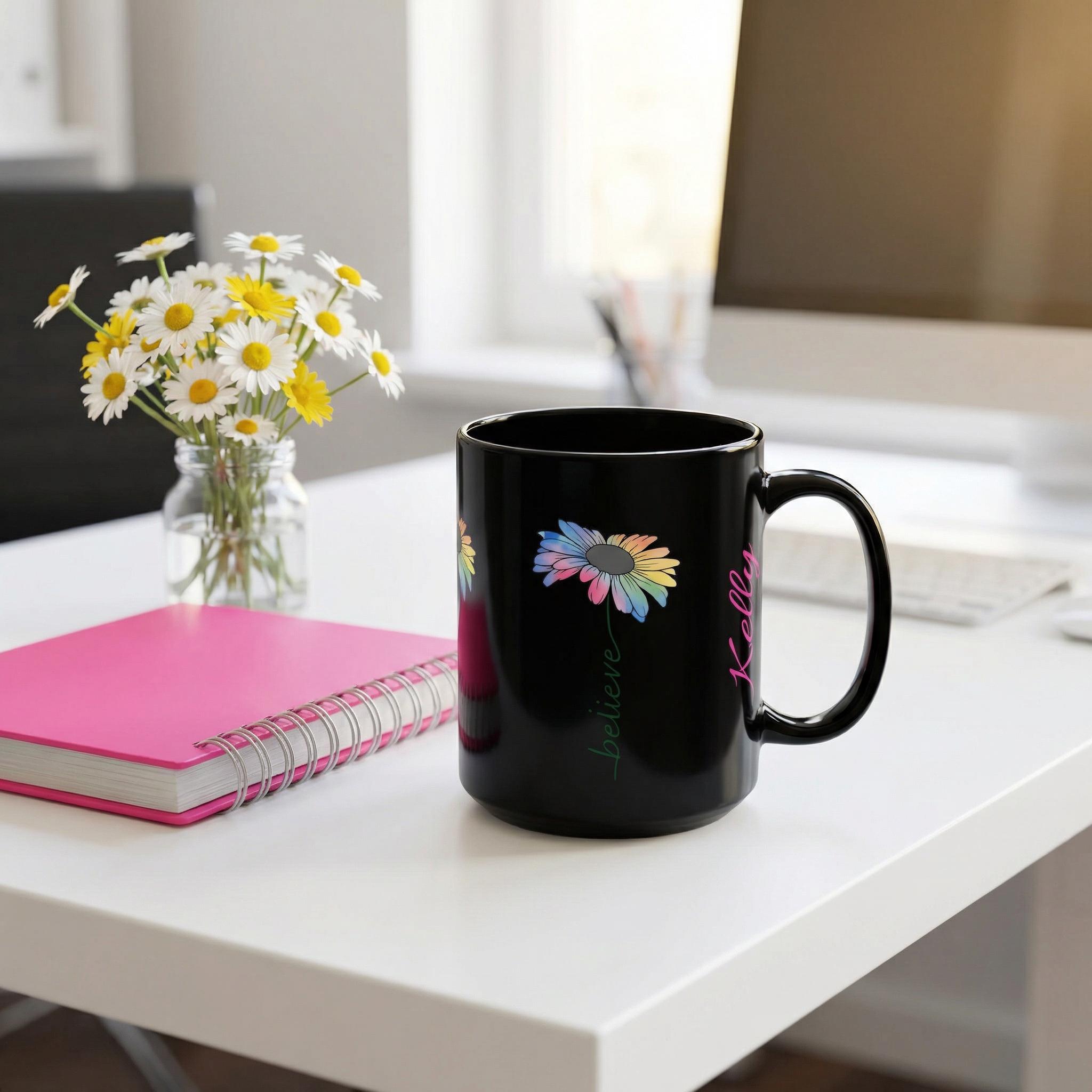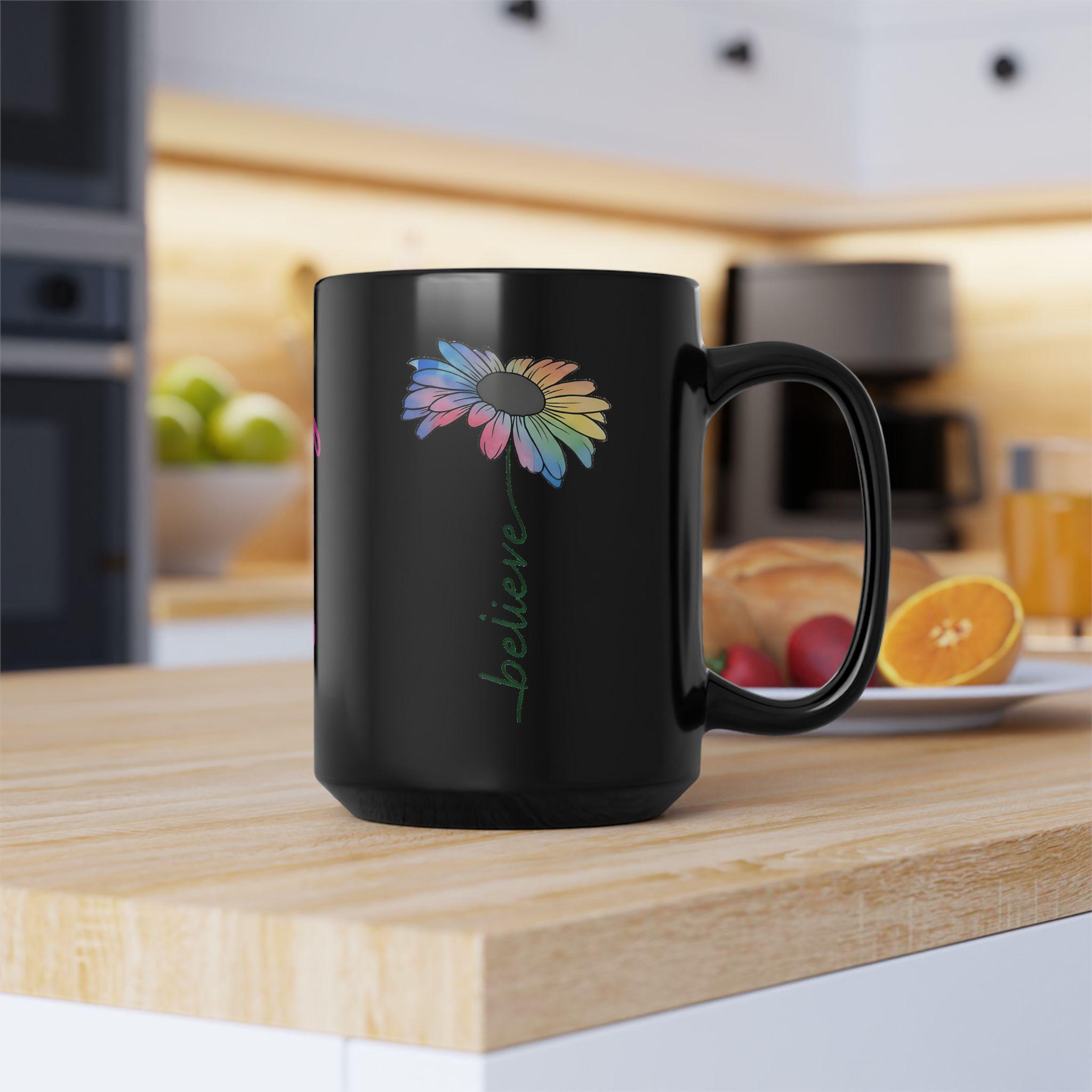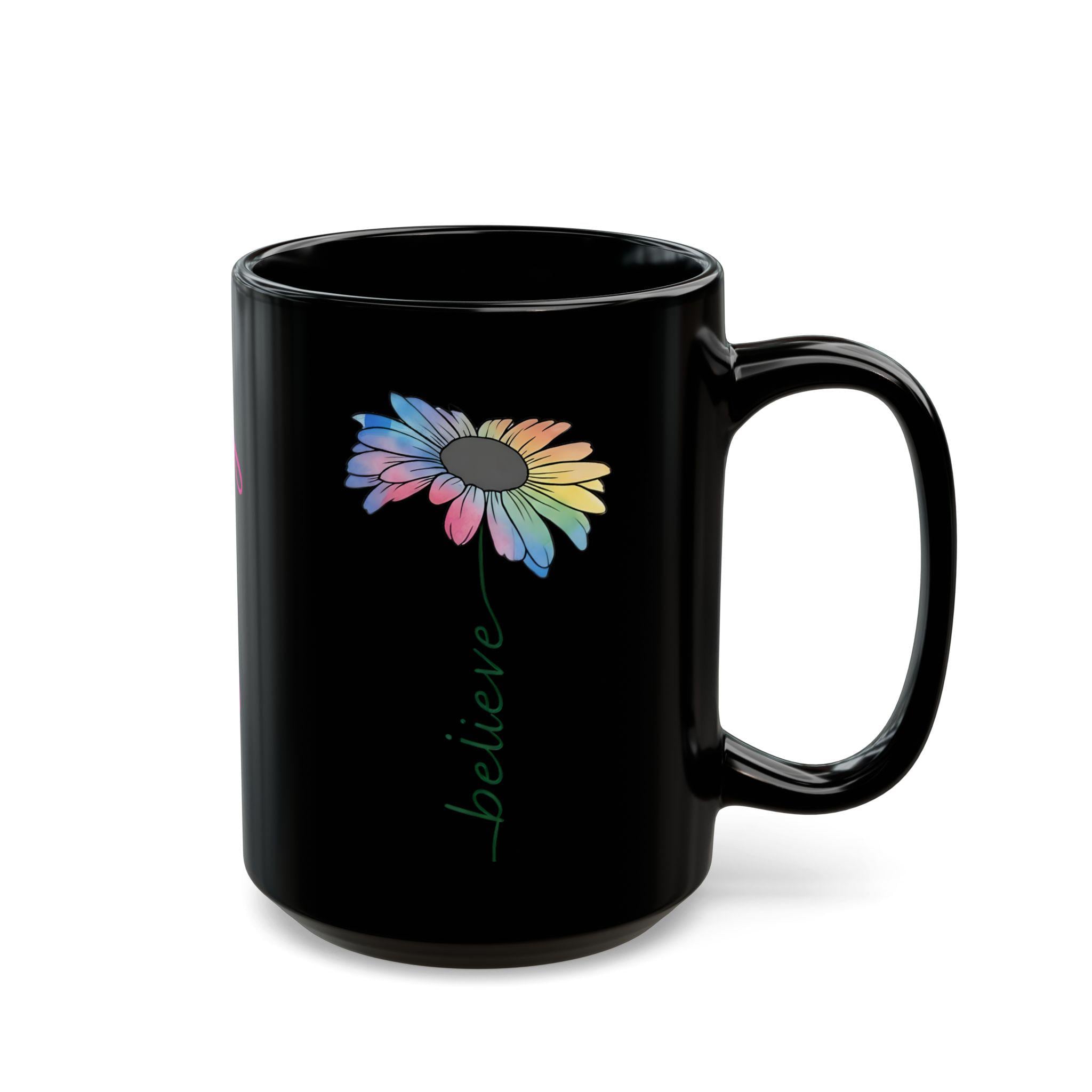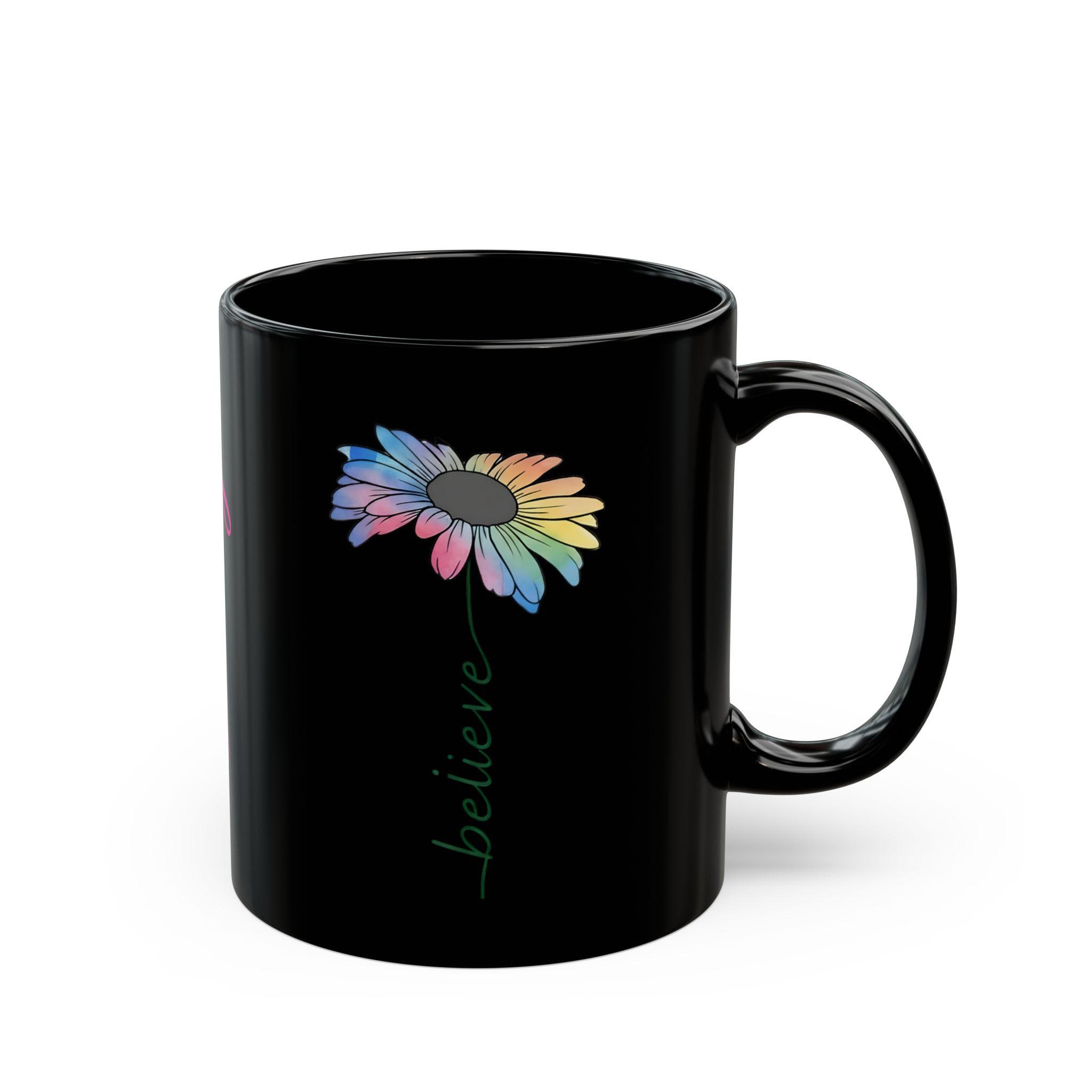 Sometimes all it takes is one word to shift your entire perspective. Our "Believe" mug features a stunning, watercolor-style daisy that represents growth, beauty, and the vibrant colors of faith. Set against a sleek black ceramic finish, this design is for the woman who walks by faith and appreciates a "refined" aesthetic.