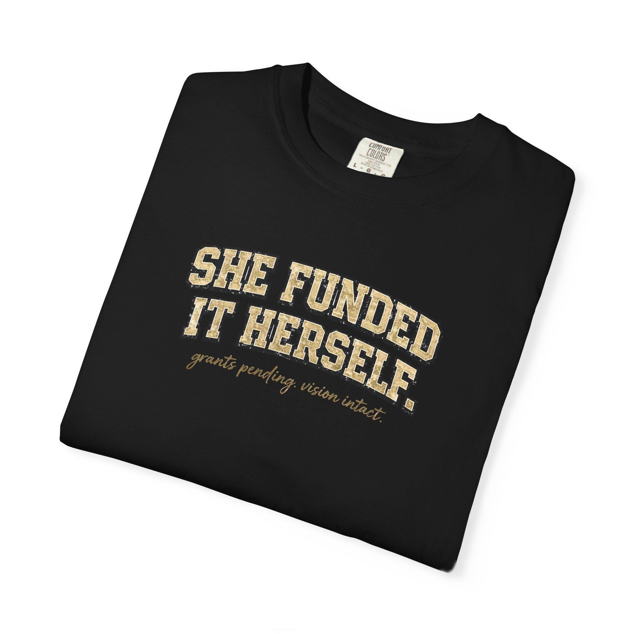 She Funded It Herself Comfort Colors 1717 T-Shirt – Vintage Graphic Tee for Entrepreneurs