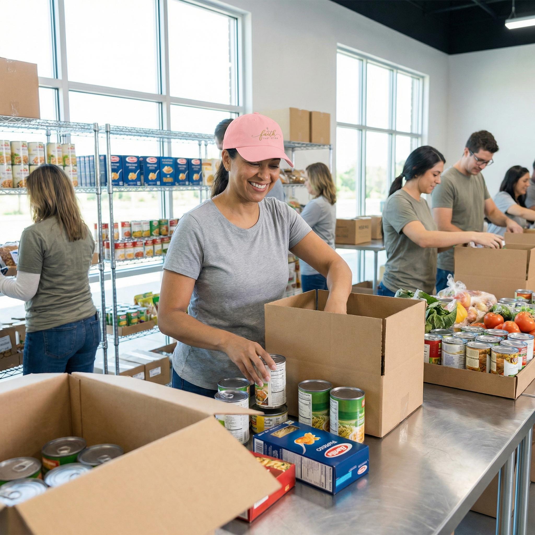 The Message: "Faith That Gives" with a minimalist cross detail—a conversation starter with a purpose.
