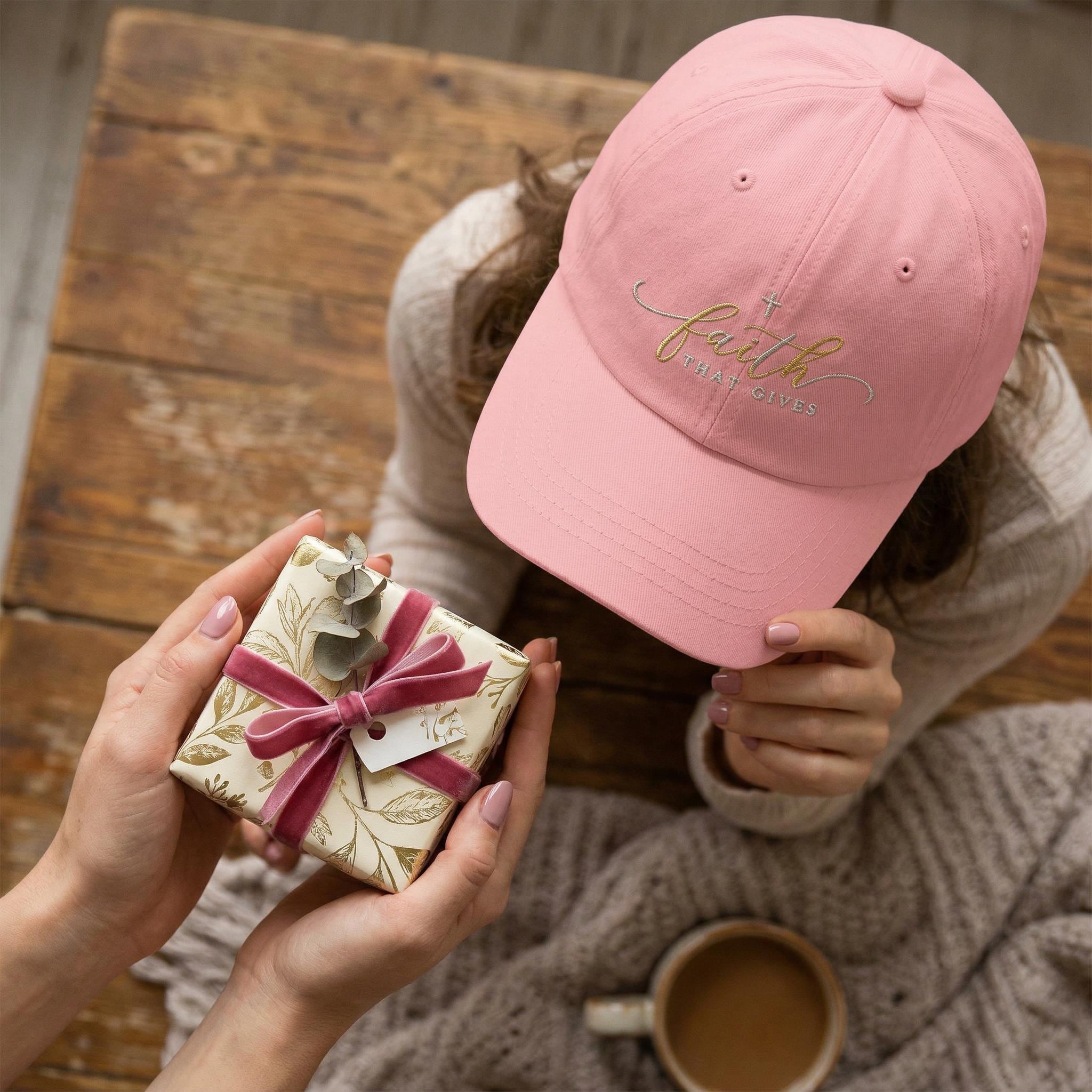 More than just an accessory, our "Faith That Gives" dad hat is a reminder of the heart behind the hustle. Featuring elegant script and a subtle metallic cross, this hat is designed for those who live out their faith through generosity and love.