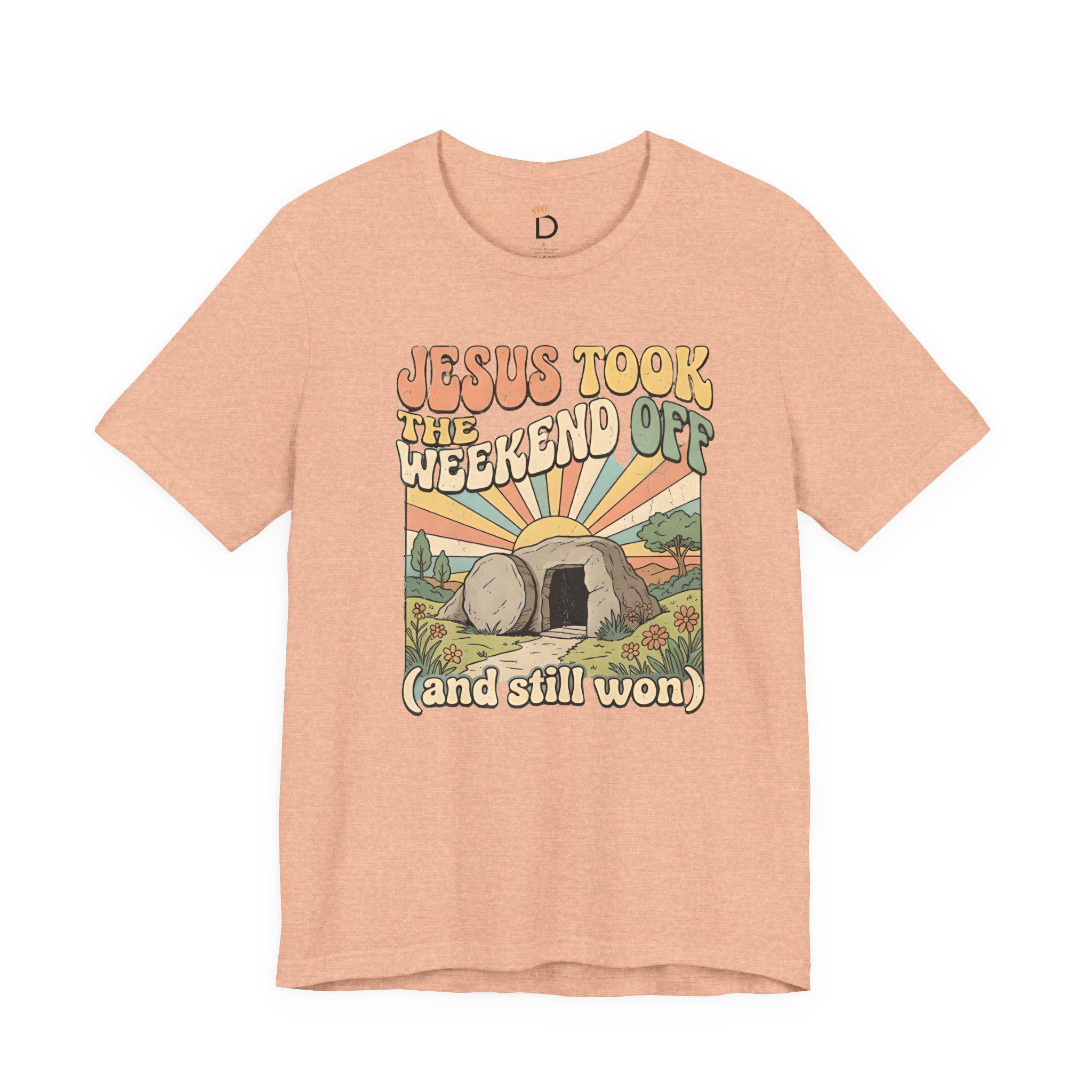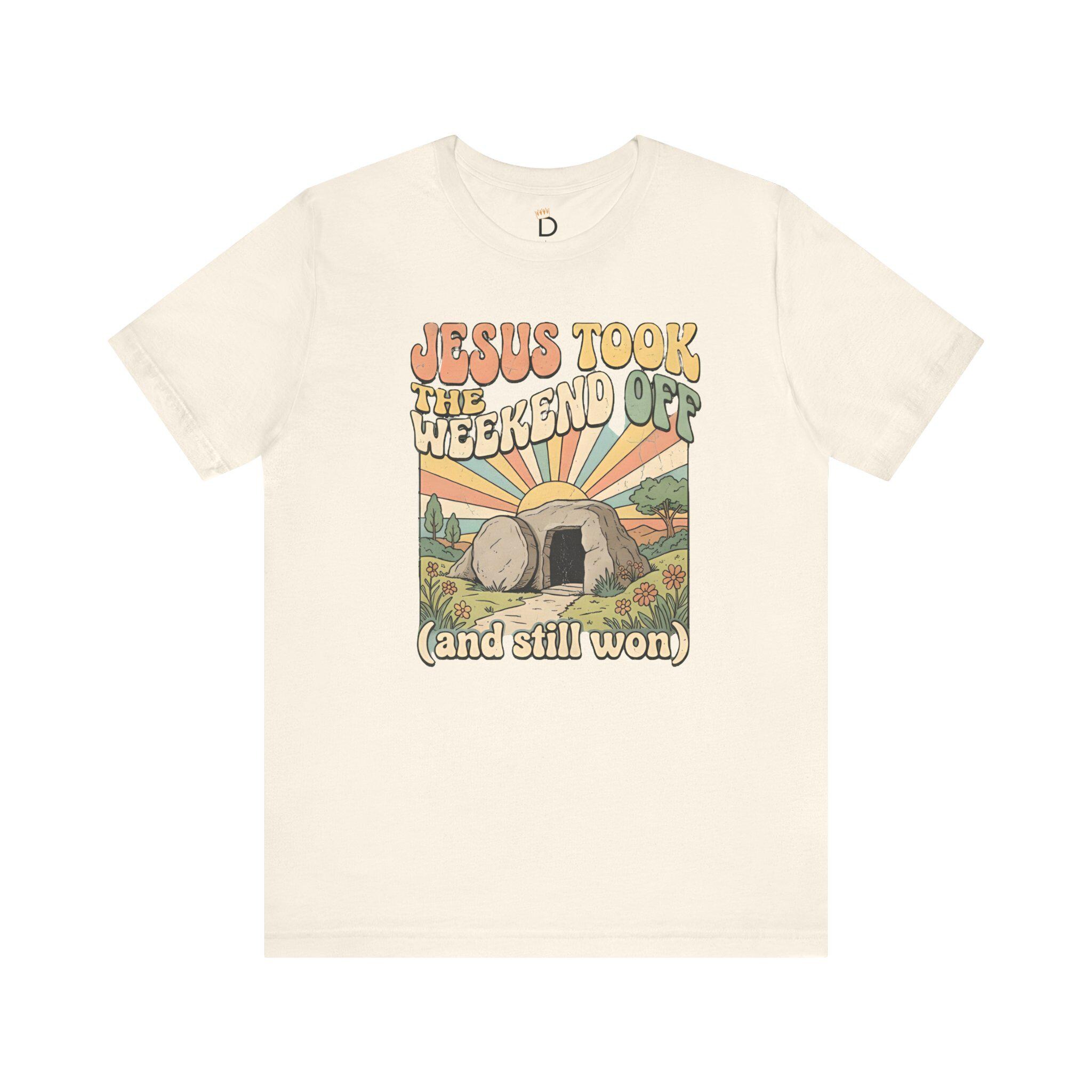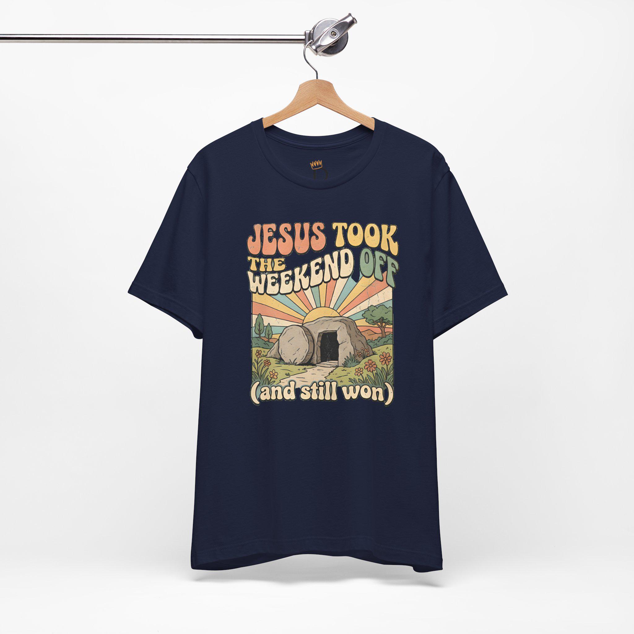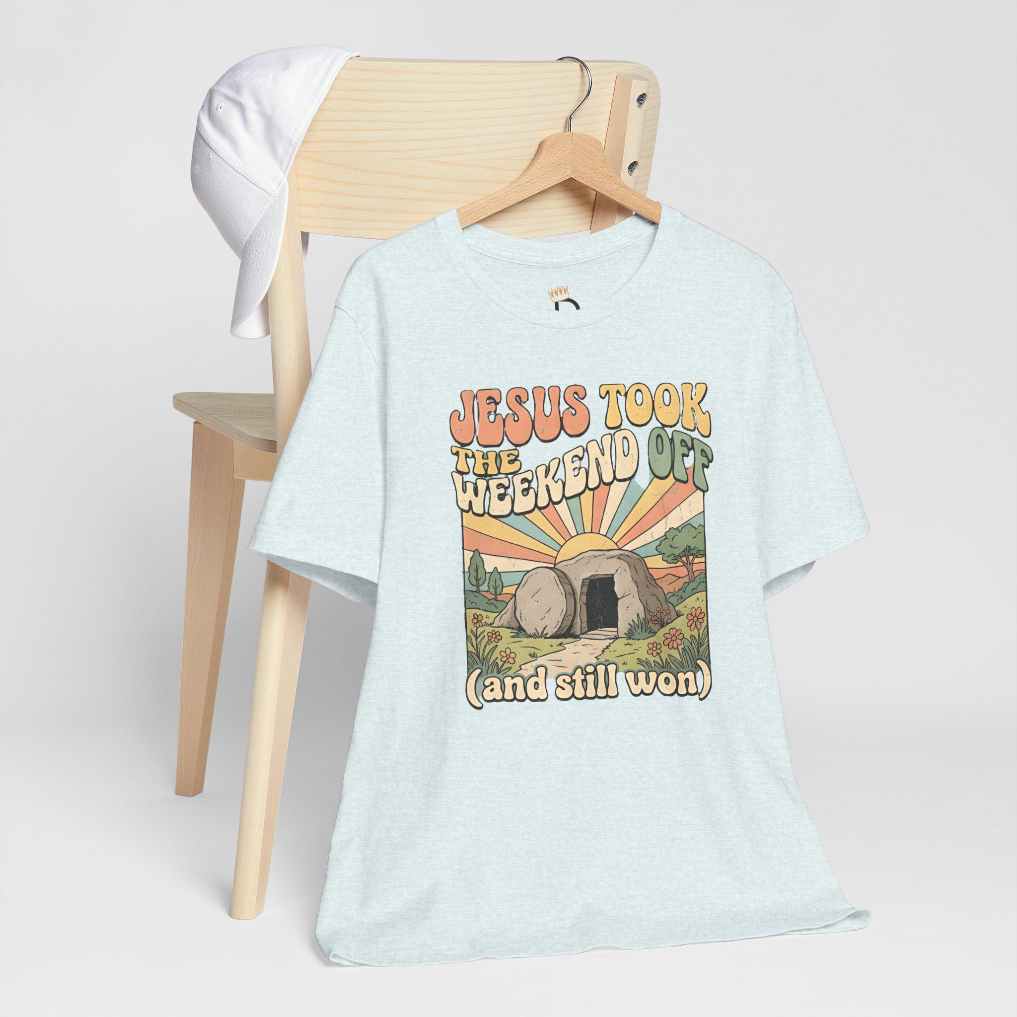 Jesus Took The Weekend Off Retro Easter T-Shirt, Groovy Faith Tee
