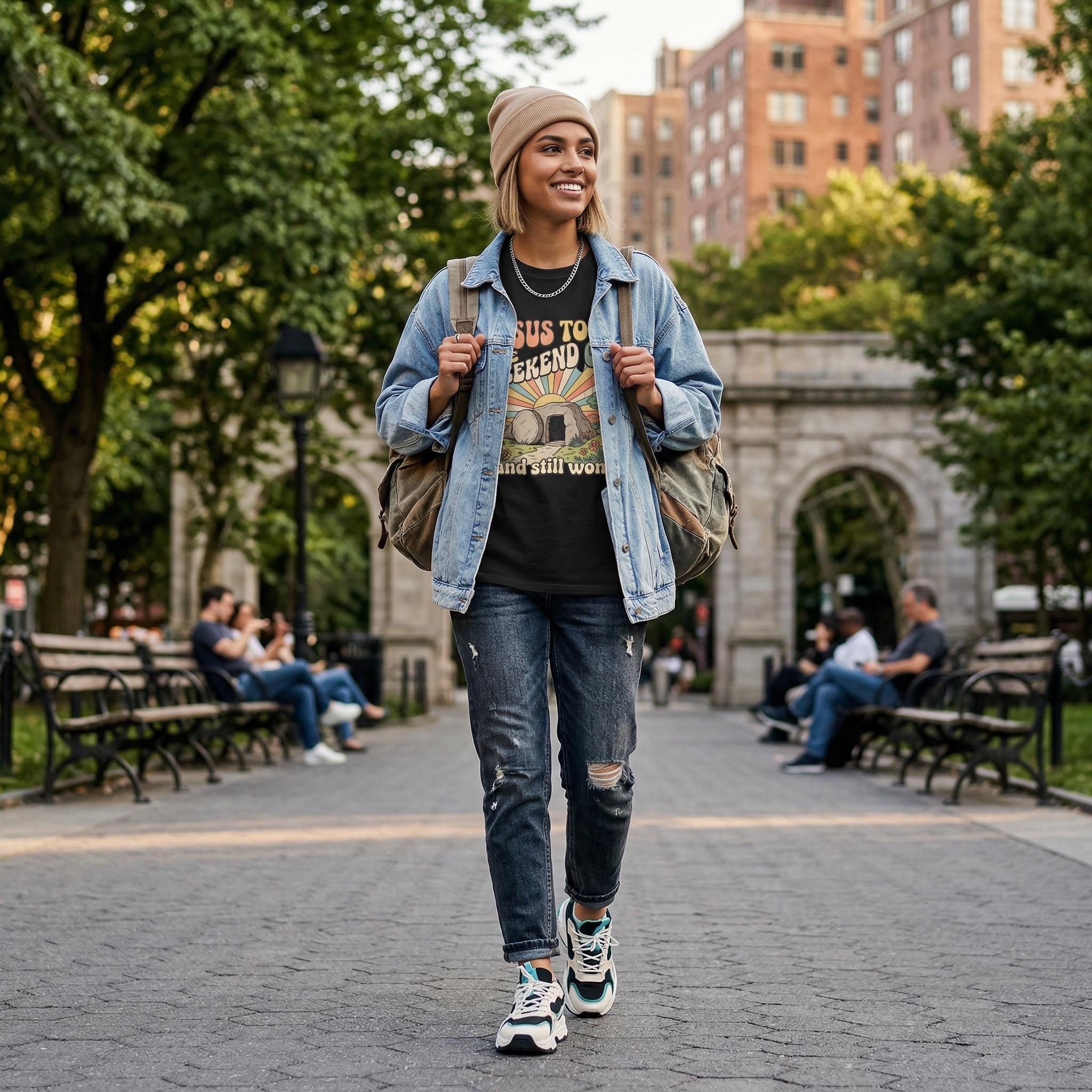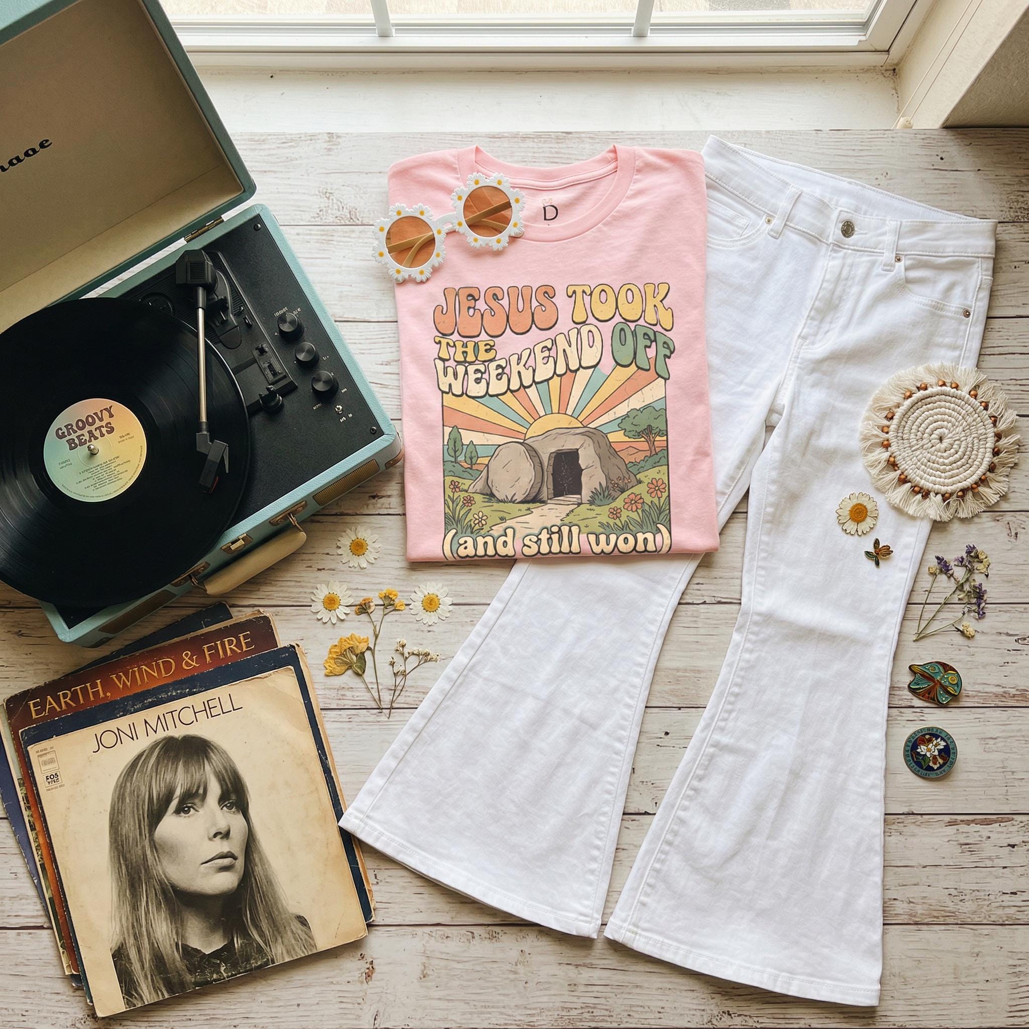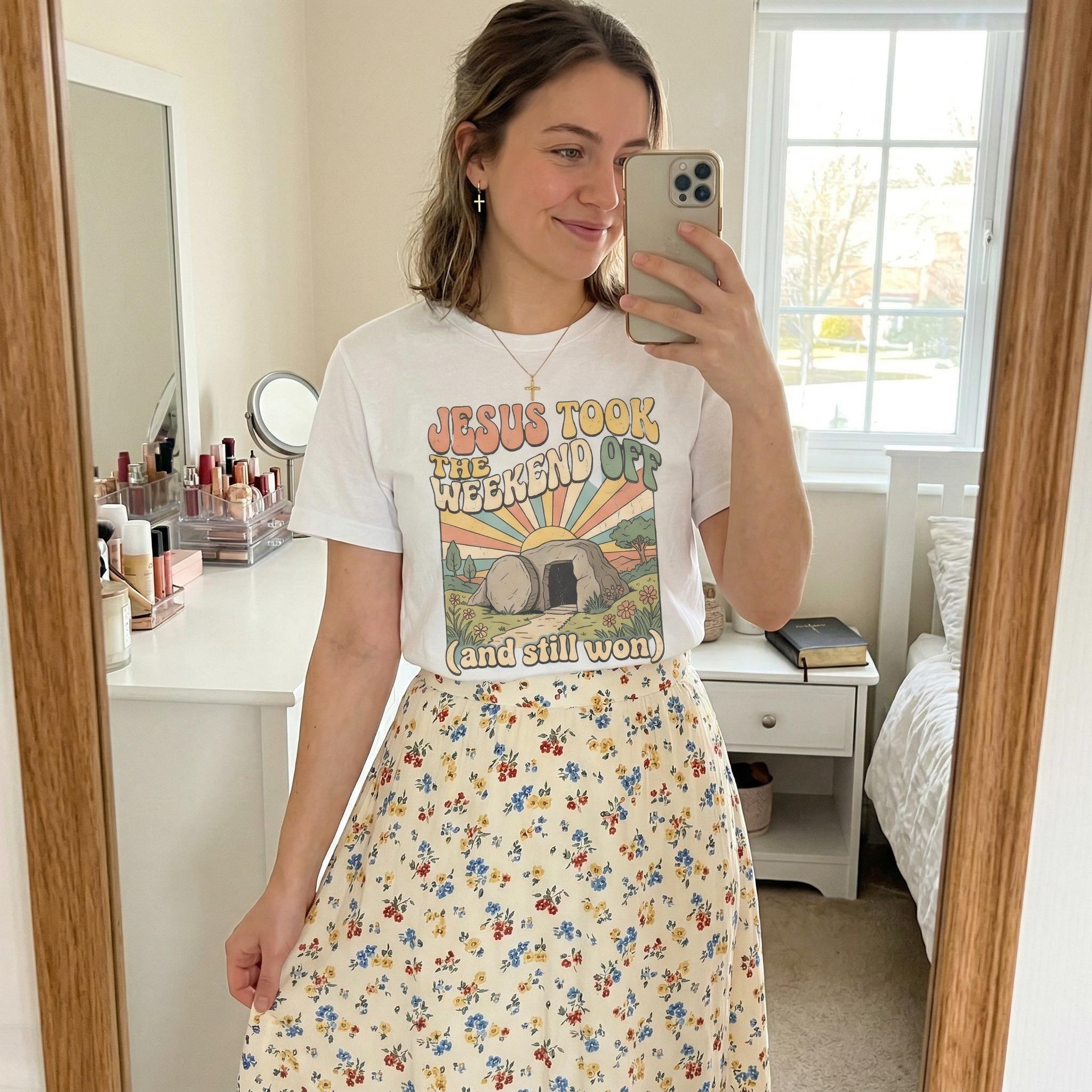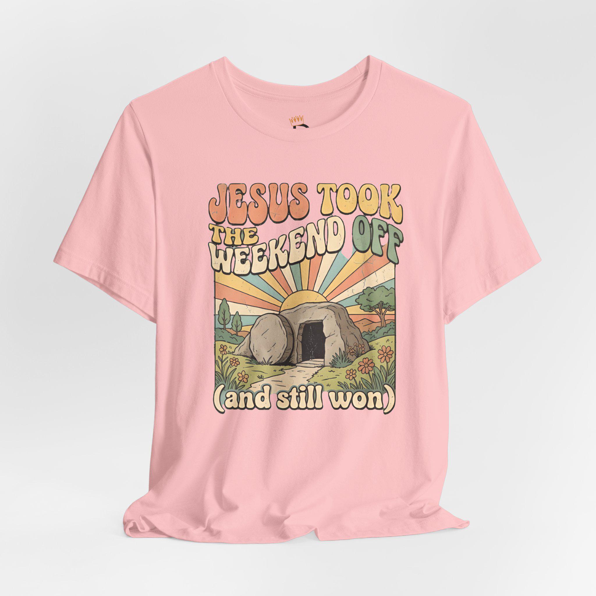 Jesus Took The Weekend Off Retro Easter T-Shirt, Groovy Faith Tee