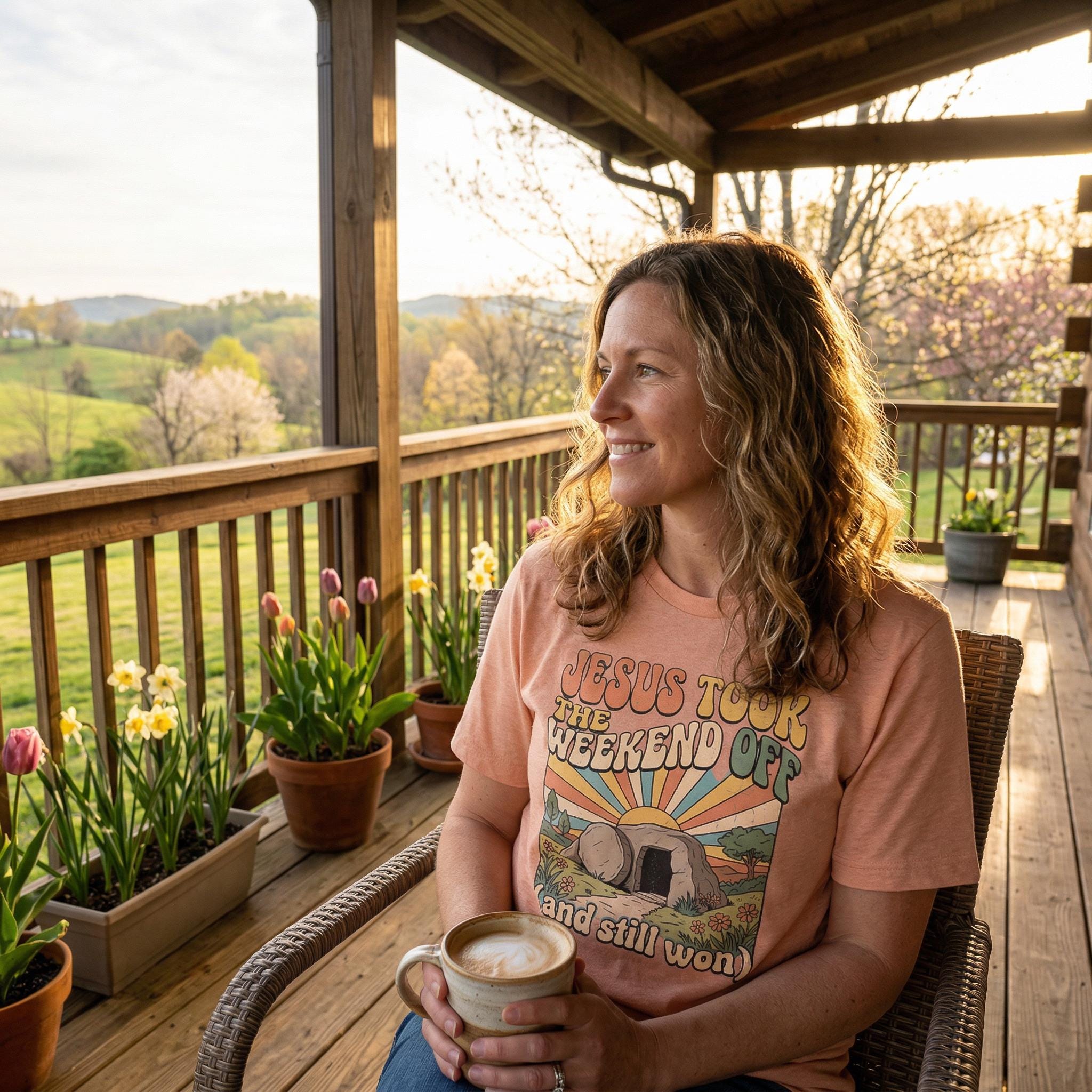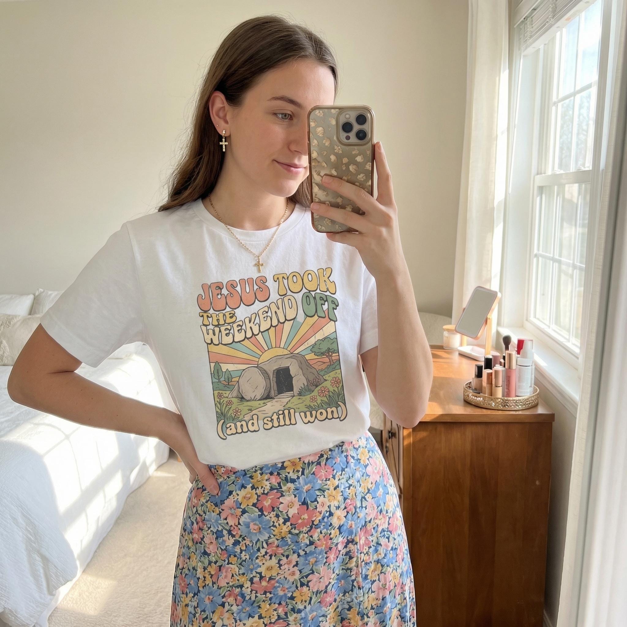 Celebrate the greatest comeback in history with a touch of retro flair. Our "Jesus Took The Weekend Off" tee features a vibrant 70s-inspired sunset over the empty tomb, reminding everyone that He still won. It’s the perfect blend of faith-forward messaging and trendy vintage style.