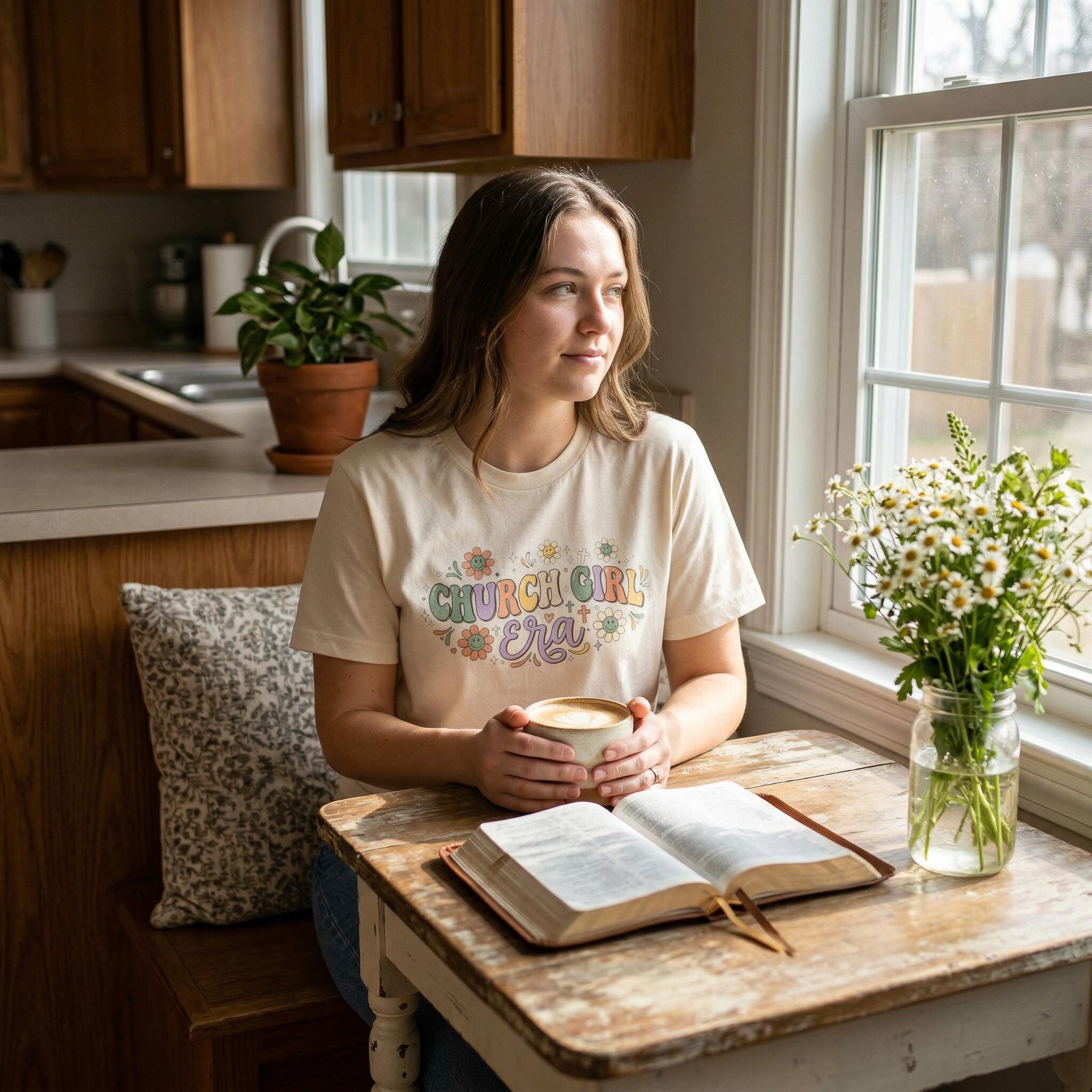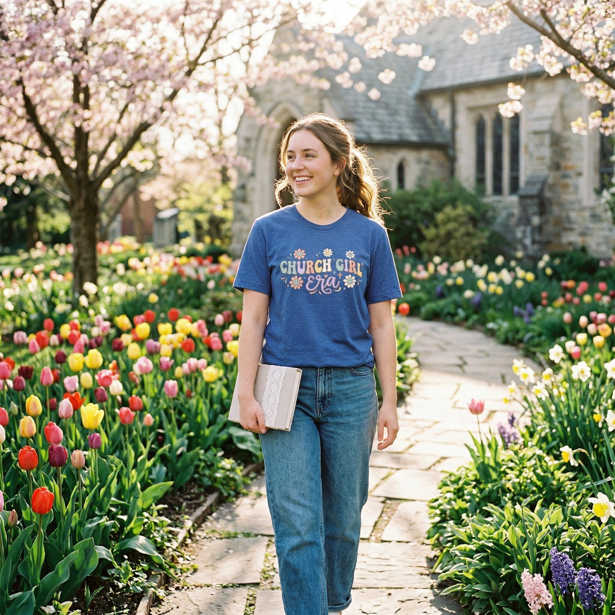 Retro Church Girl T-Shirt Faith Outfit Vintage Floral Pastel Christian Tee for Women Sunday Church, Bible Study, Jesus shirt