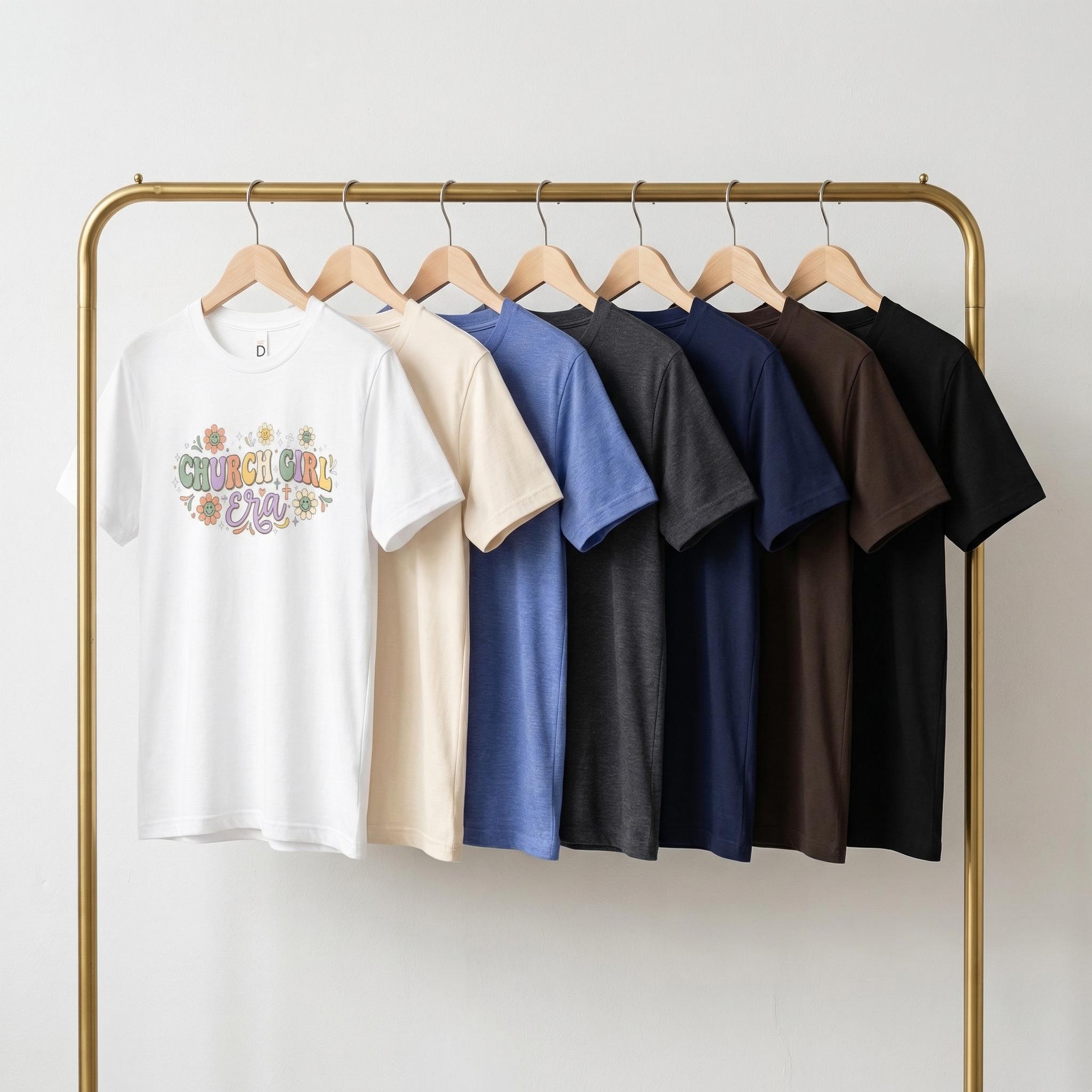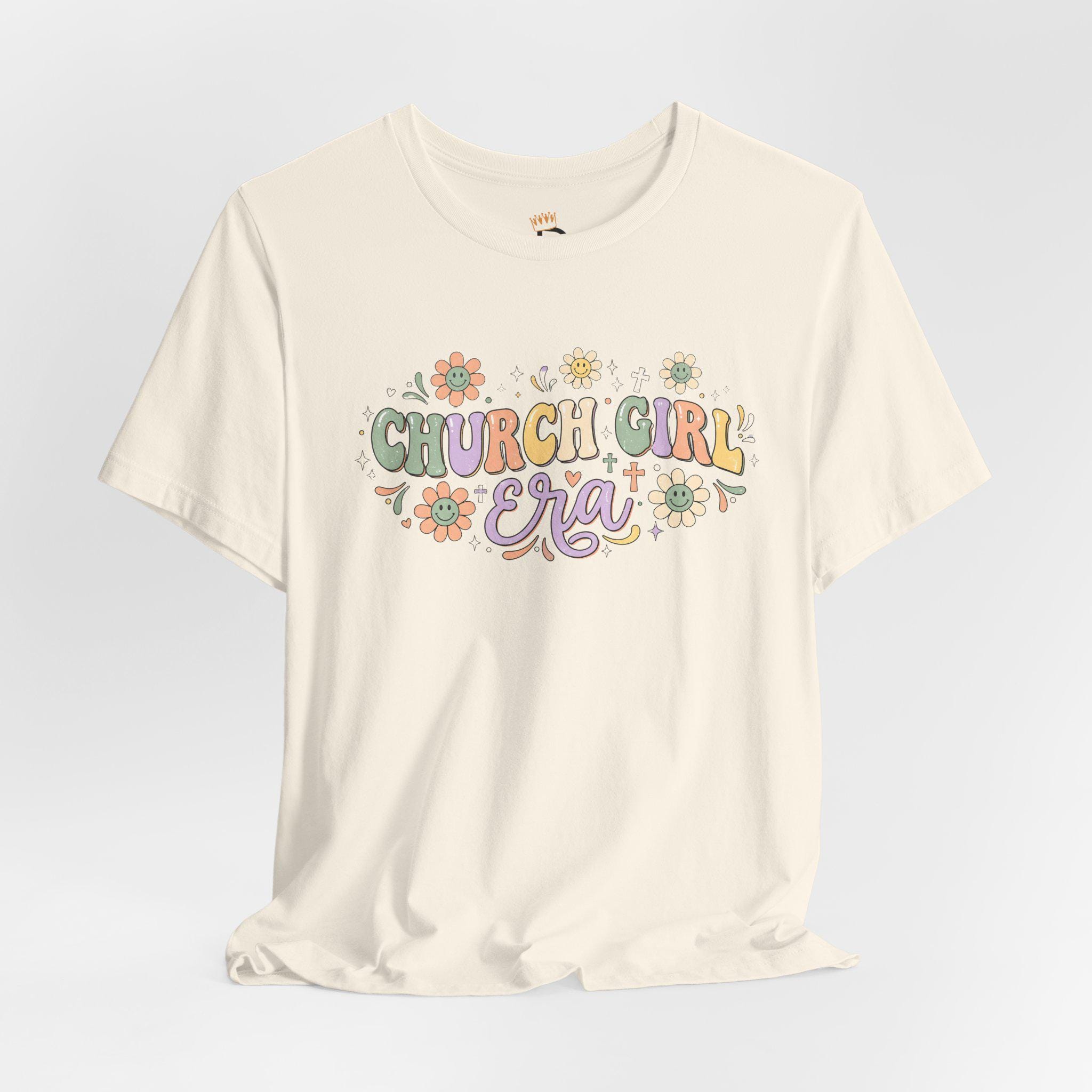 Embrace your faith with a touch of retro-inspired sunshine. Our "CHURCH GIRL Era" tee features a vibrant, groovy floral design paired with soft pastel tones, making it the perfect piece for women who love Jesus and a good aesthetic. Whether you're heading to service, brunch, or a Bible study, this shirt is your new Sunday staple.