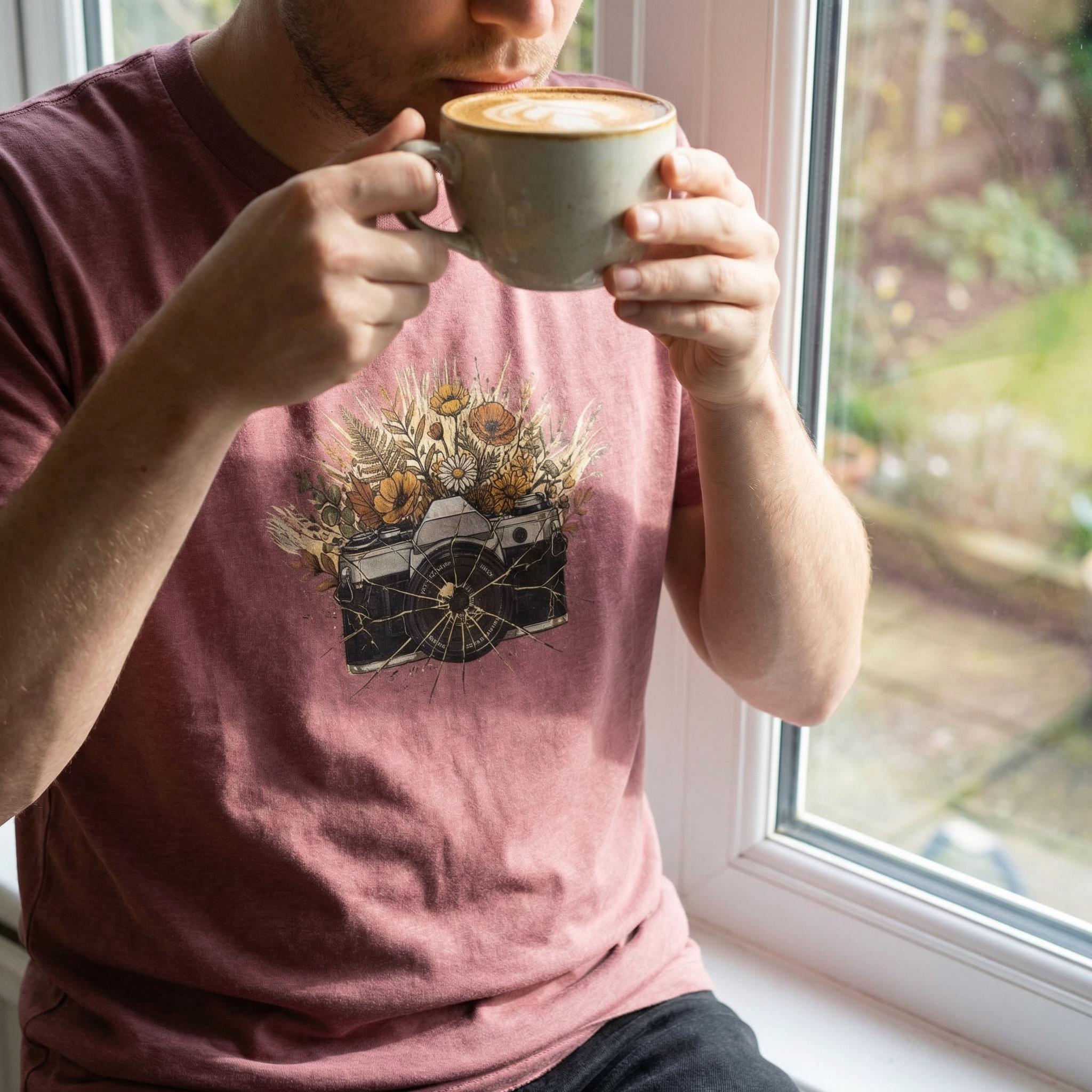 Celebrate the art of seeing beauty everywhere. Our "Bloom From Brokenness" tee features a detailed vintage film camera with a shattered lens, with a vibrant bouquet of wildflowers—including poppies and daisies—blooming from within. It’s a powerful metaphor for resilience and creativity, making it the perfect gift for the storyteller in your life.