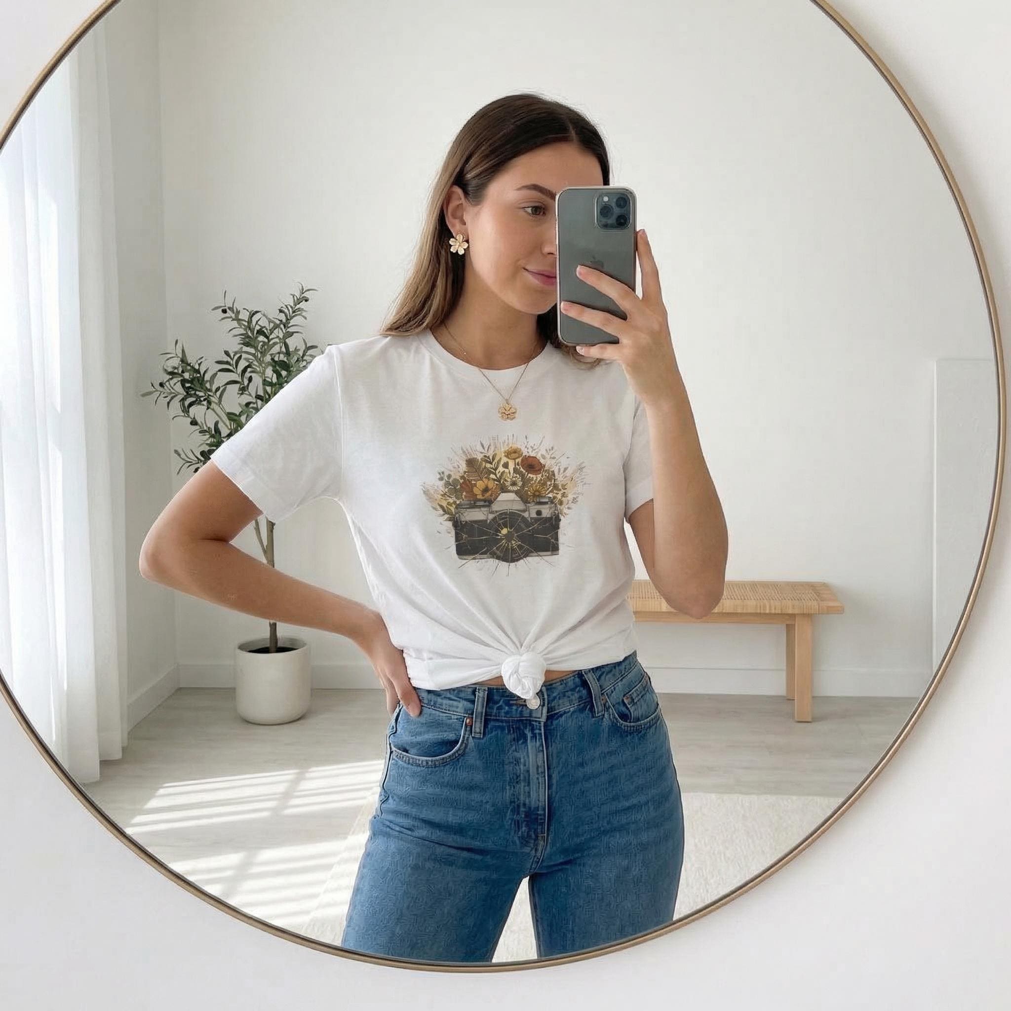 Vintage Camera Wildflower T-Shirt – Bella+Canvas 3001 Photographer Tee
