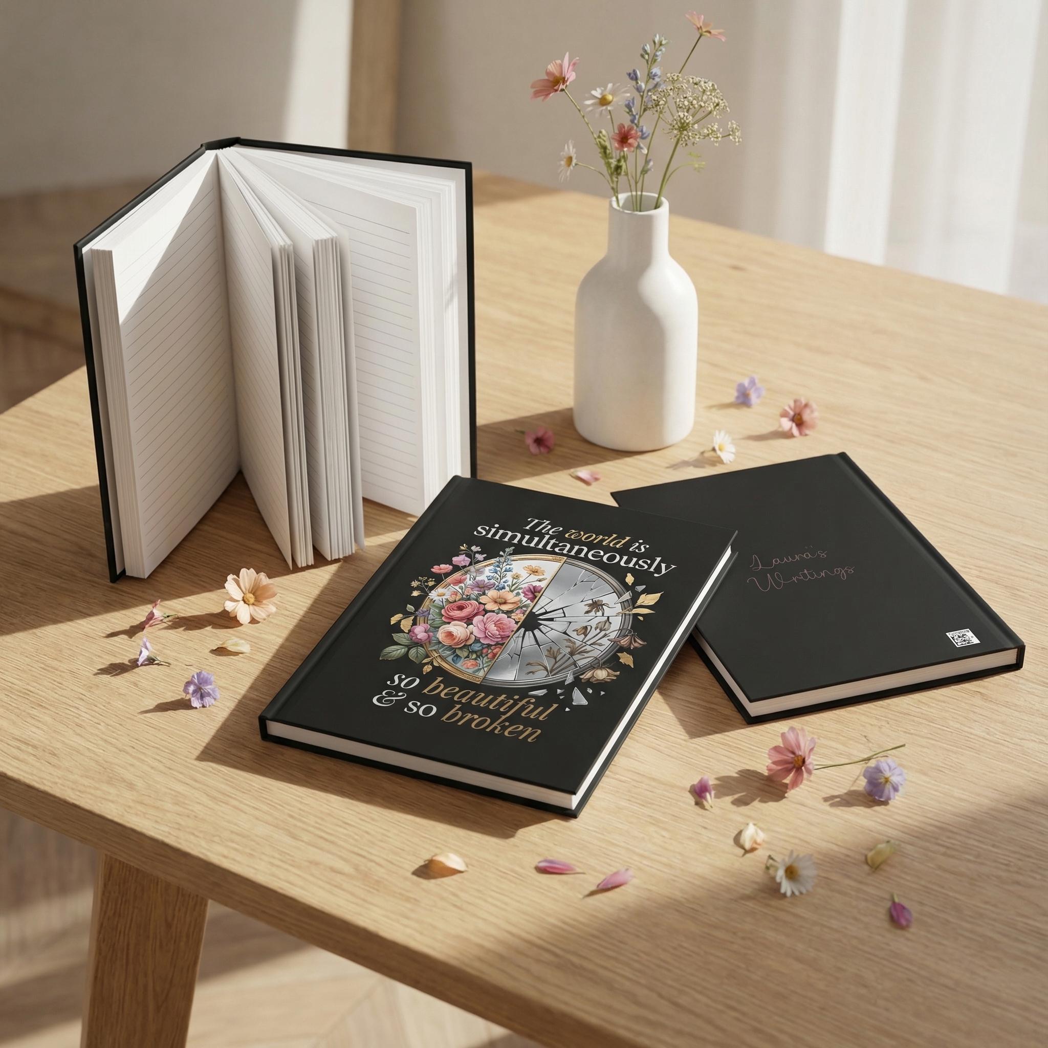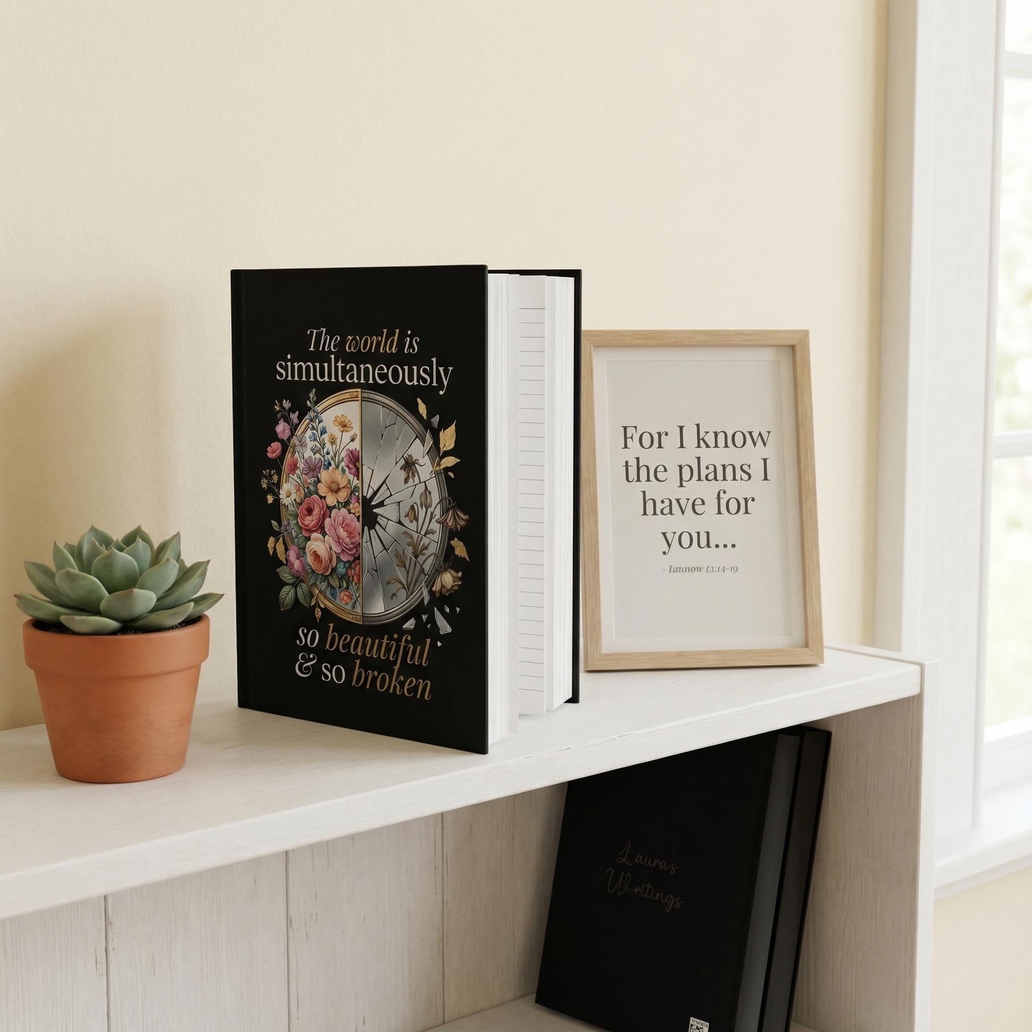 Celebrate the beauty and resilience of faith with our Beautiful and Broken Hardcover Prayer Journal. This personalized Christian notebook beautifully captures life's duality—delicate florals intertwined with shattered glass—reminding you of the strength found within life's broken moments. Perfect for prayer, reflection, grief journaling, or as a meaningful gift, this faith-based journal offers a heartfelt space to document your spiritual journey.