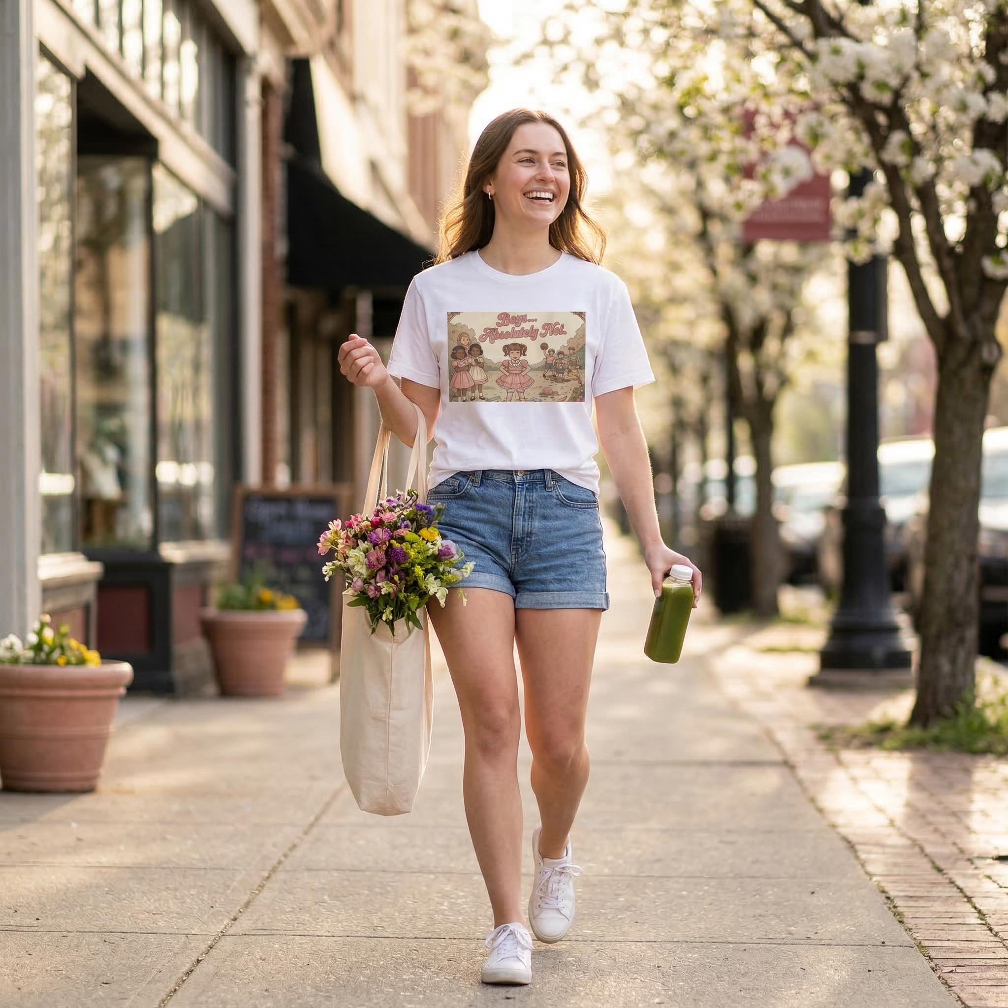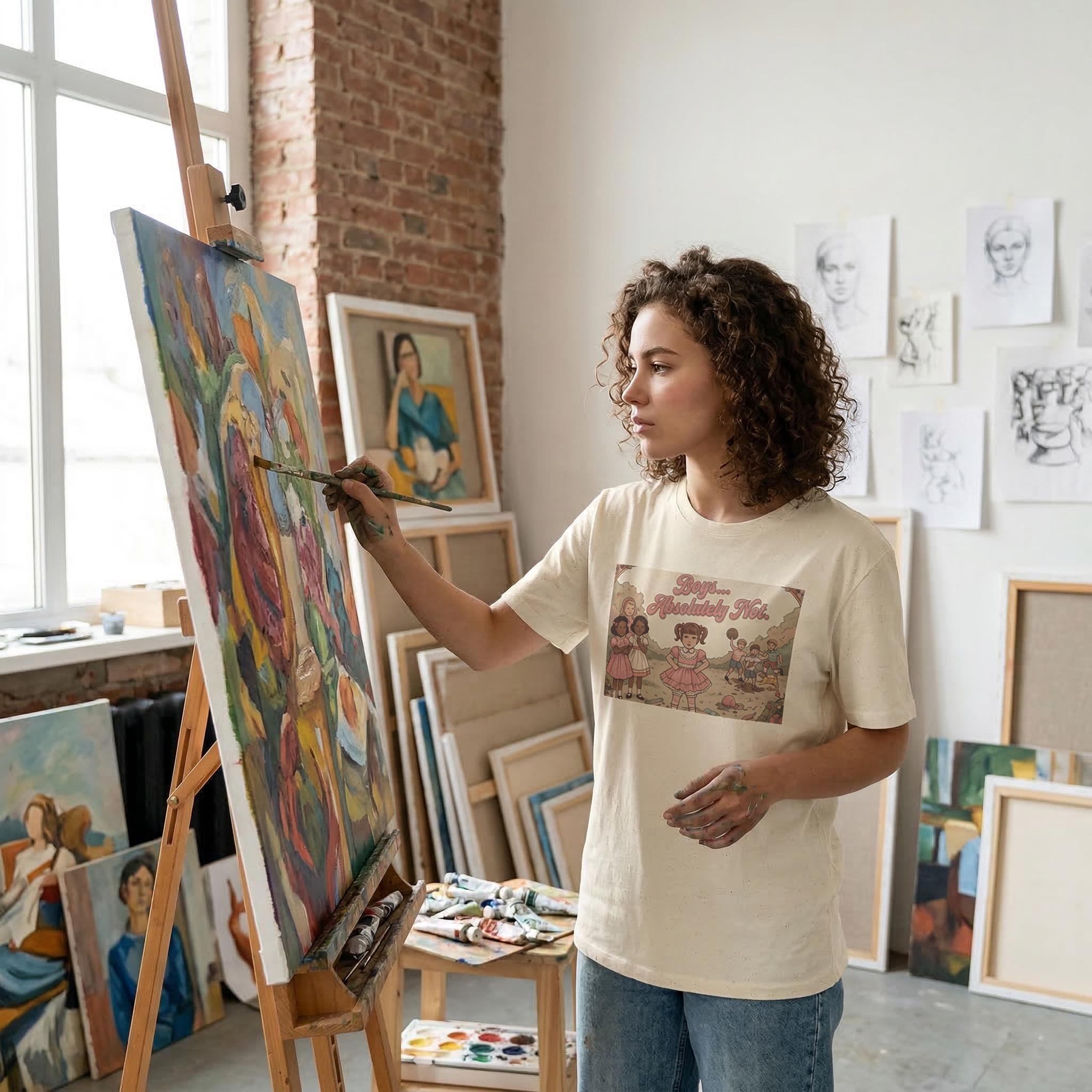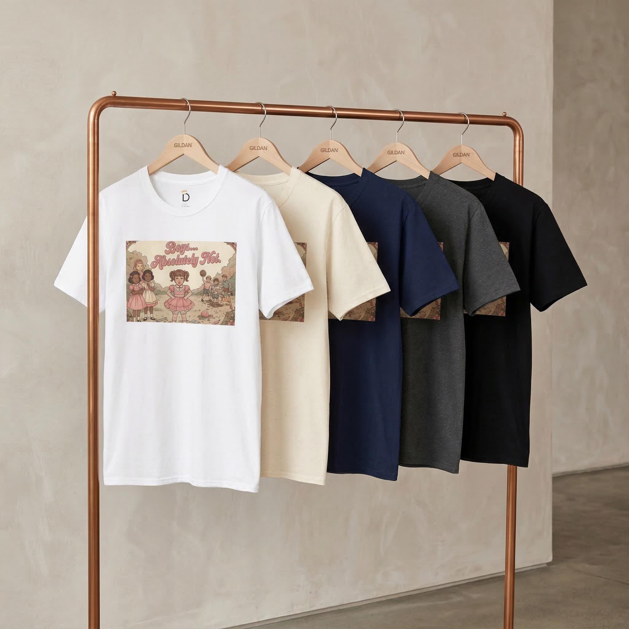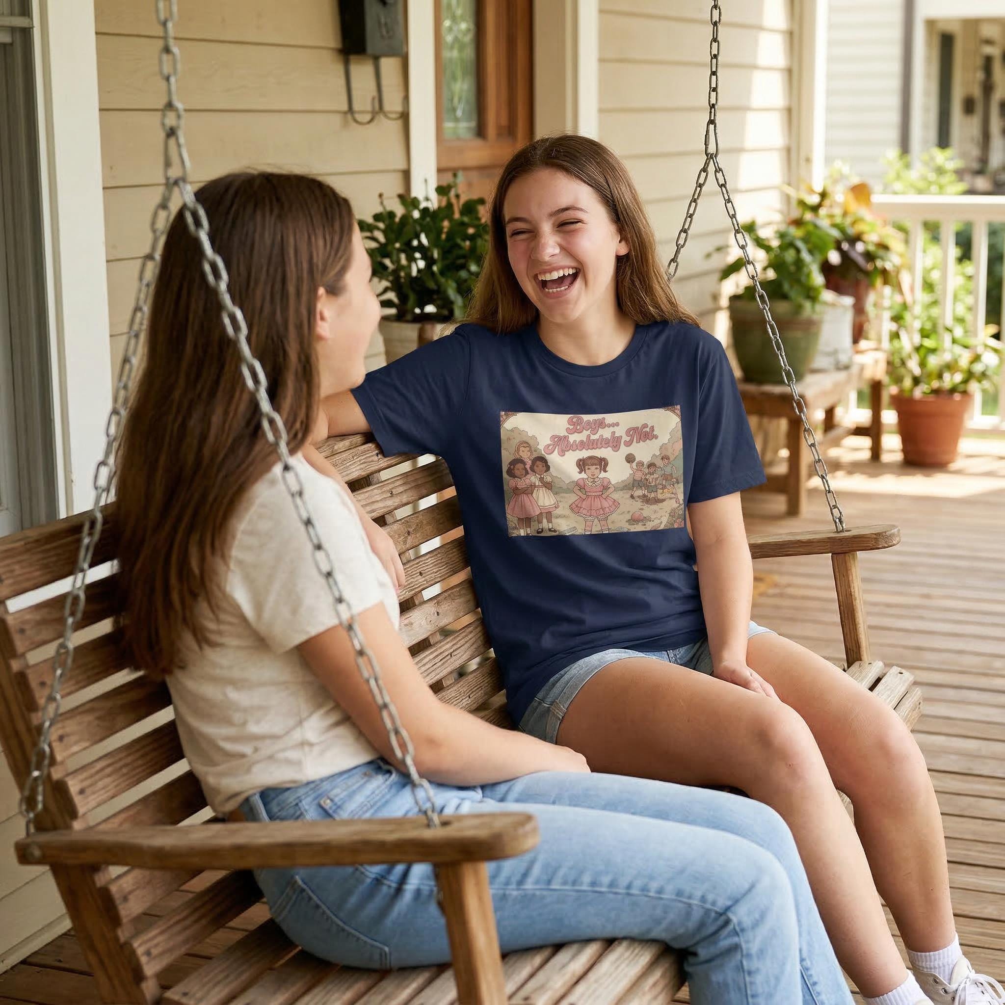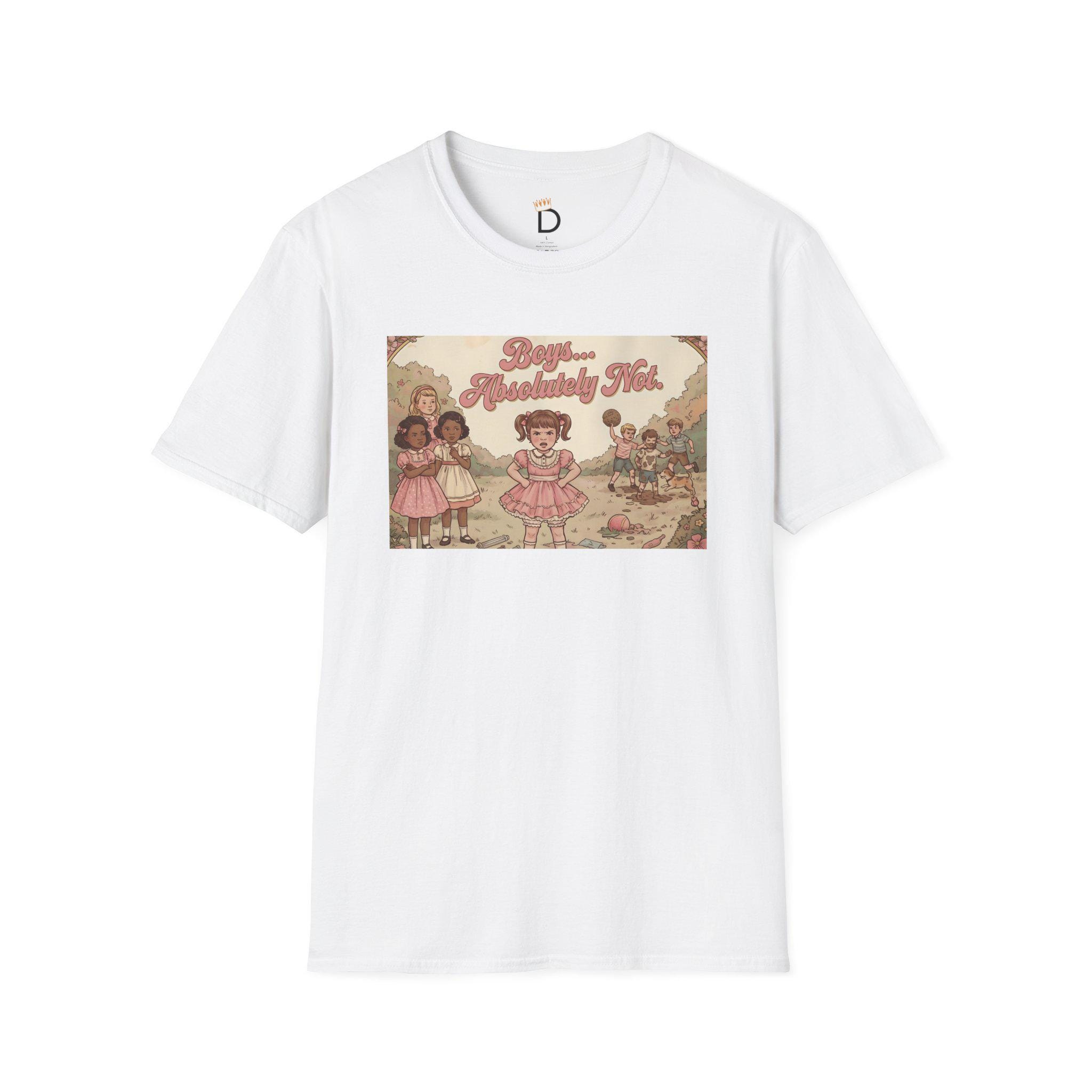 Bring a touch of vintage flair and a lot of attitude to your wardrobe. Our "Boys... Absolutely Not." tee features a beautifully detailed, mid-century inspired illustration of girls reclaiming their space in the park while the boys cause chaos in the background. It’s the perfect blend of nostalgia and empowerment for anyone who knows exactly where they stand.