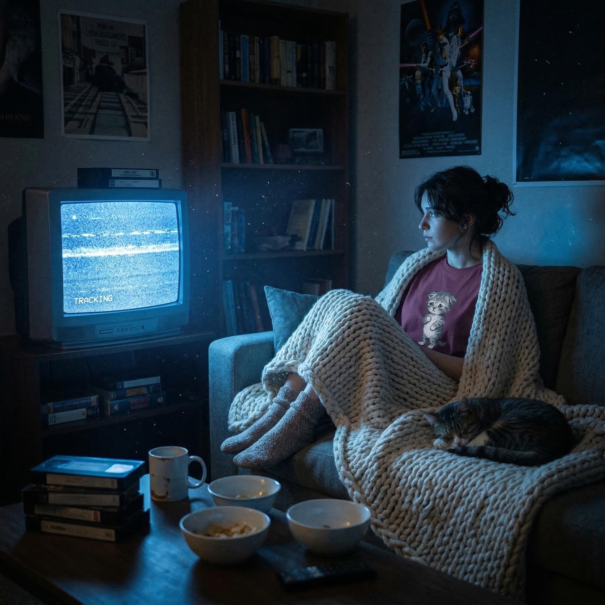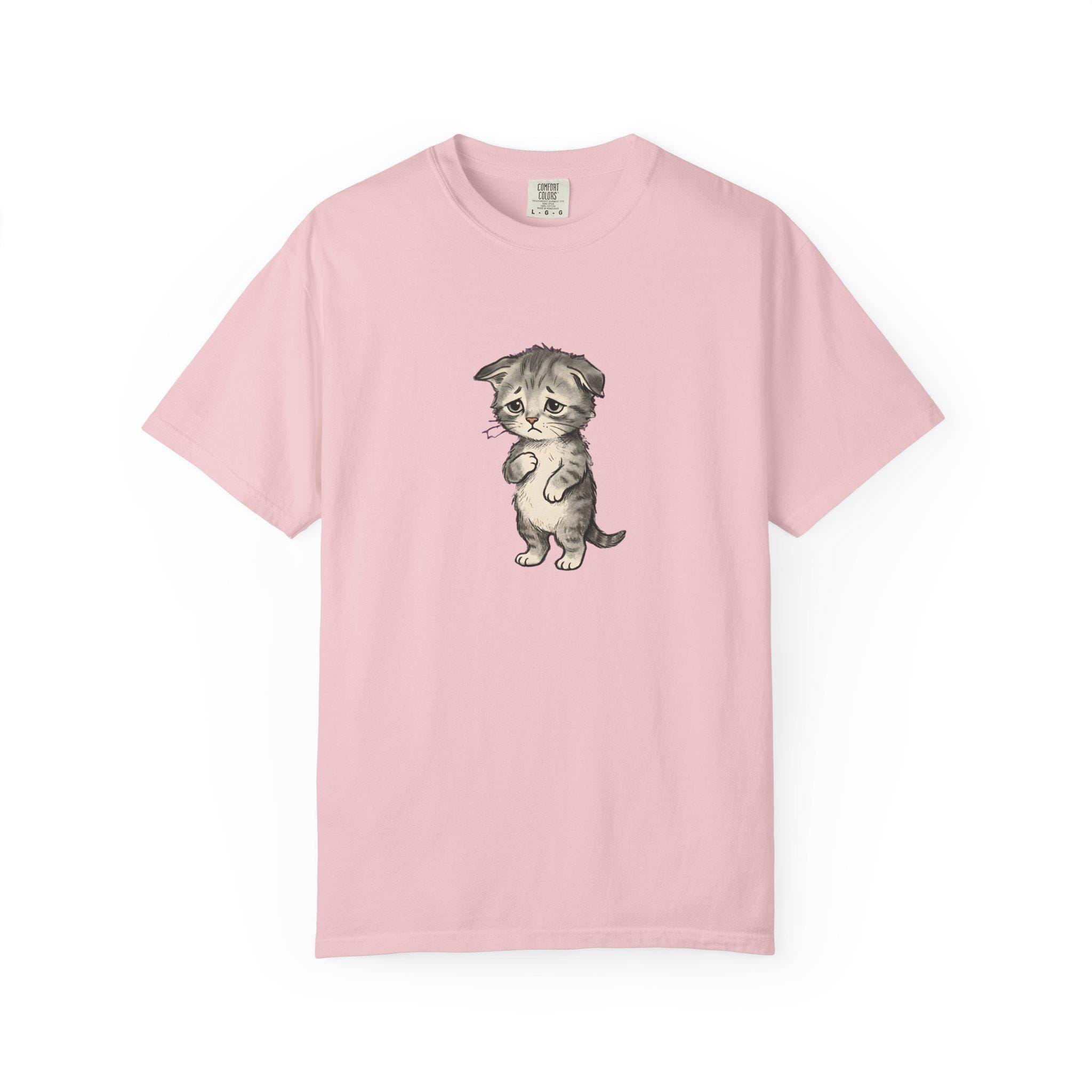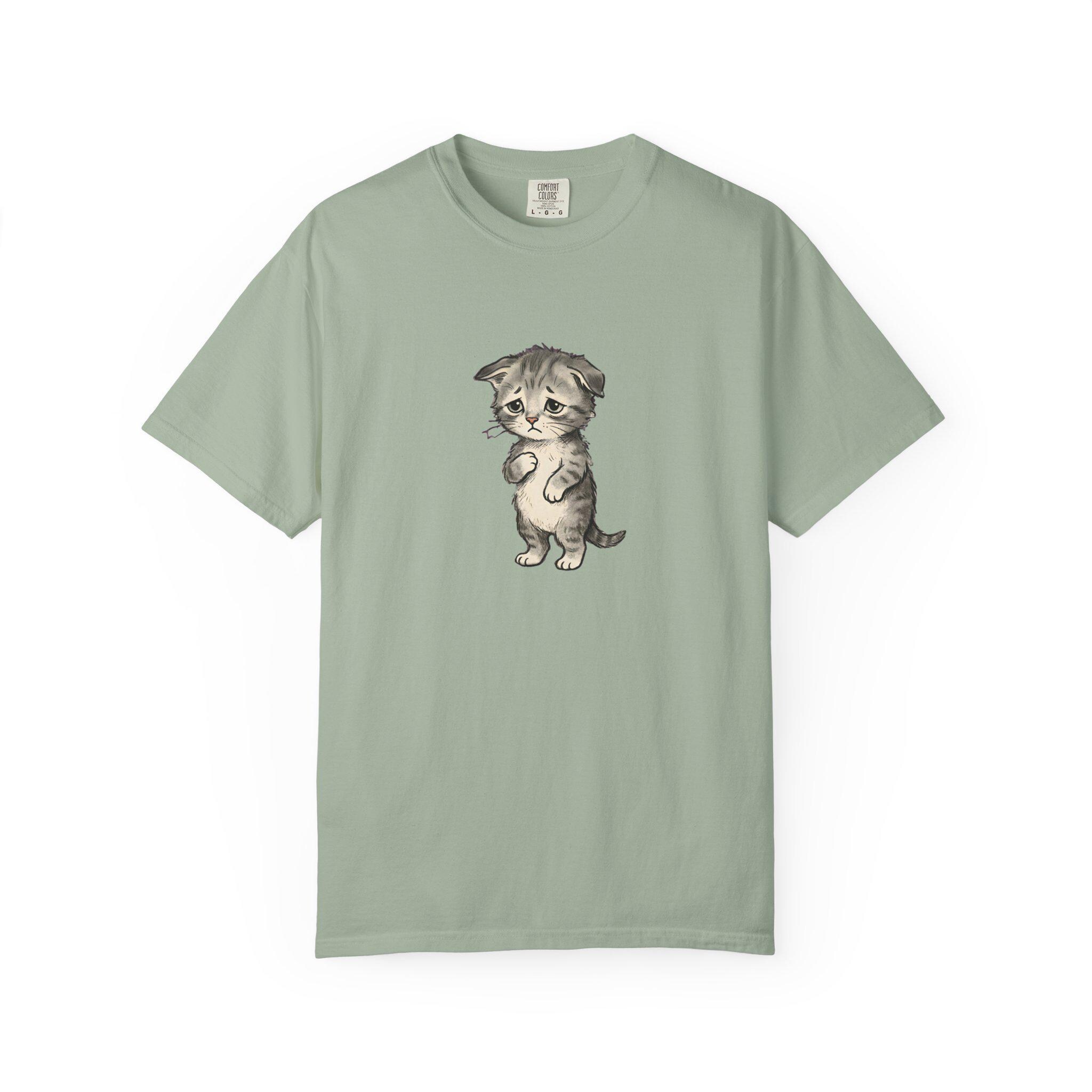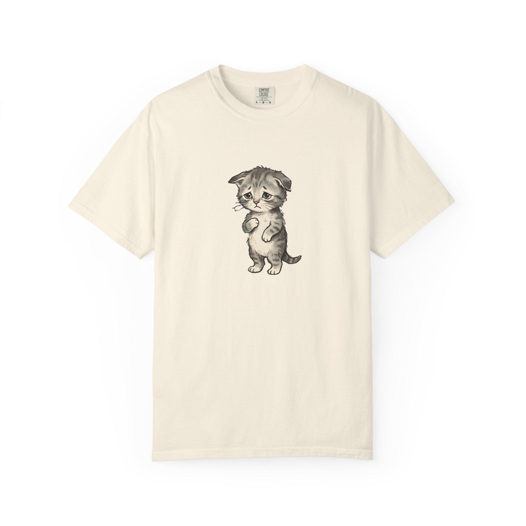 Sad Kitten Meme T-Shirt Vintage Watercolor Cat Illustration, Garment-Dyed Cotton Tee