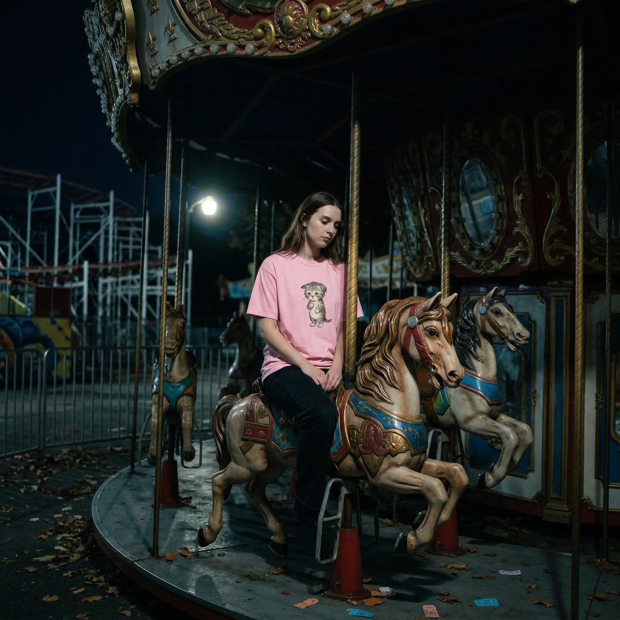 Blossom: A soft, romantic pink that contrasts the kitten's pouting mood.