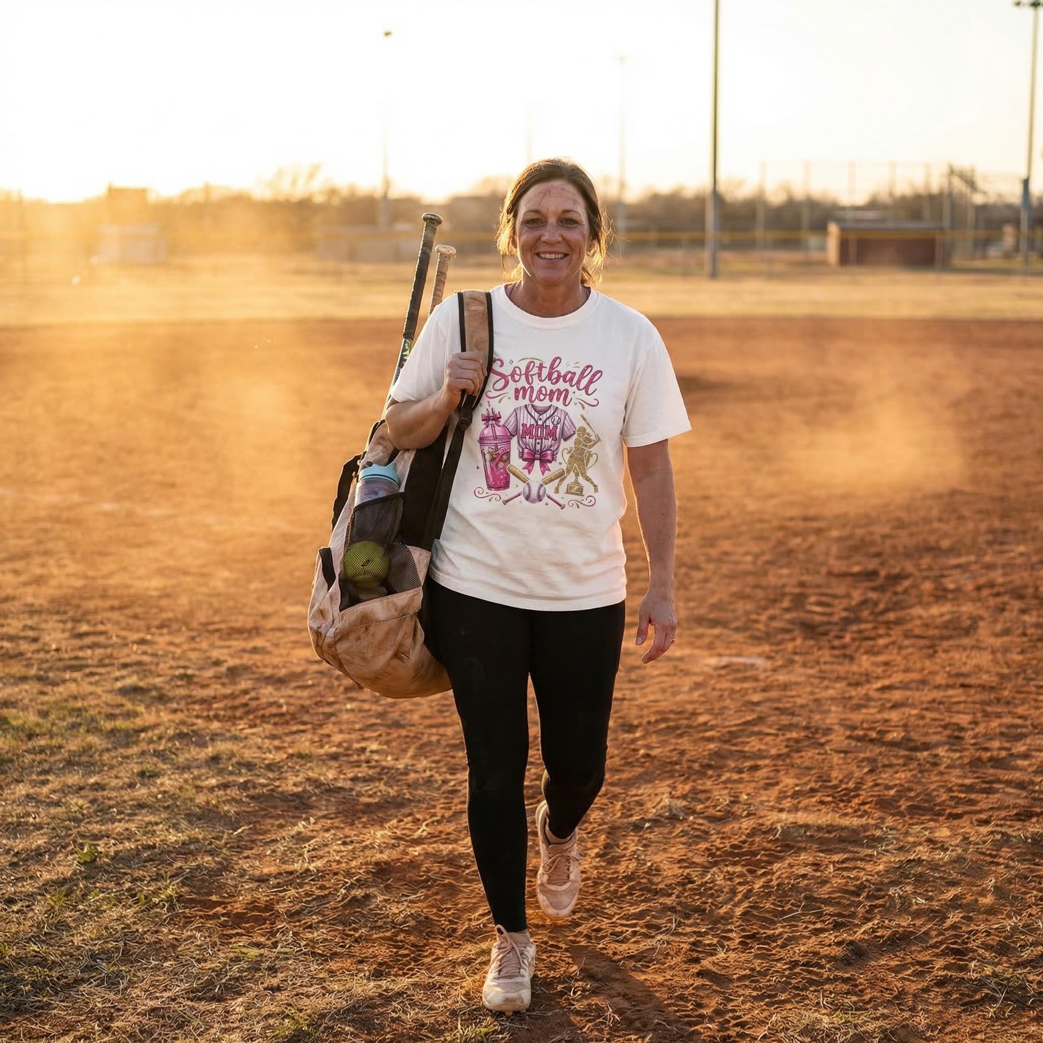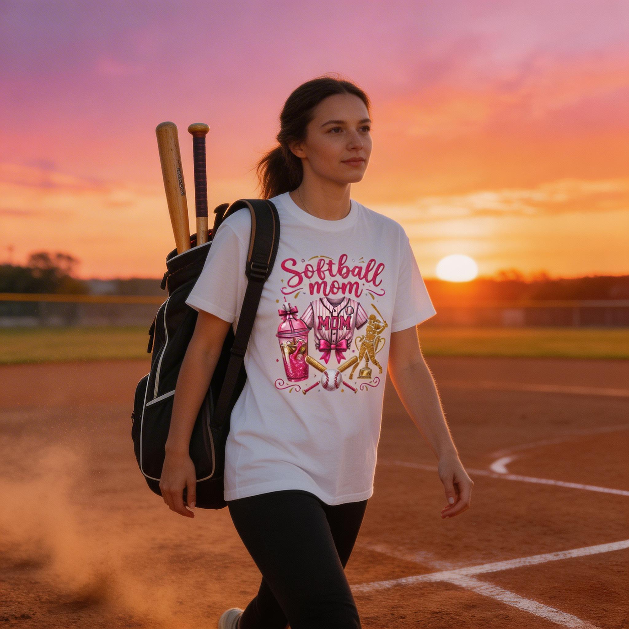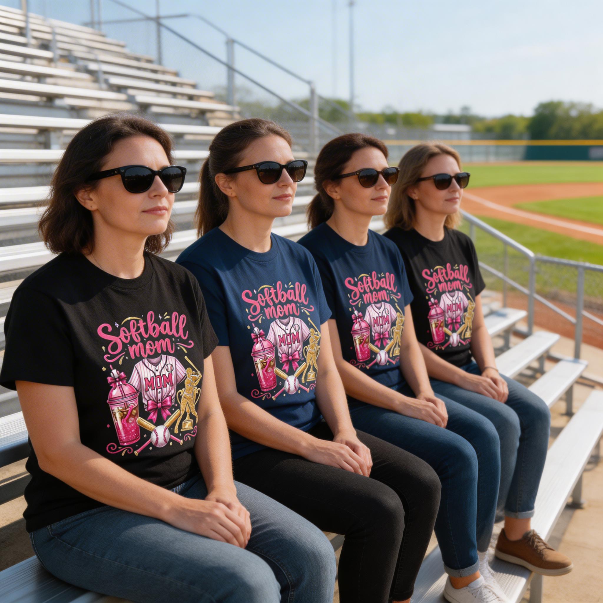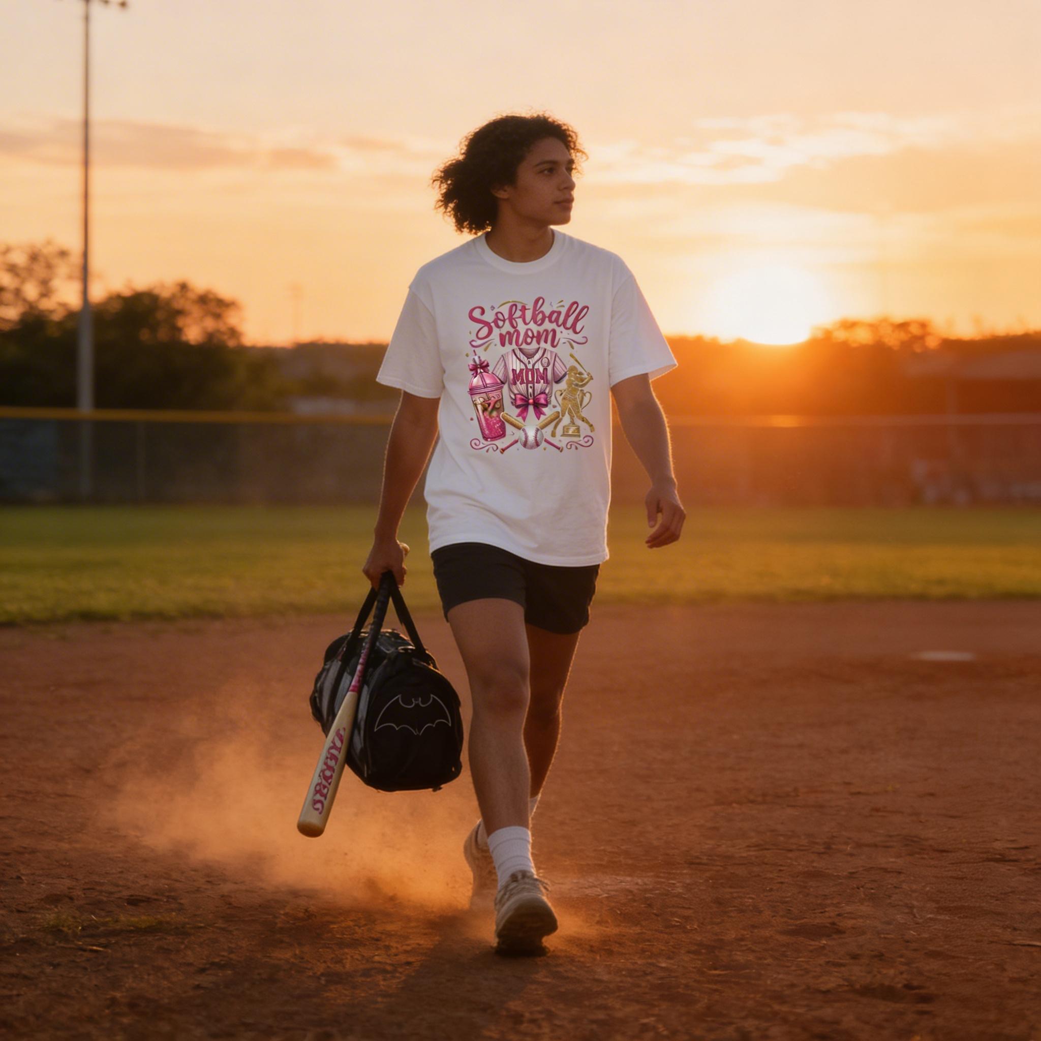 Elevate your bleacher style with our "Sparkle Softball Mom" tee. Designed for the mom who brings the energy to every inning, this shirt features vibrant, glitter-textured icons including a game-ready tumbler, pinstripe jersey, and victory trophy. Whether you're at a weekend tournament or a weeknight practice, this tee keeps you comfortable and stylish.
