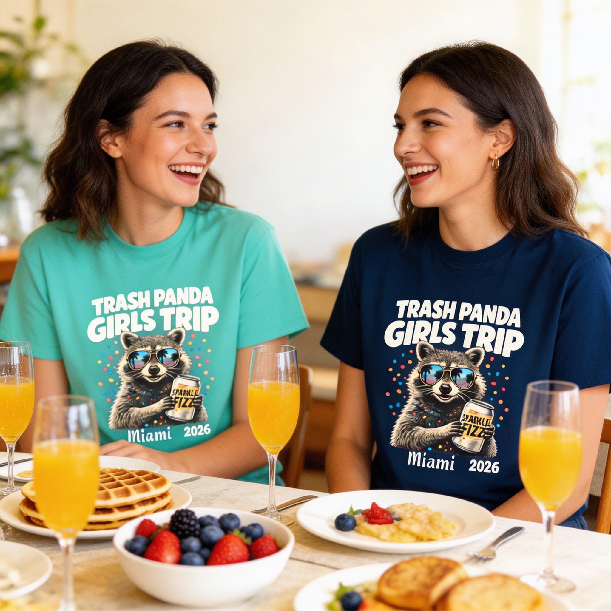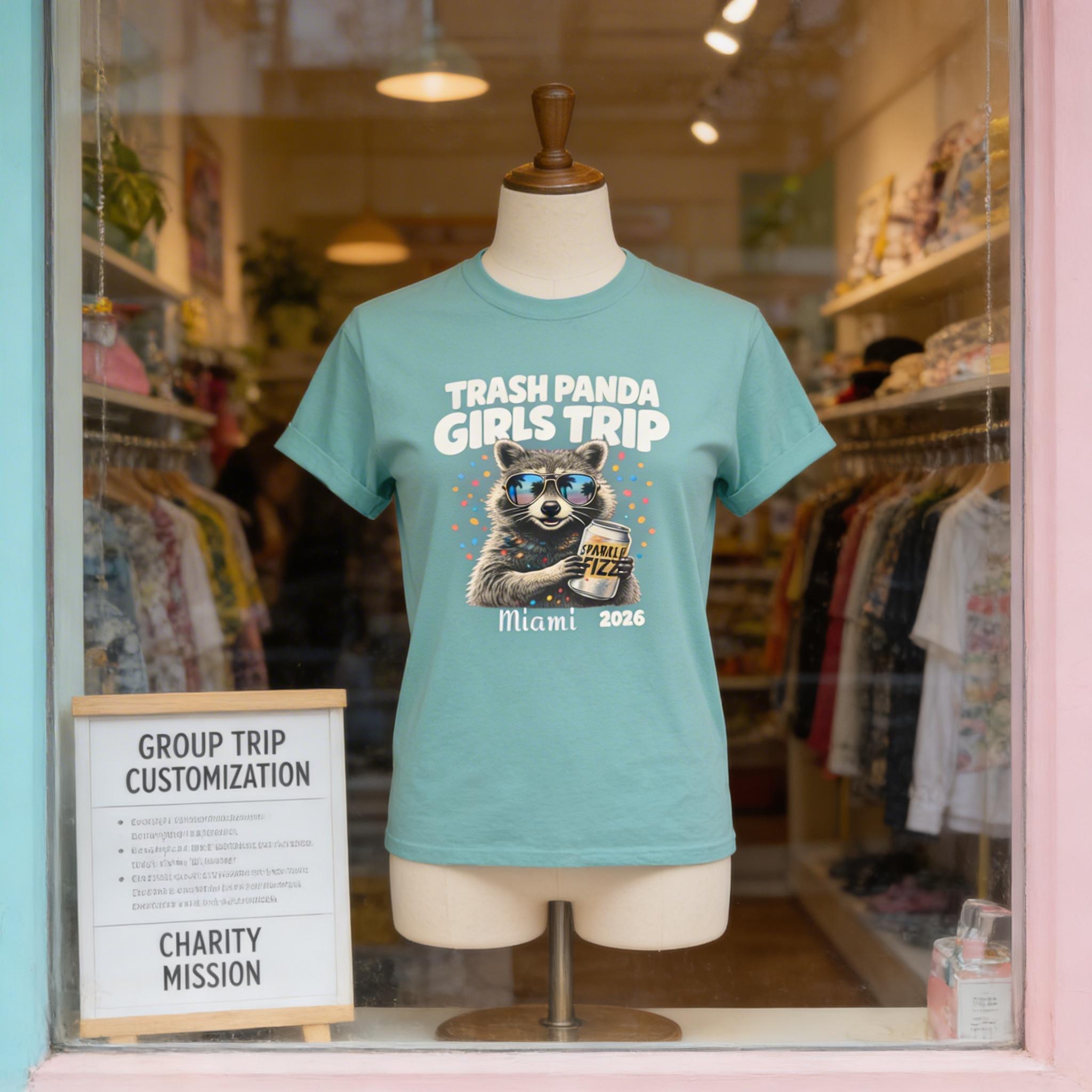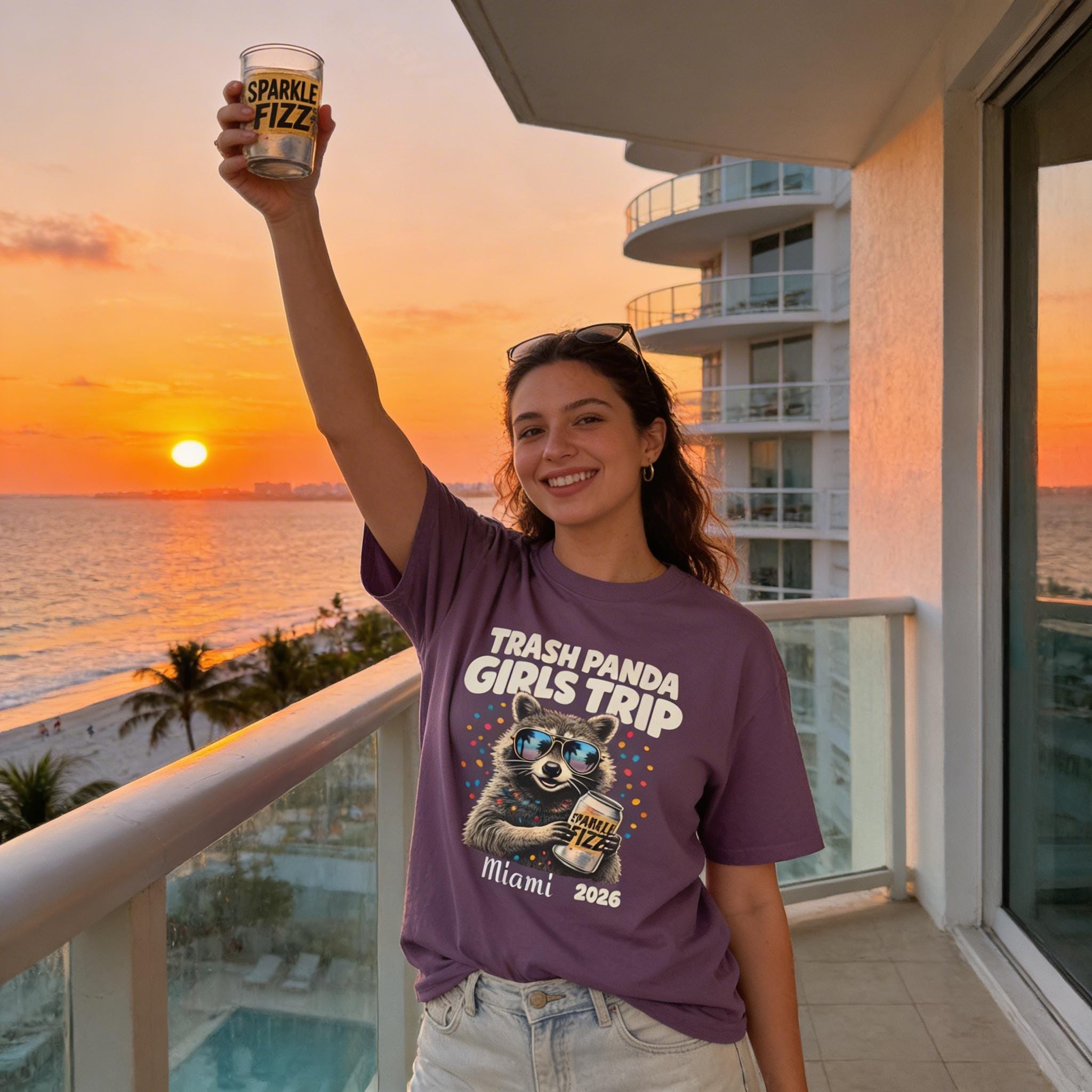 Whether you’re hitting the beaches of Miami or the mountain trails, do it with the ultimate group uniform. Our "Trash Panda Girls Trip" tee features a vibe-heavy raccoon ready for a Sparkle Fizz and a good time. It’s the perfect blend of high-quality comfort and "I have no idea what's going on" energy.