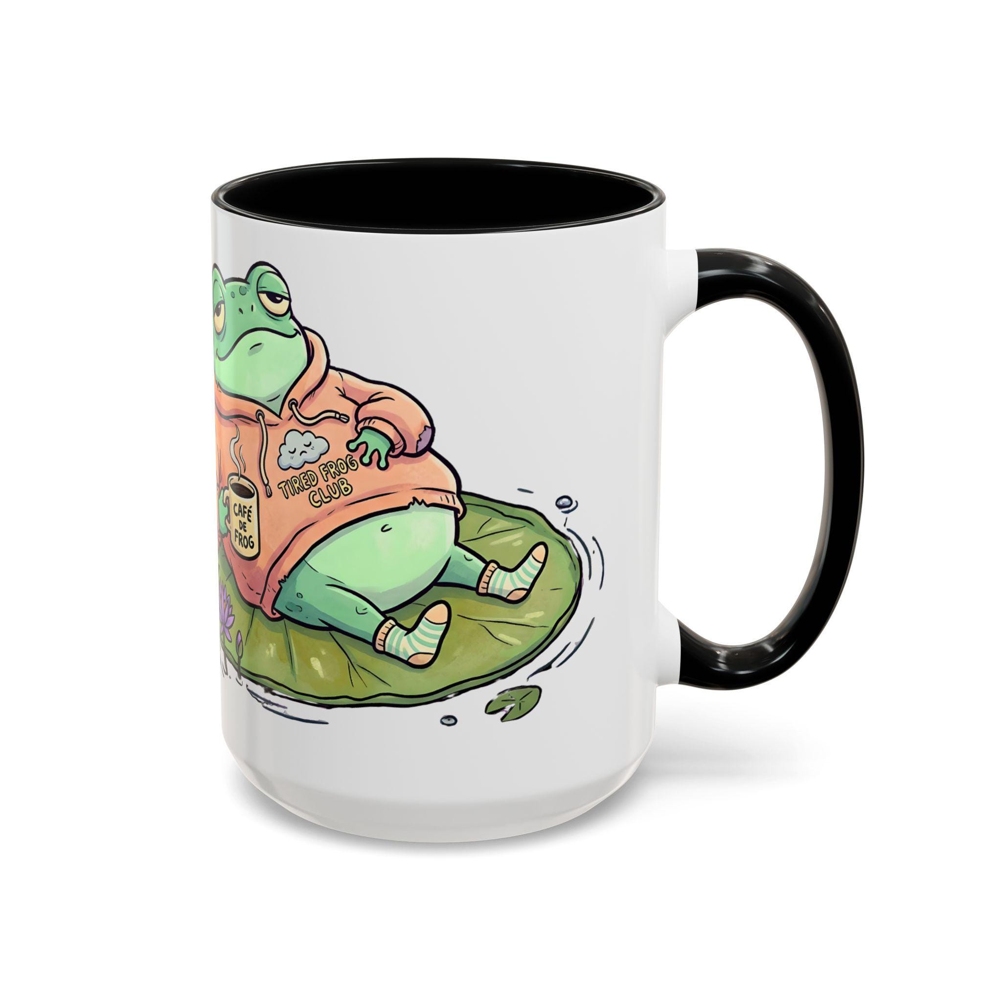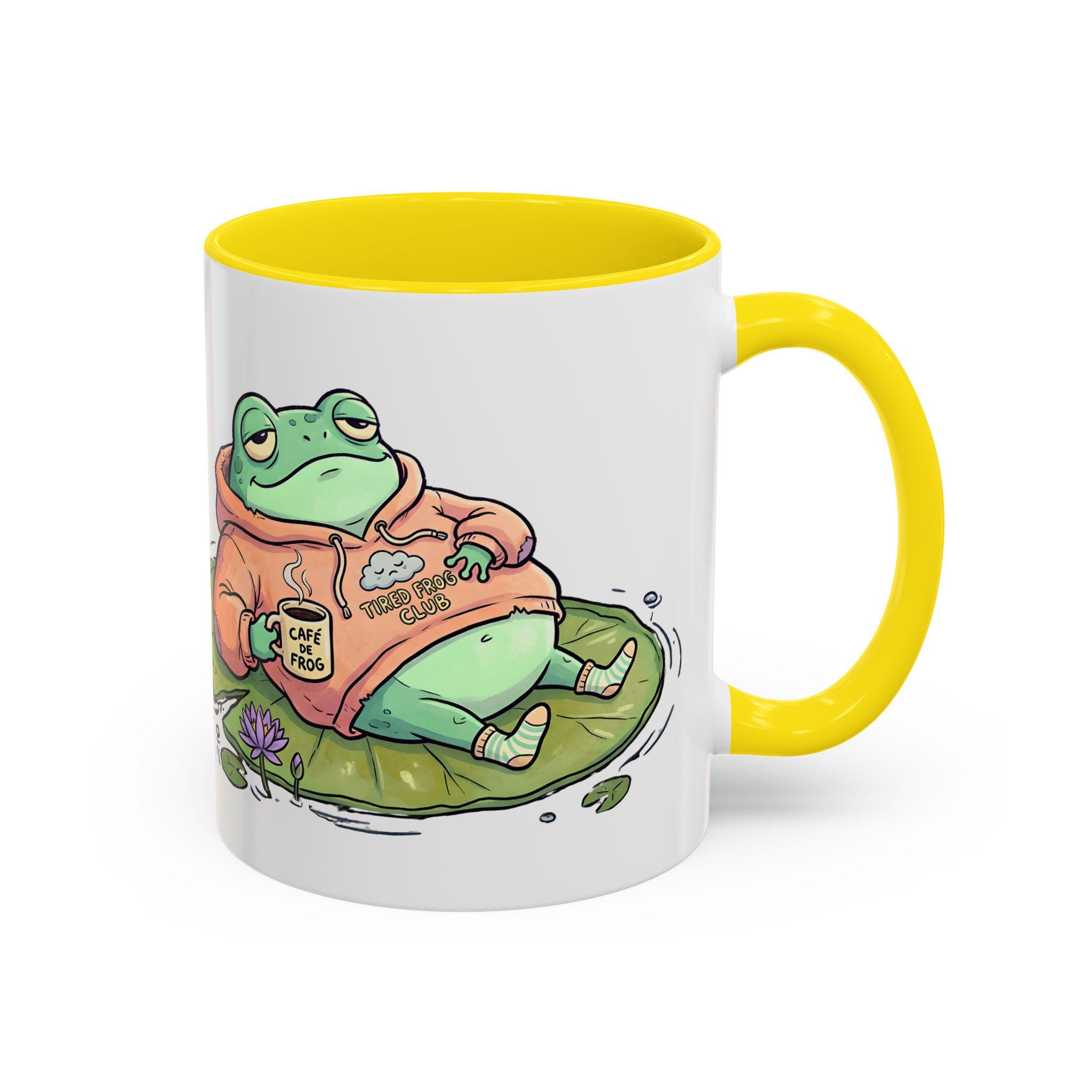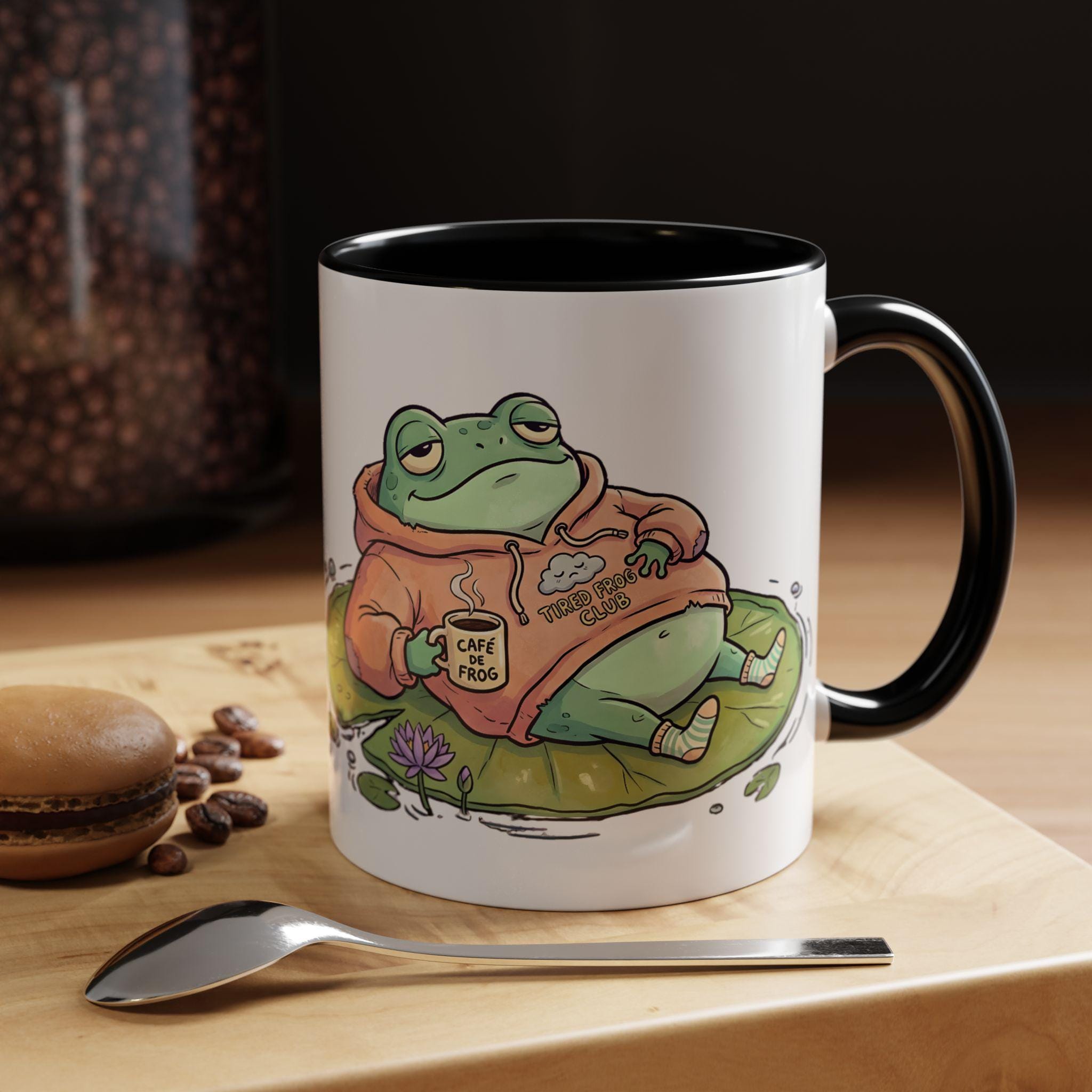 Personalized Tired Frog Club Mug Custom Name Sleepy Frog Hoodie Cup 11oz or 15oz Ceramic 9 Accent Colors