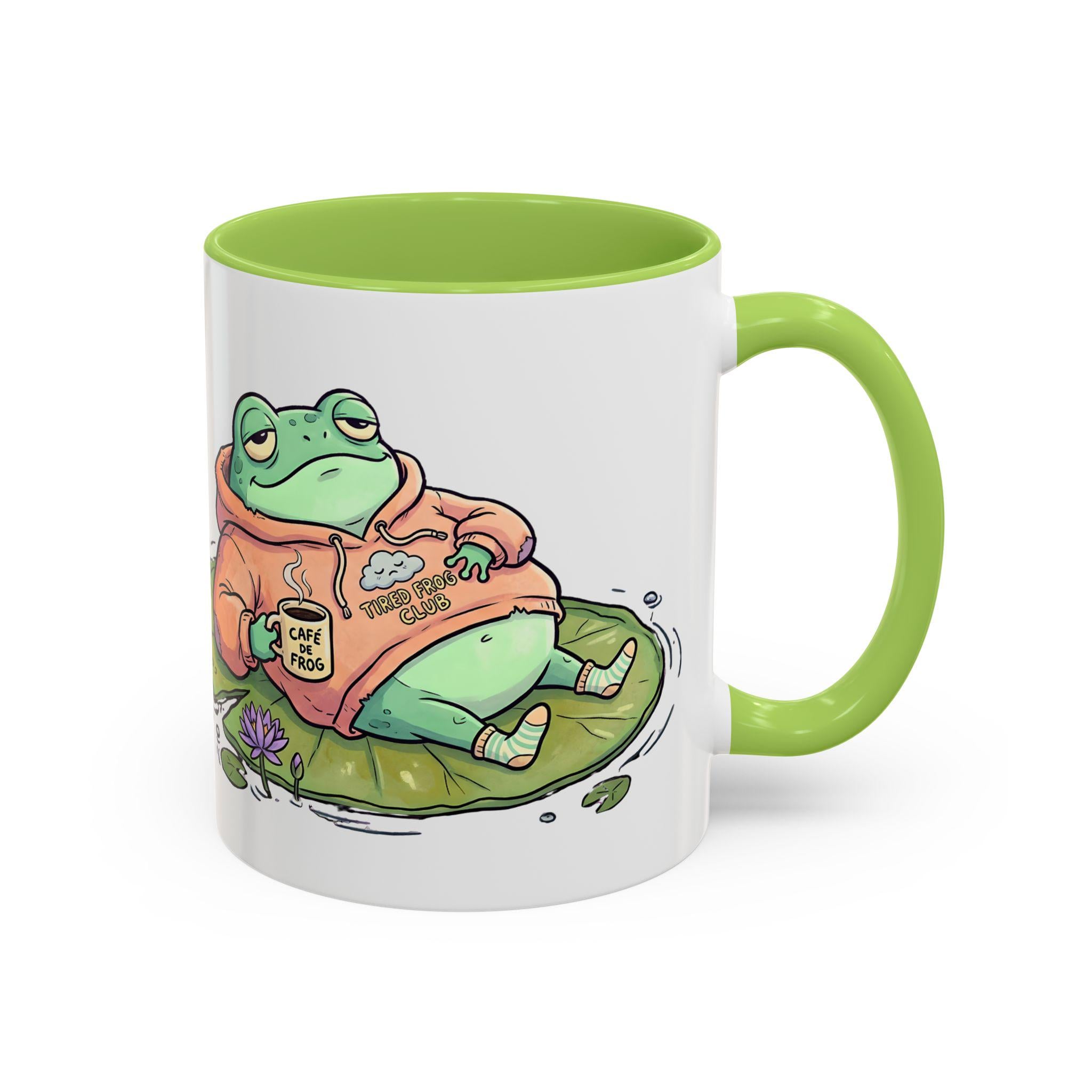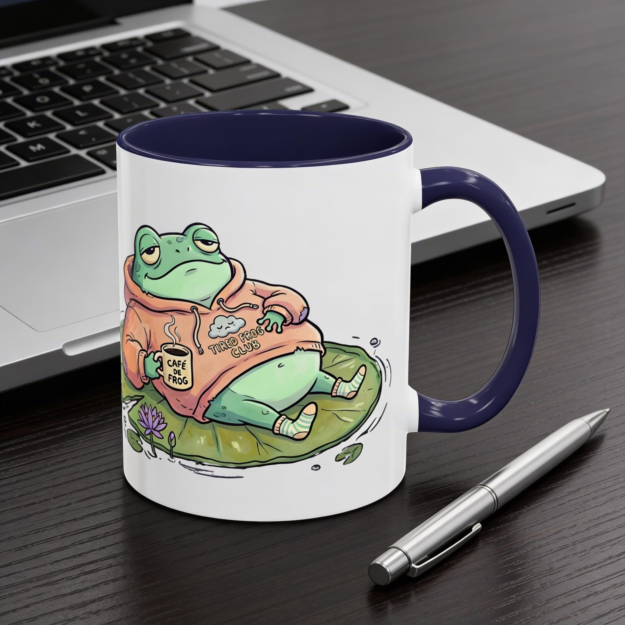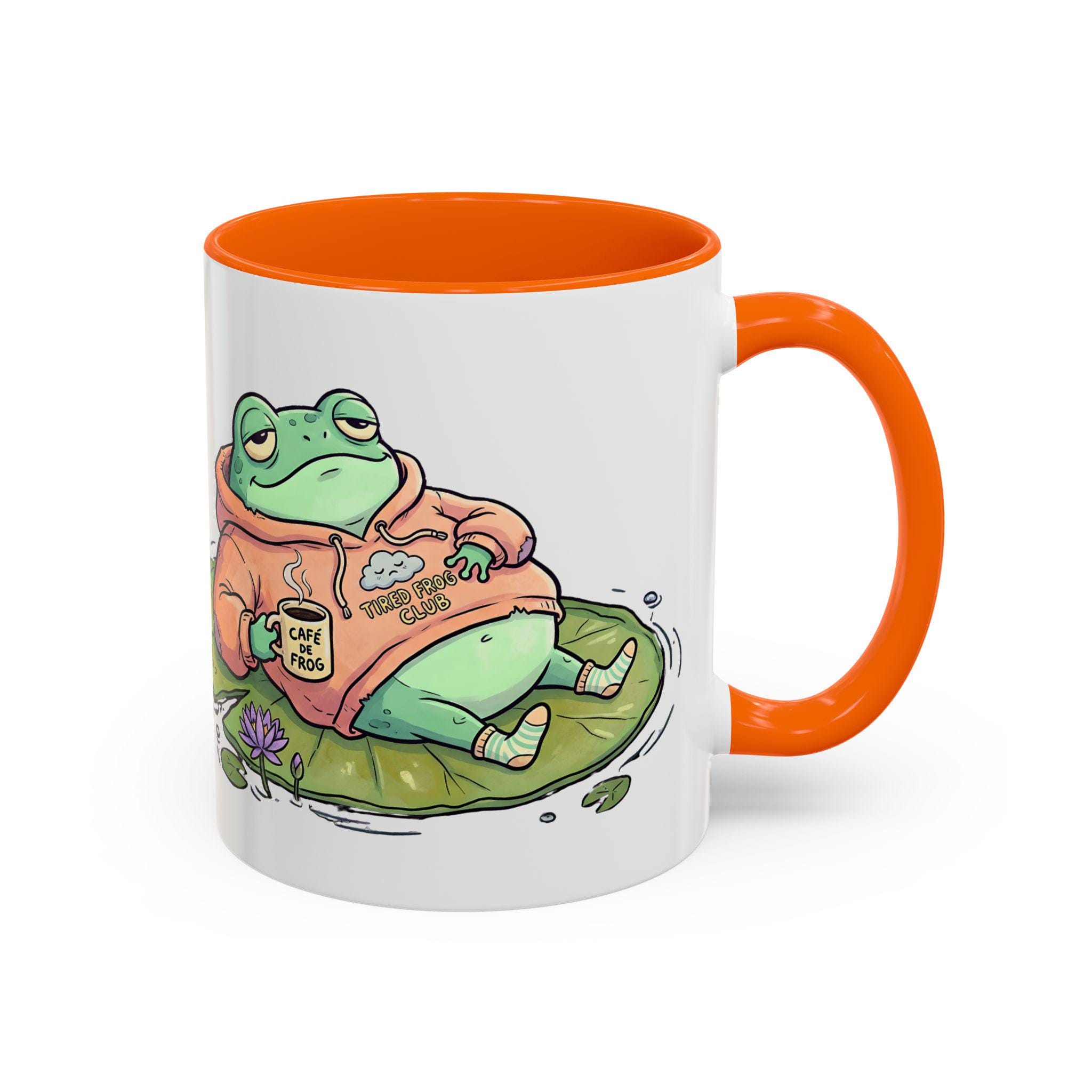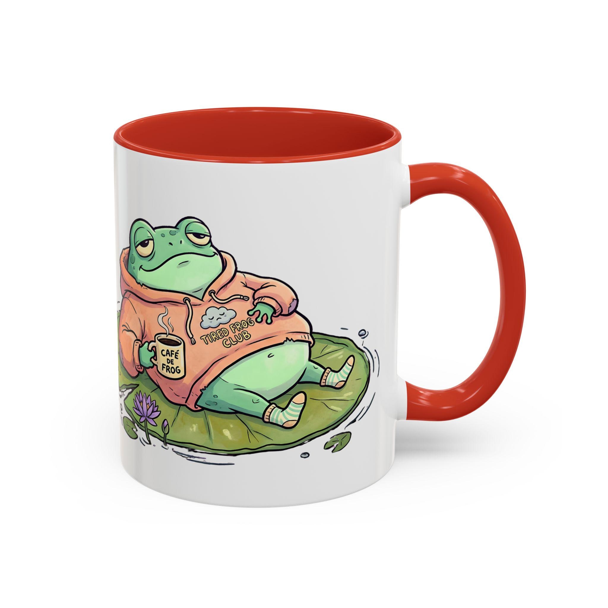 Personalized Tired Frog Club Mug Custom Name Sleepy Frog Hoodie Cup 11oz or 15oz Ceramic 9 Accent Colors