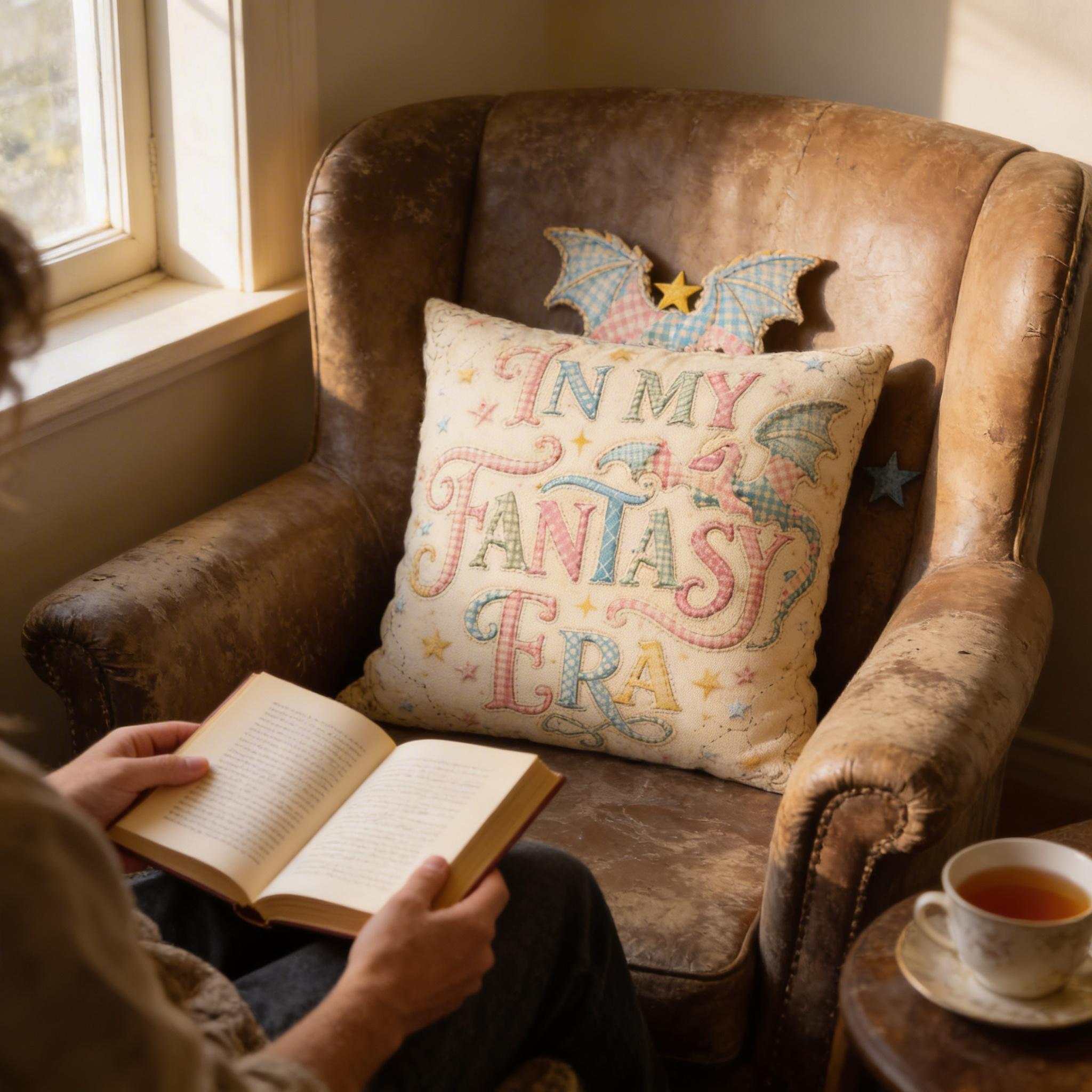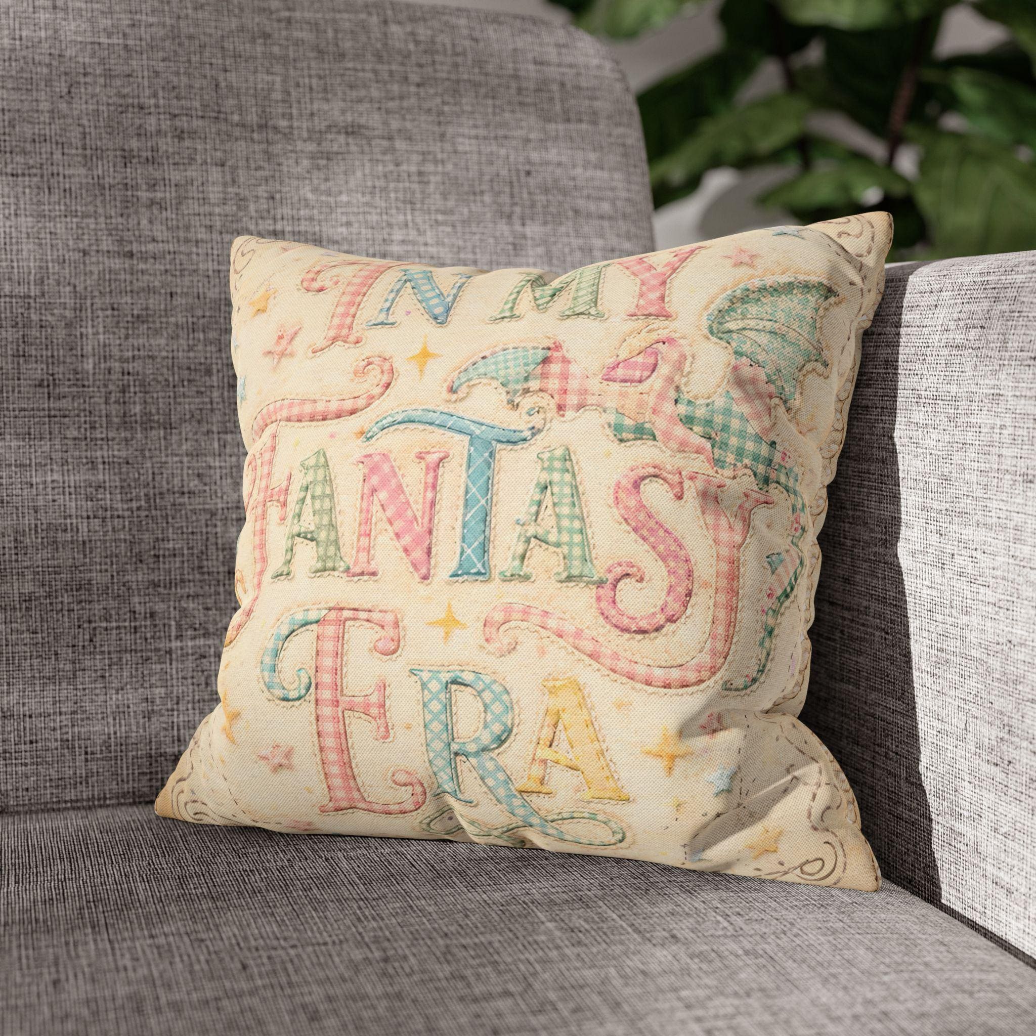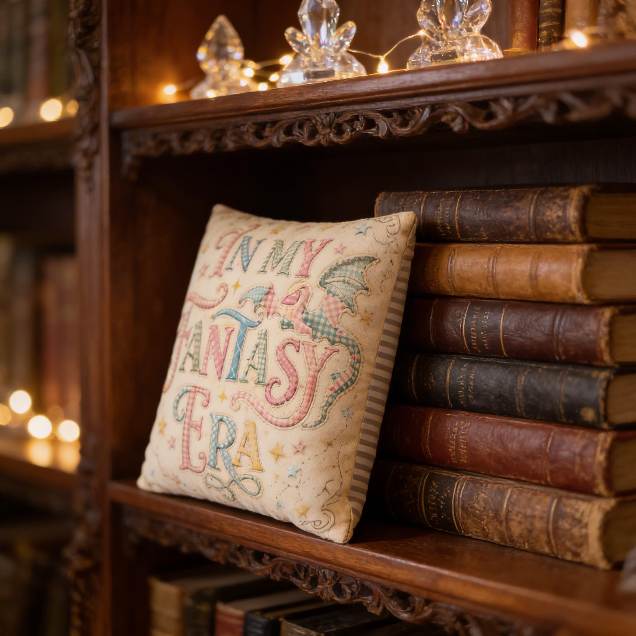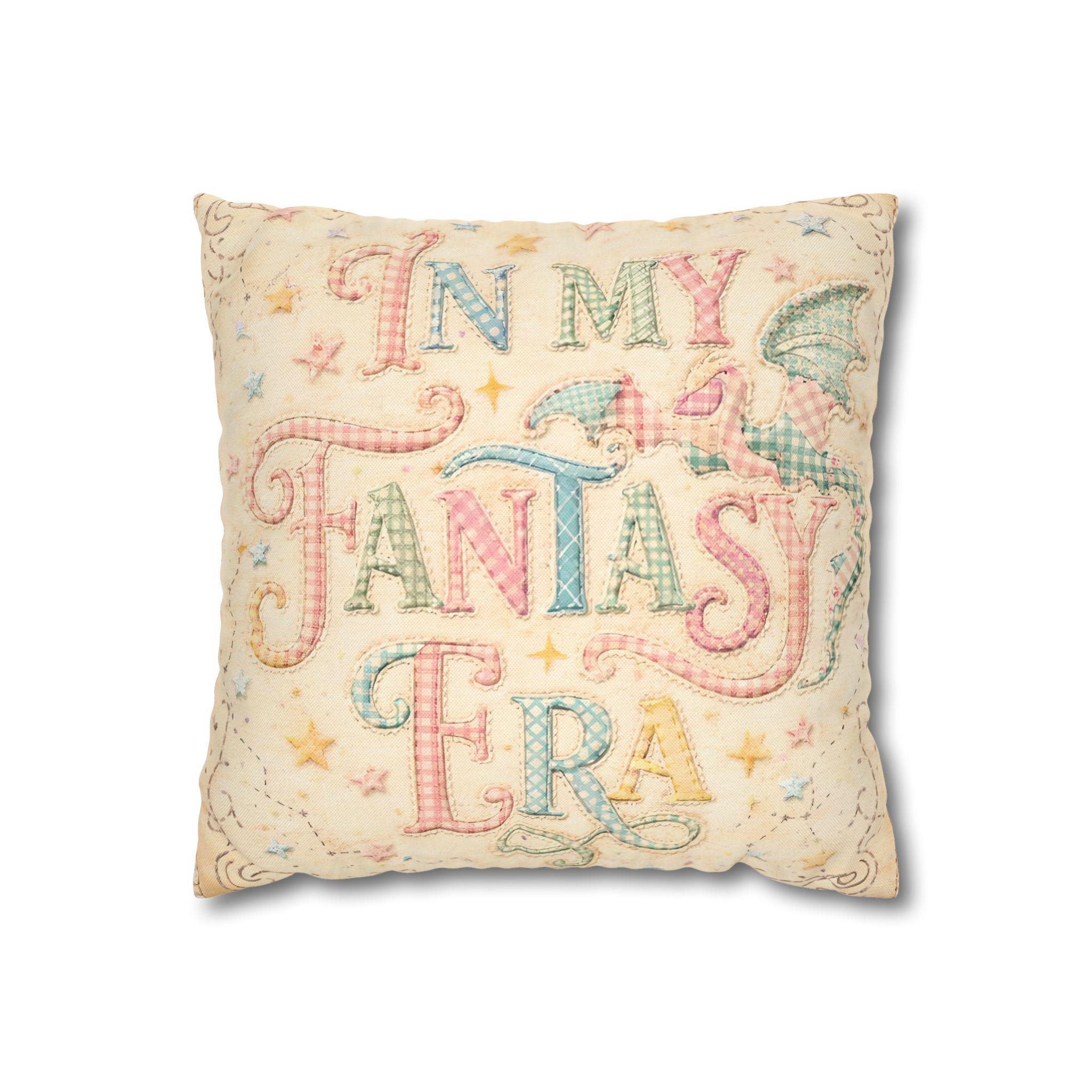 In My Fantasy Era Pillow Case, Whimsical Dragon Decor Bookish Gift for Fantasy Lovers, Cottagecore Bedroom 14x14 Square Pillowcase