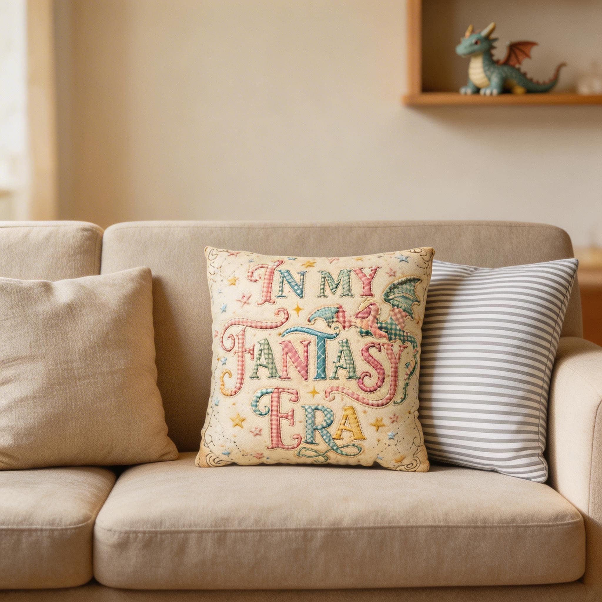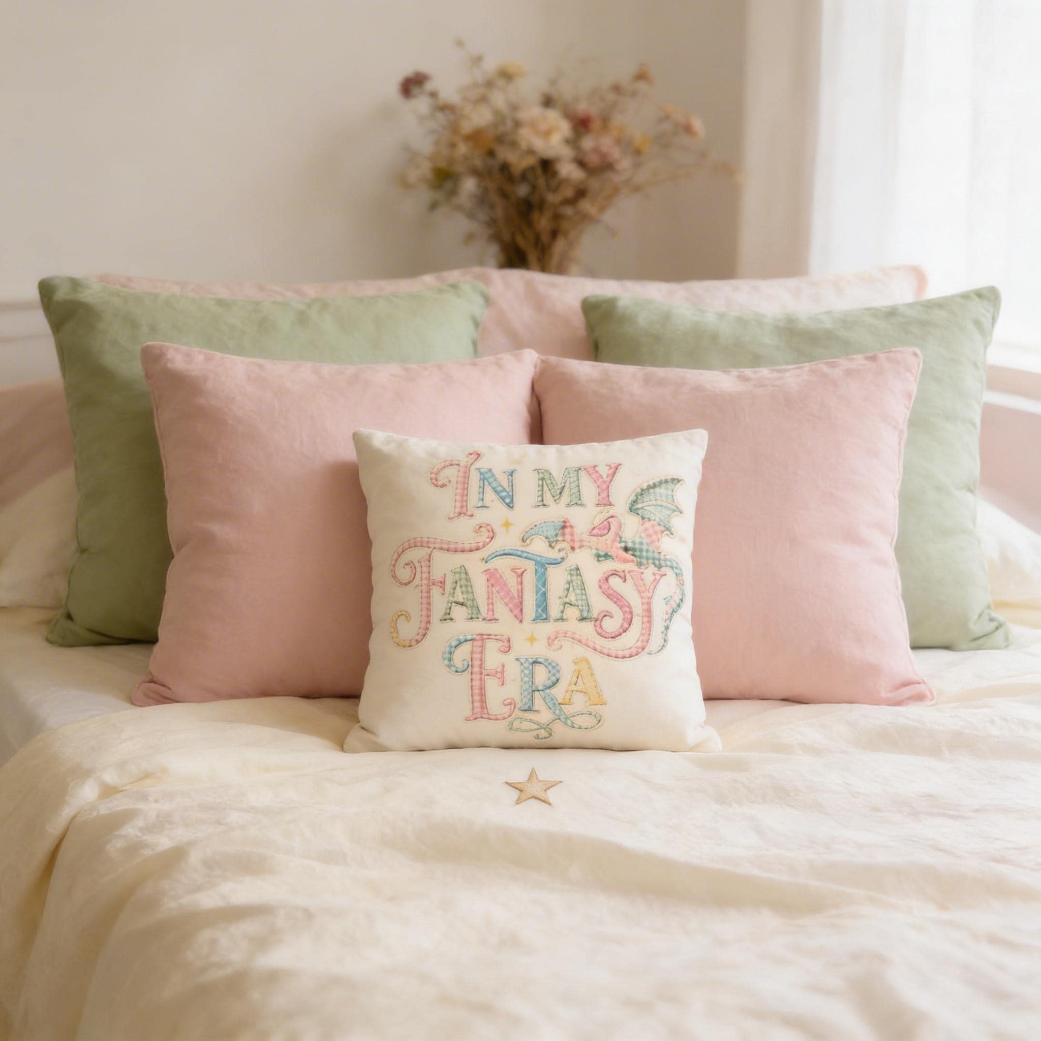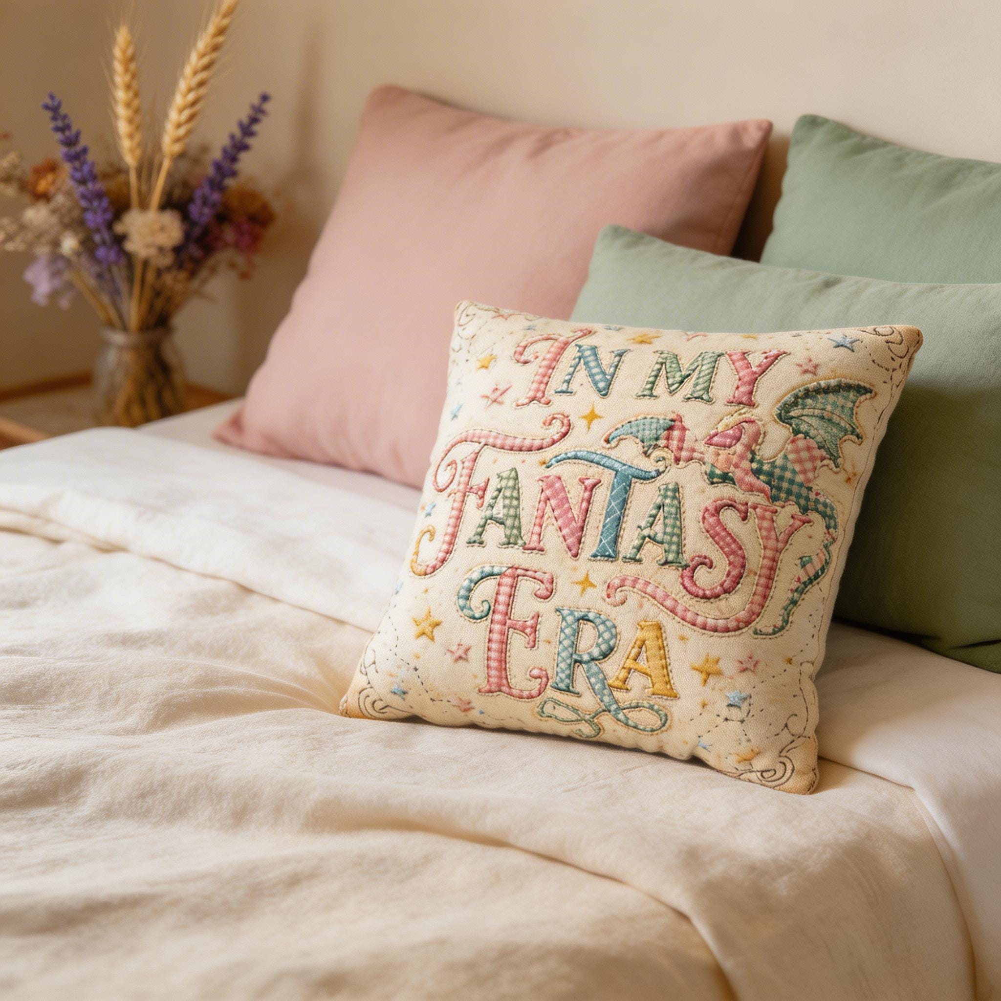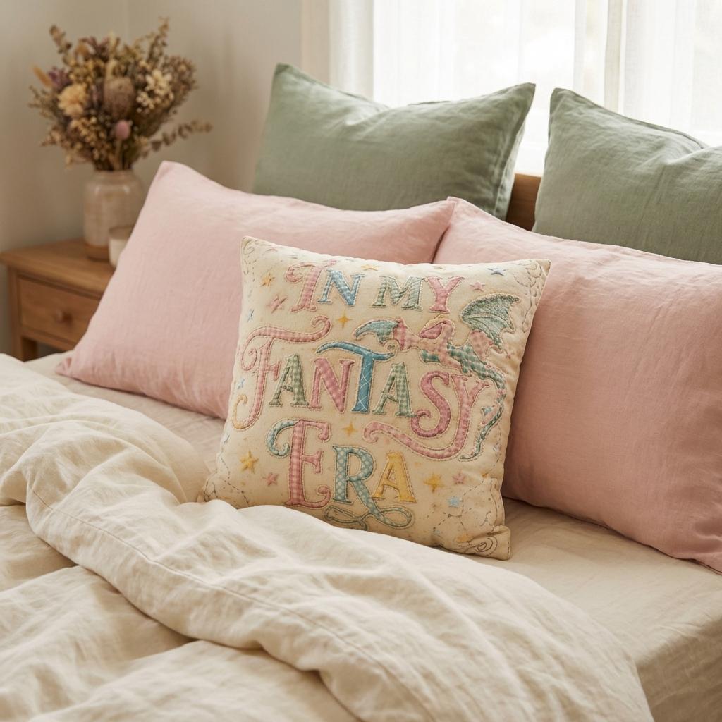 Whether you’re a professional dragon-slayer or just a professional bookworm, this "In My Fantasy Era" pillowcase adds the perfect touch of whimsical charm to your favorite reading nook. Featuring a beautiful, vintage-inspired patchwork-looking dragon and soft pastel typography, it’s designed to spark imagination and comfort. (please not this is not actual patchwork)