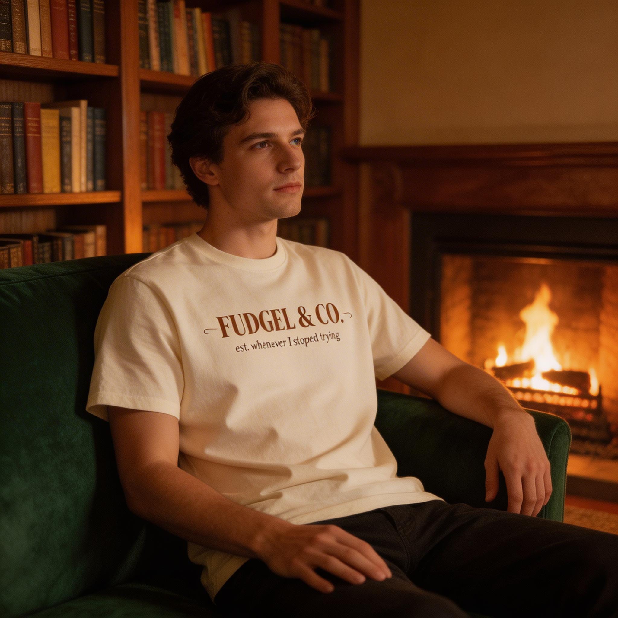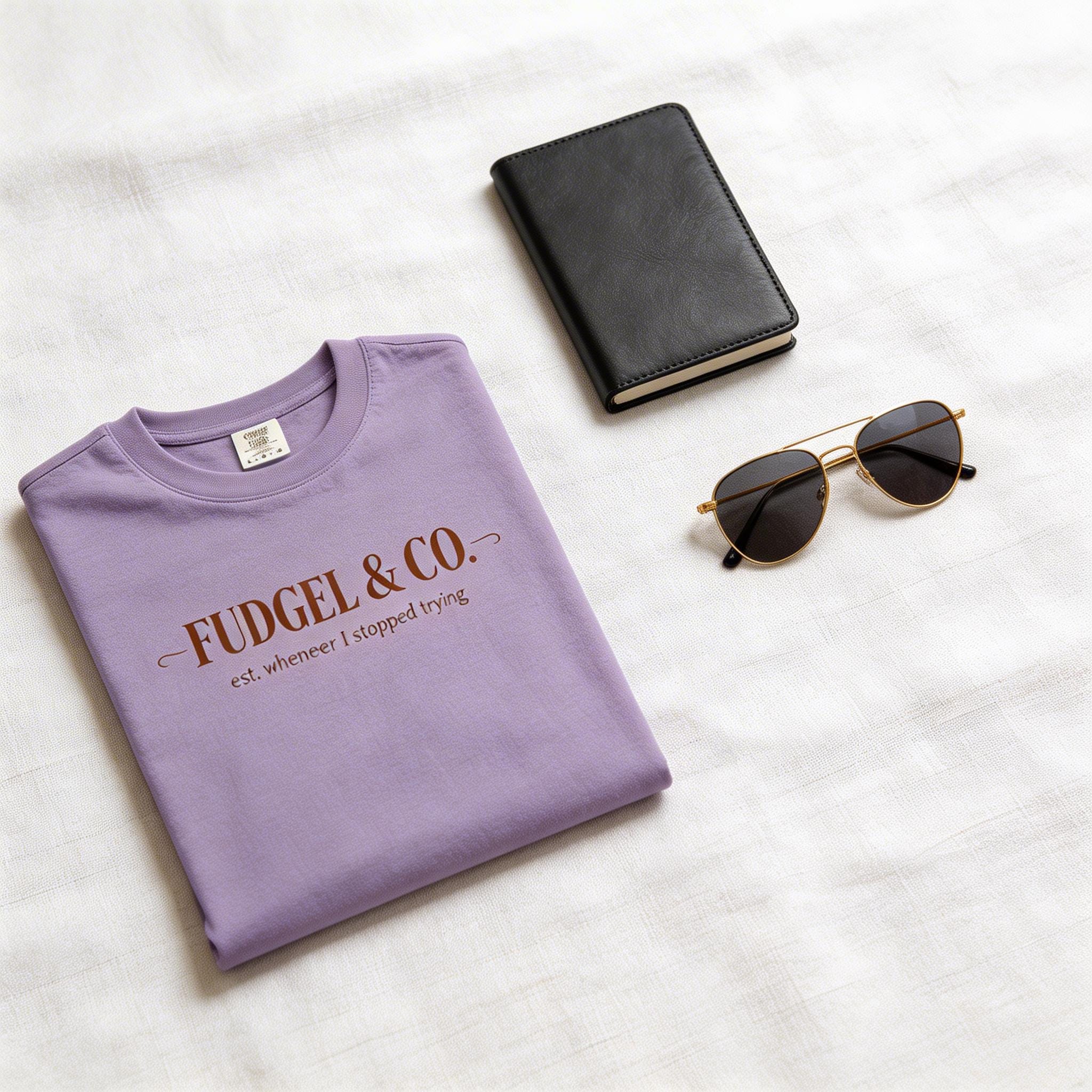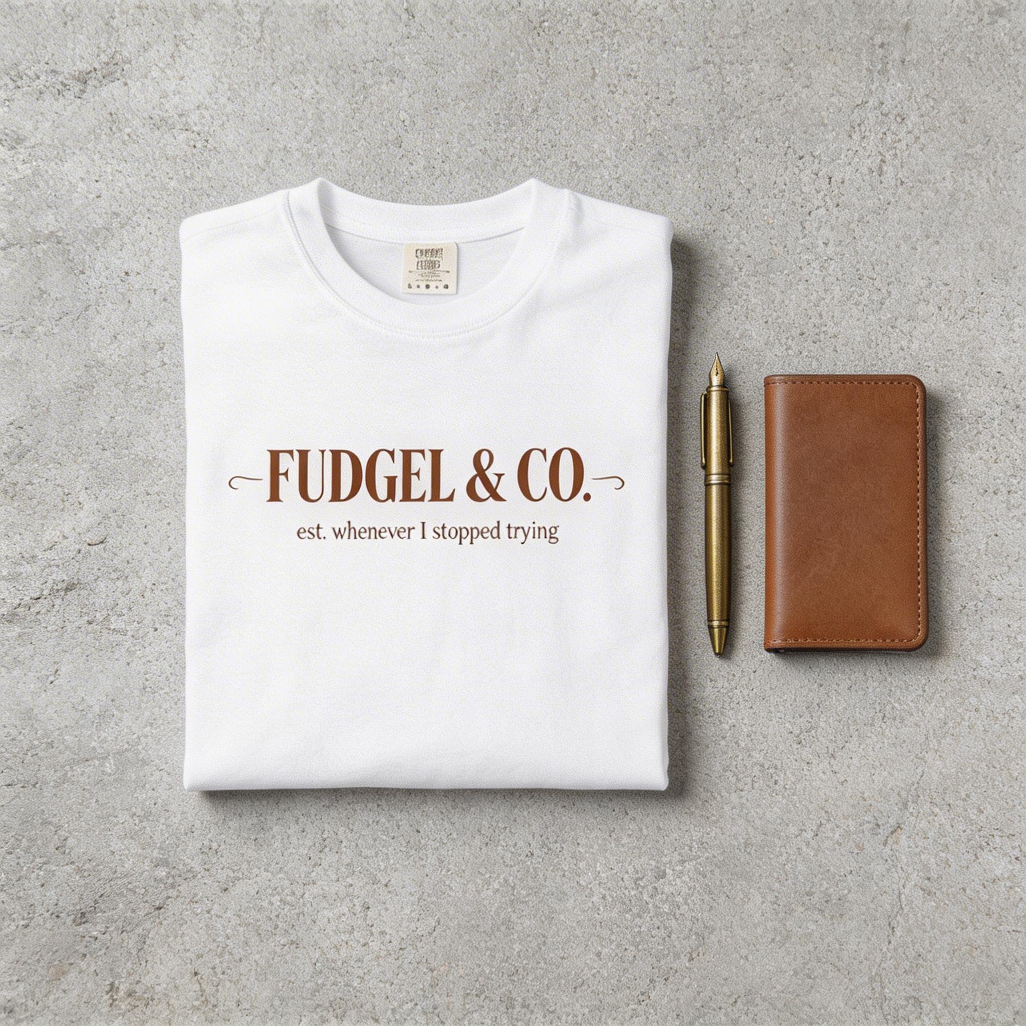 "Fudgel & Co." isn’t just a brand; it’s a lifestyle choice. Featuring high-end, classic typography that establishes the brand as, well, "whenever I stopped trying," this is the ultimate tribute to that fine balance between "employed" and "totally fudgeling."