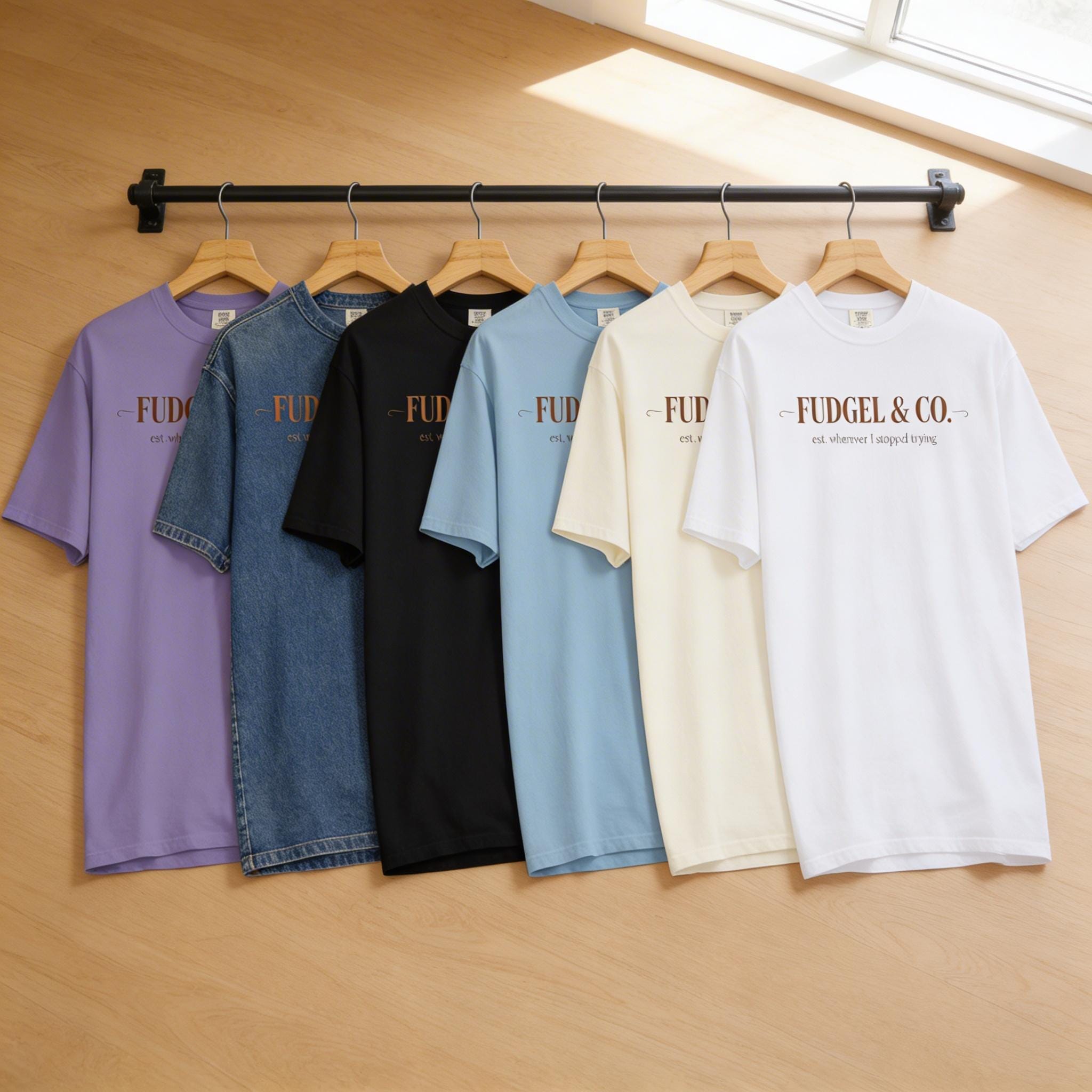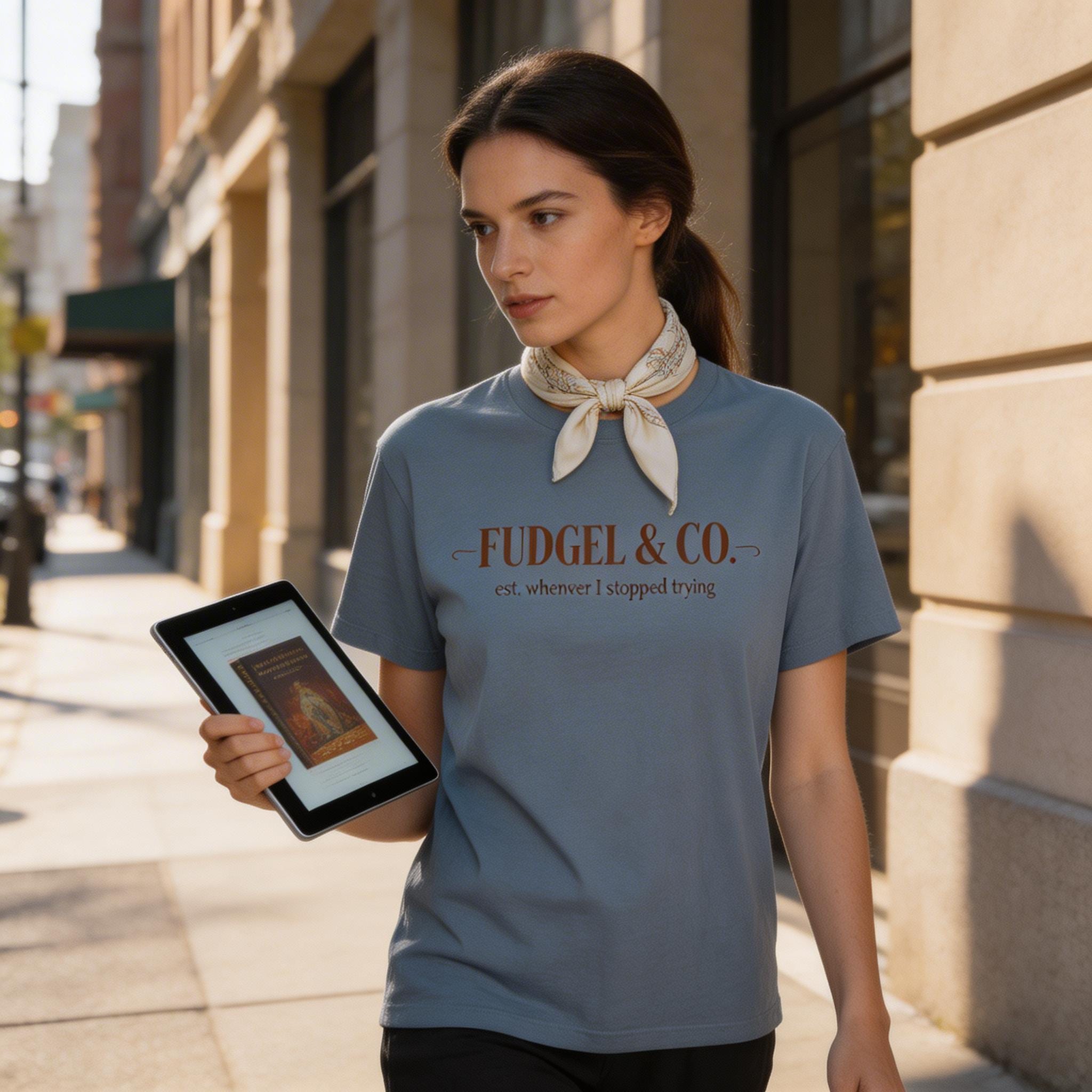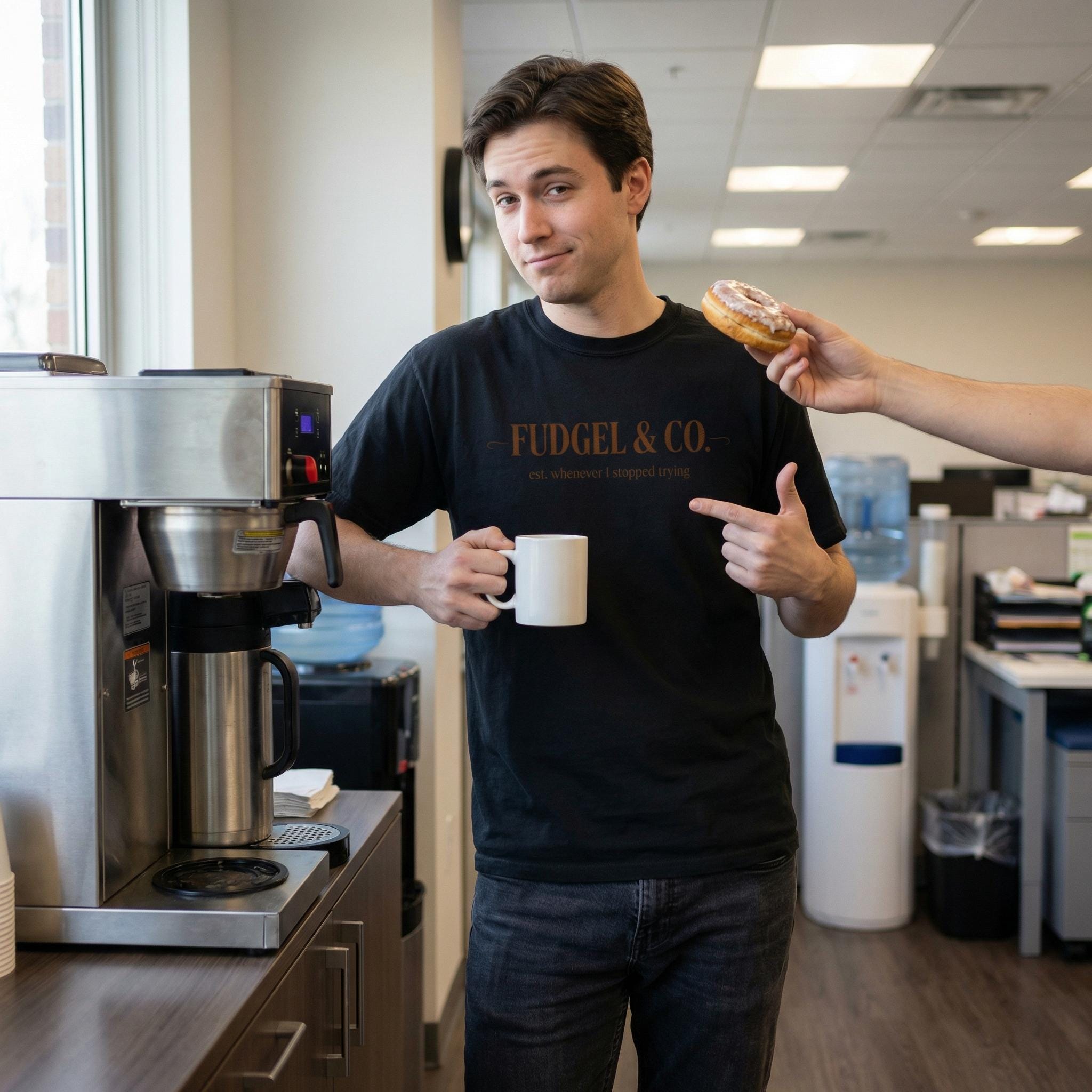 "Fudgel & Co." isn’t just a brand; it’s a lifestyle choice. Featuring high-end, classic typography that establishes the brand as, well, "whenever I stopped trying," this is the ultimate tribute to that fine balance between "employed" and "totally fudgeling."