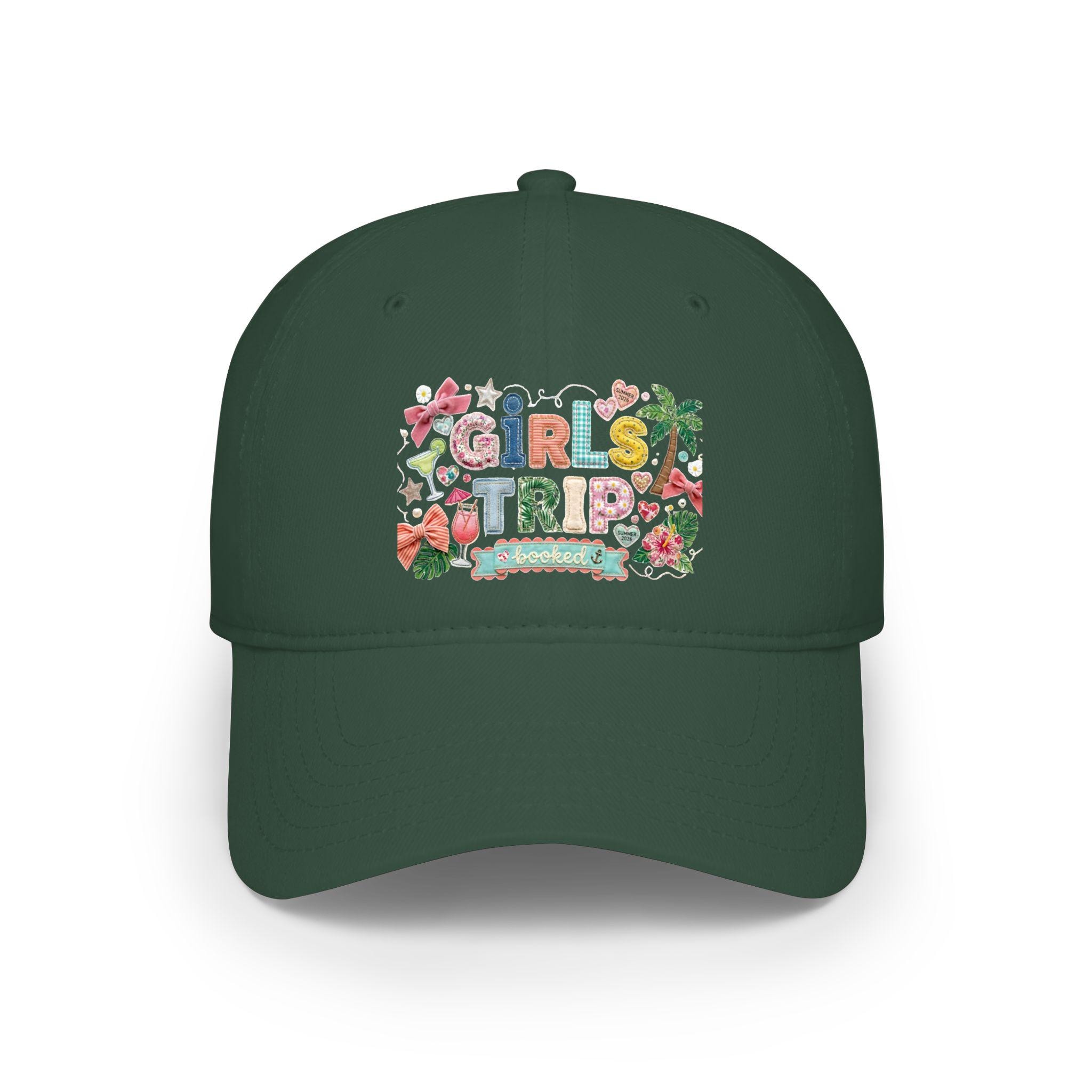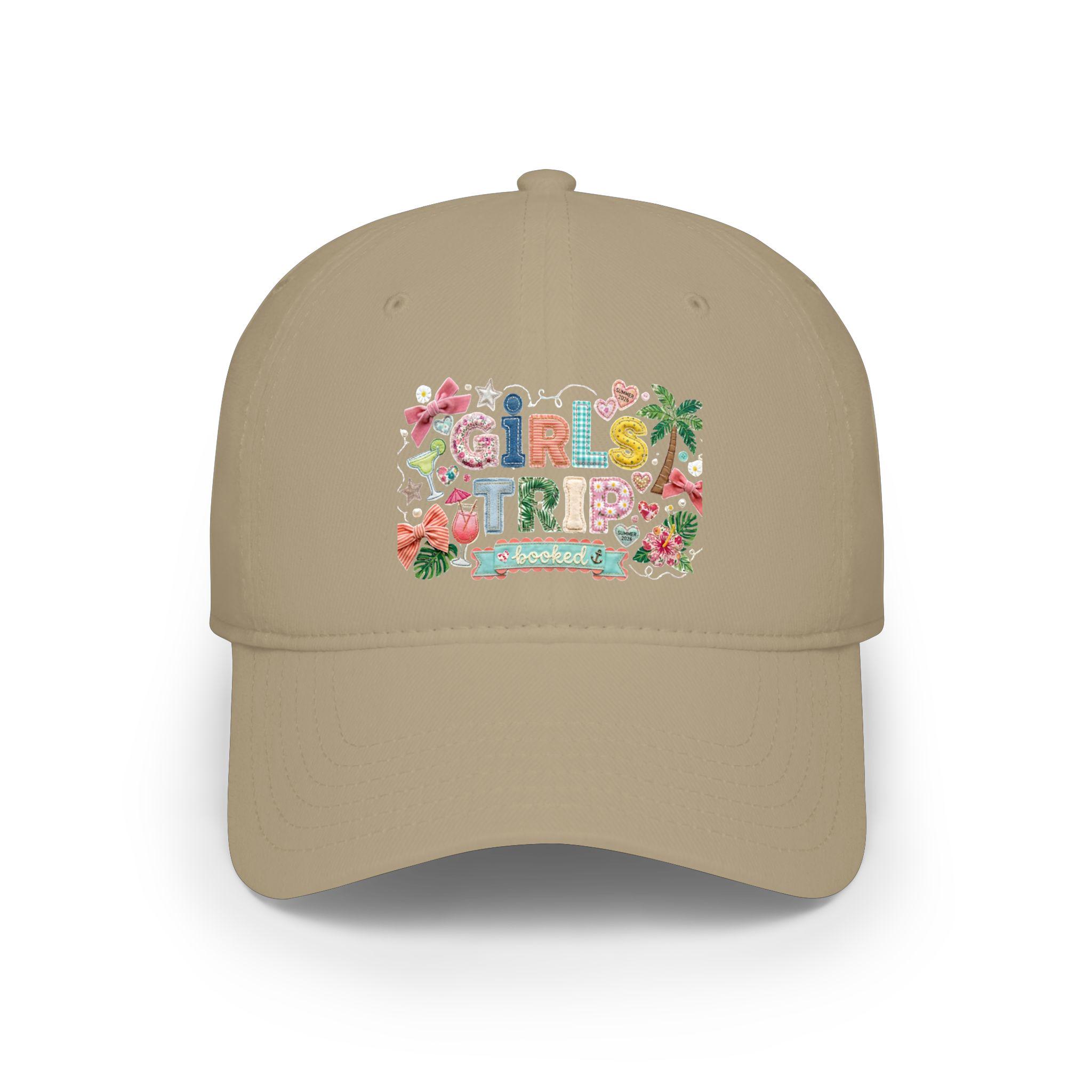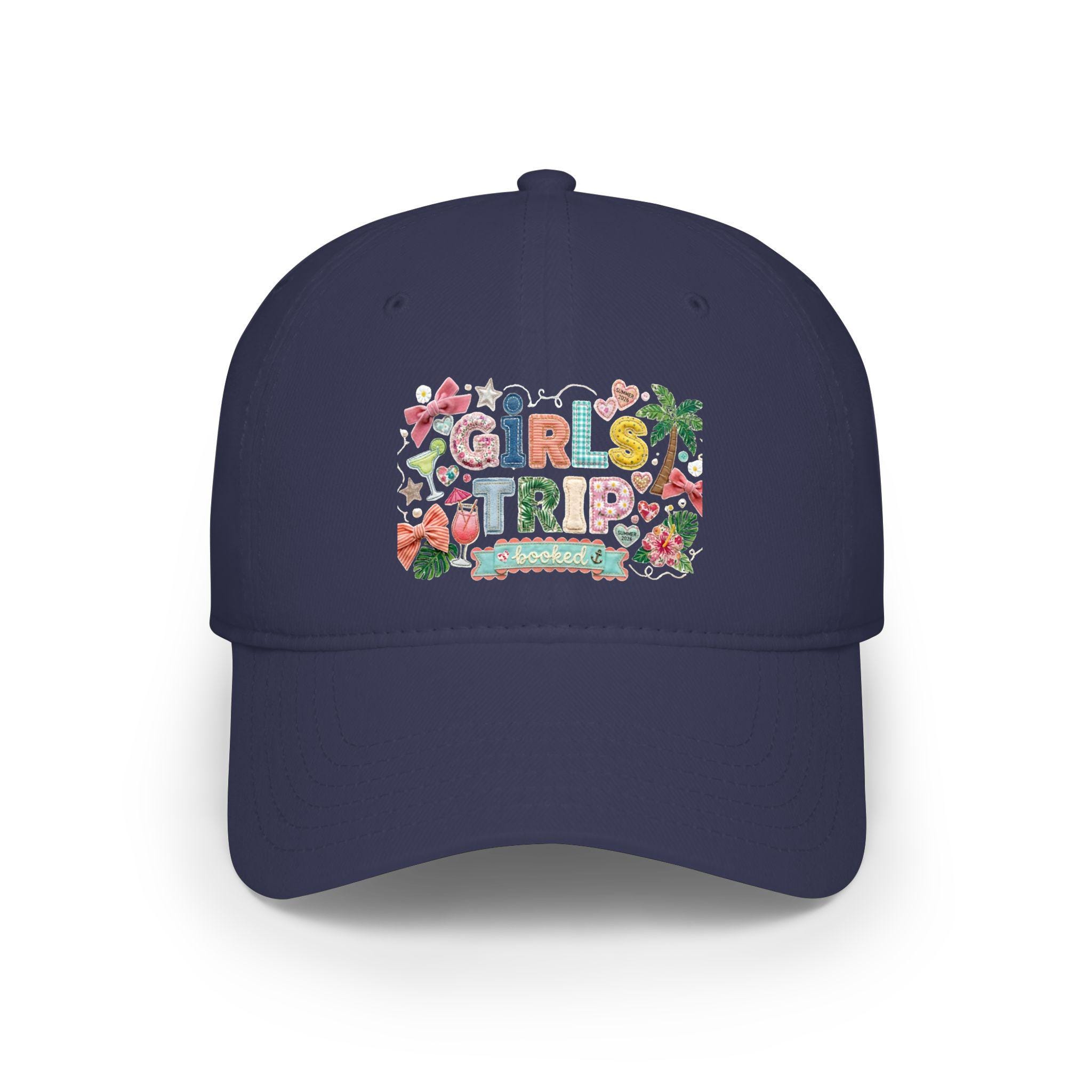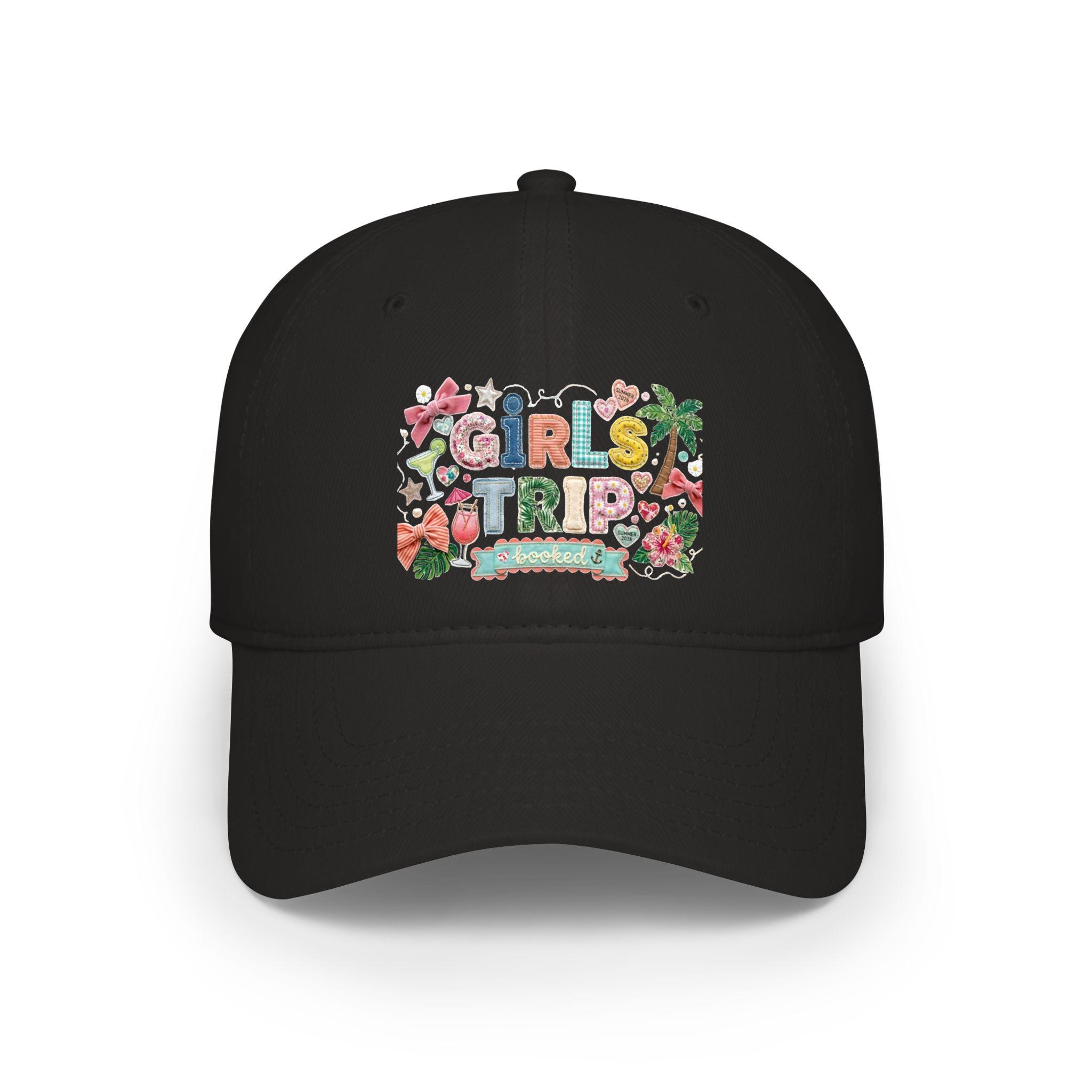 Girls Trip Faux Embroidered Look Hat, Summer 2026 Vacation Baseball Cap, Low Profile Patchwork Hat