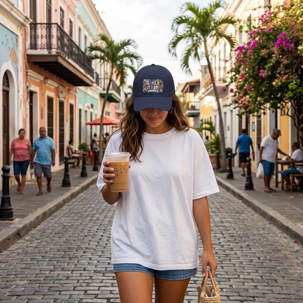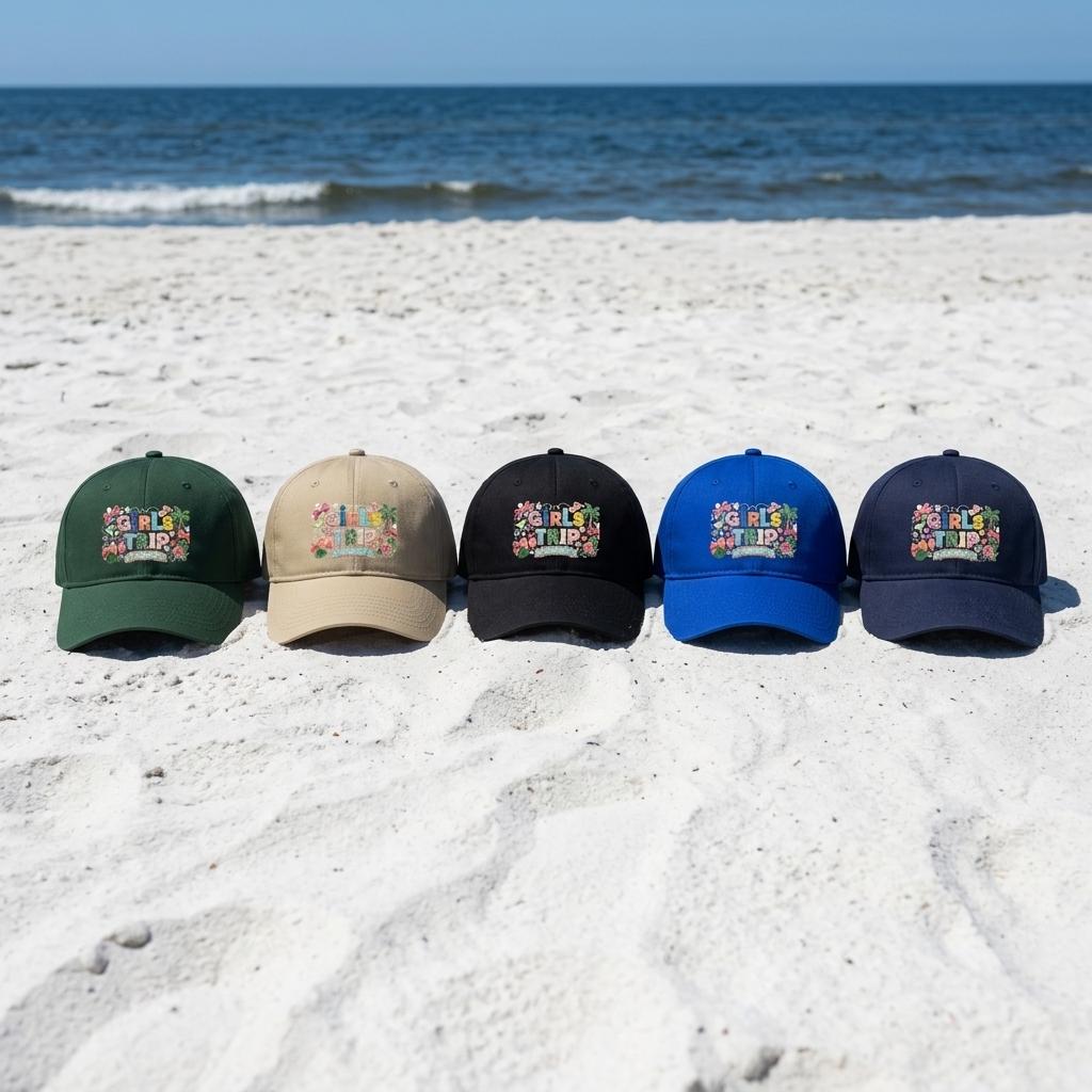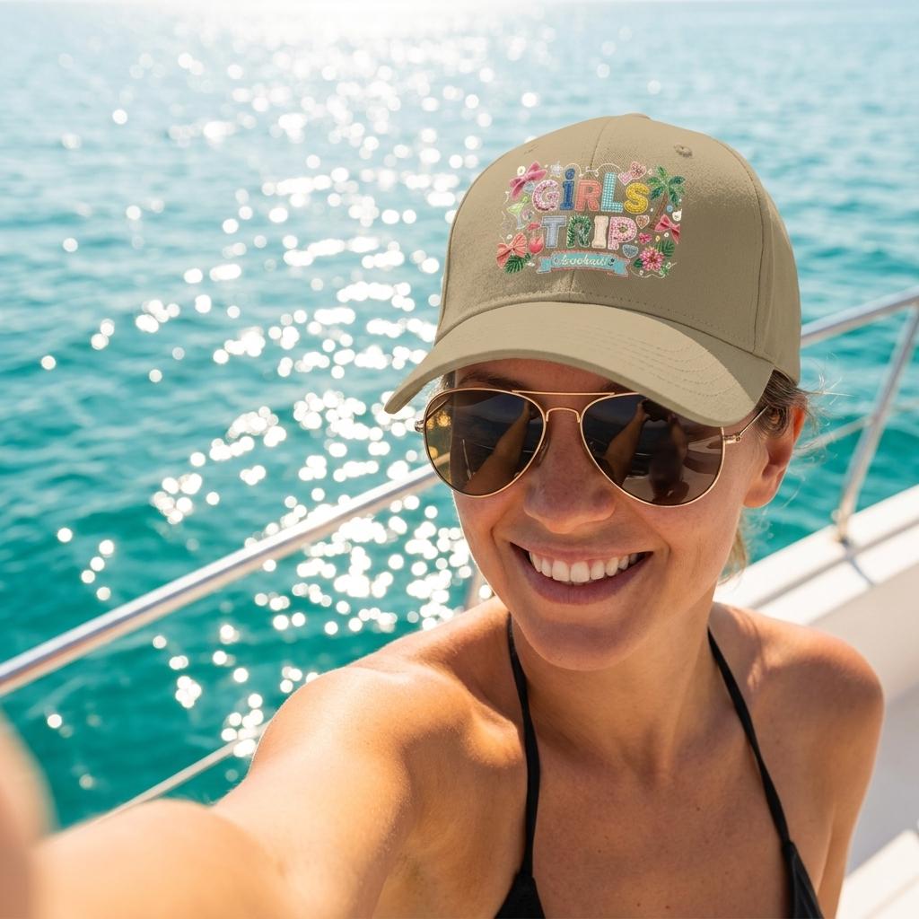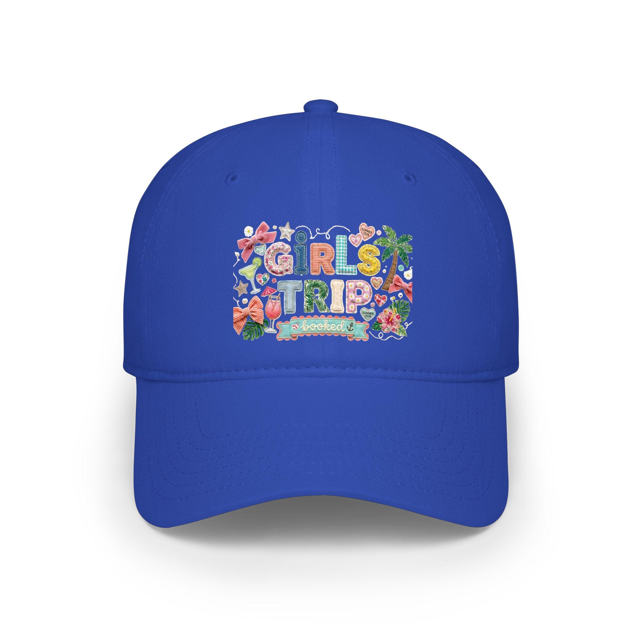 Girls Trip Faux Embroidered Look Hat, Summer 2026 Vacation Baseball Cap, Low Profile Patchwork Hat